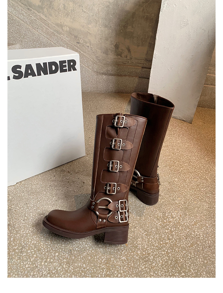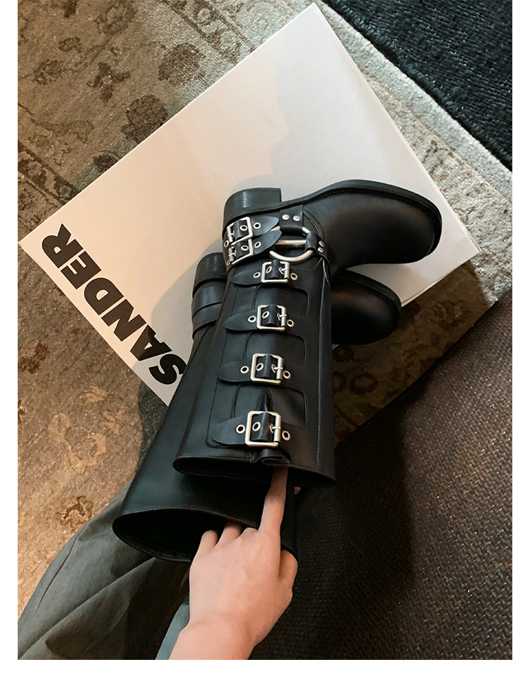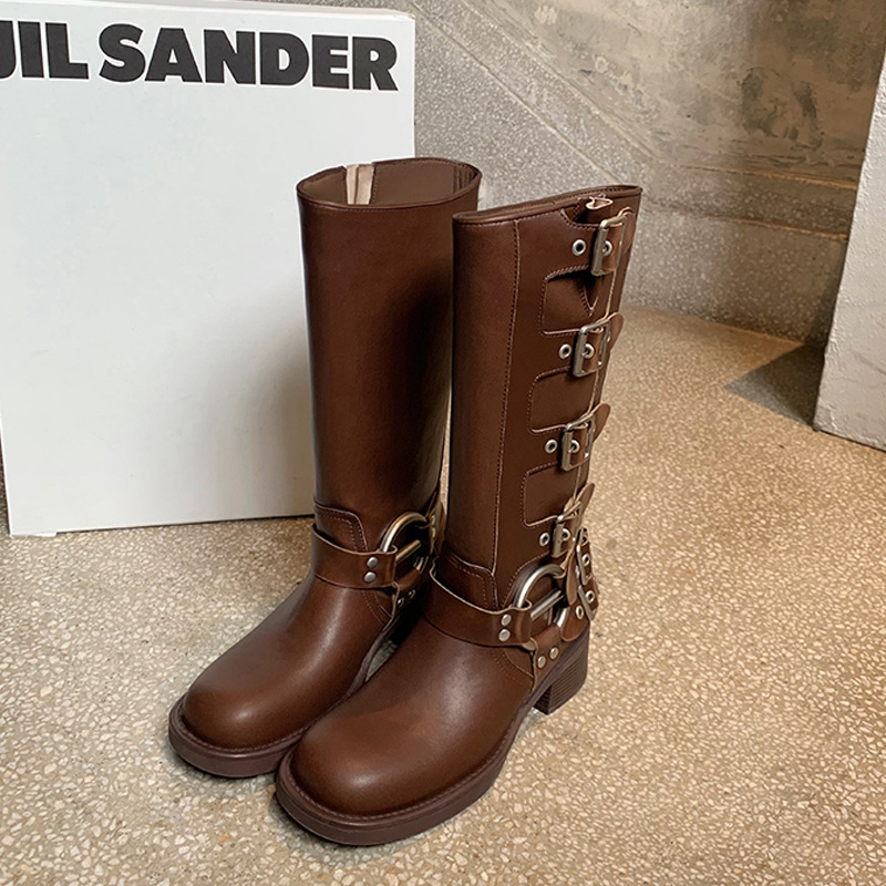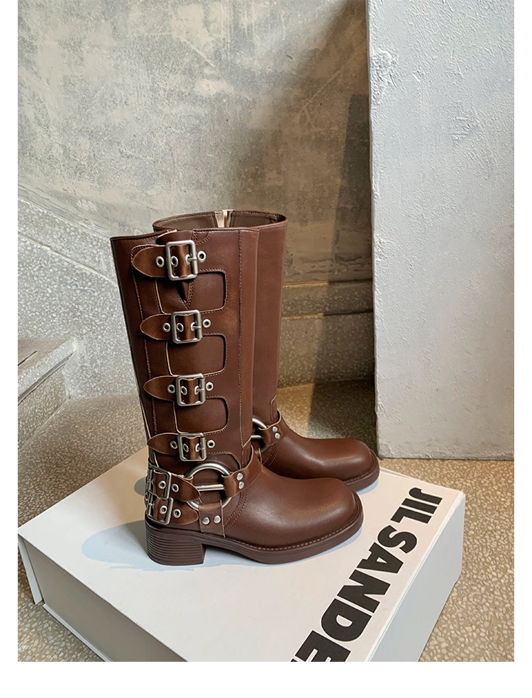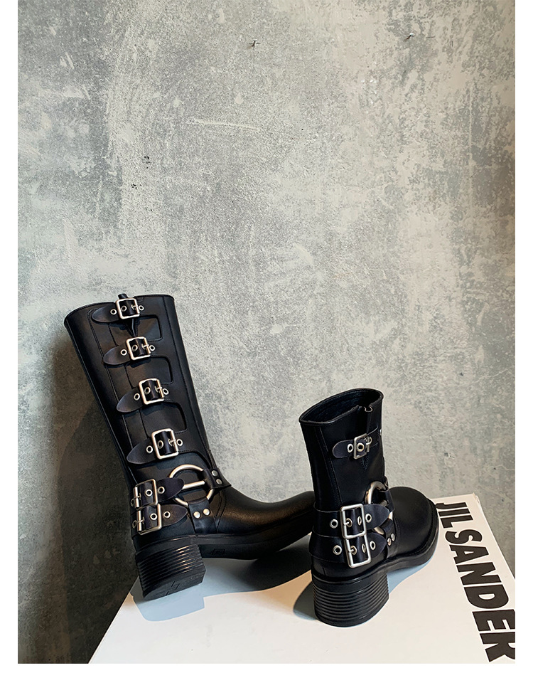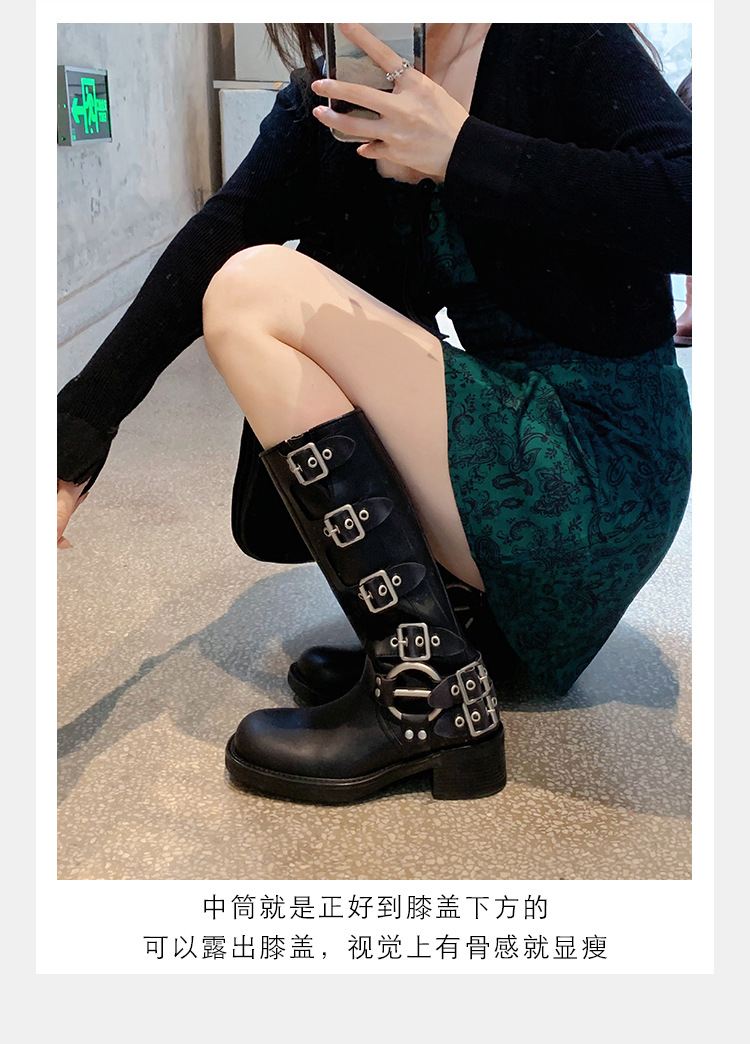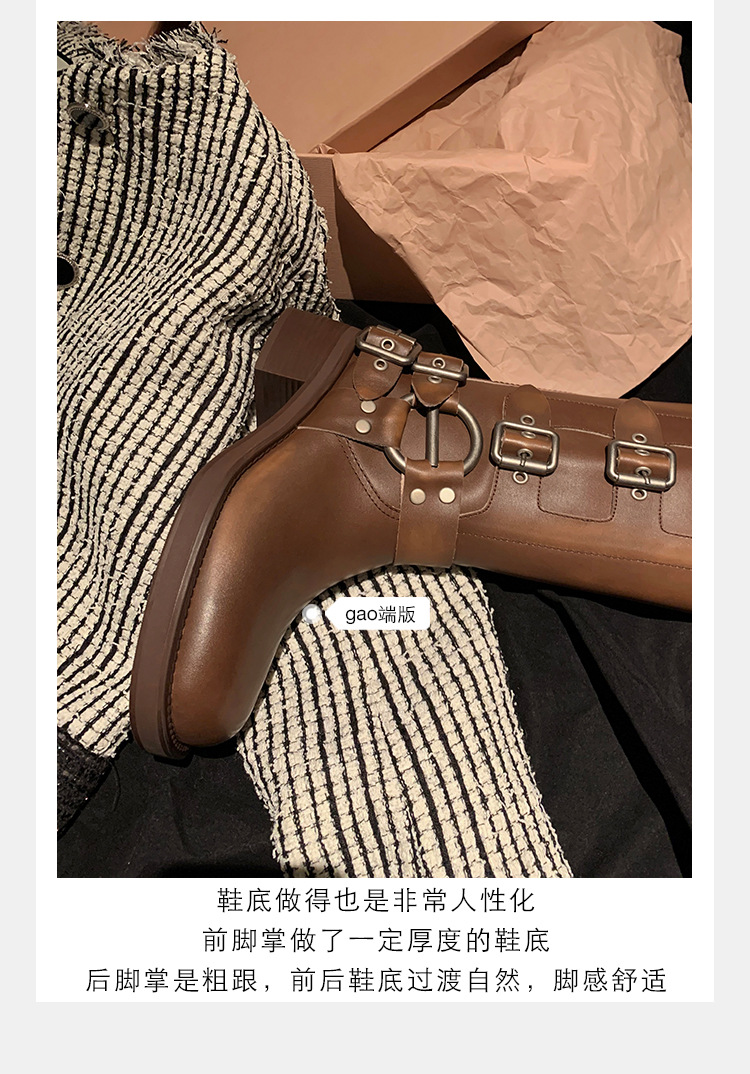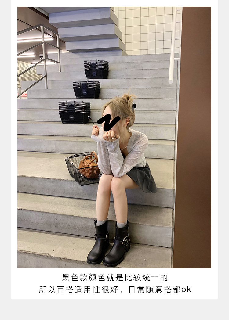 포도 엄마 2023 가을과 겨울 새로운 라운드 발가락 빈티지 짧은 부츠 벨트 버클 두꺼운 굽 마틴 부츠 두꺼운 단독 웨스턴 카우보이 부츠스토어 가기