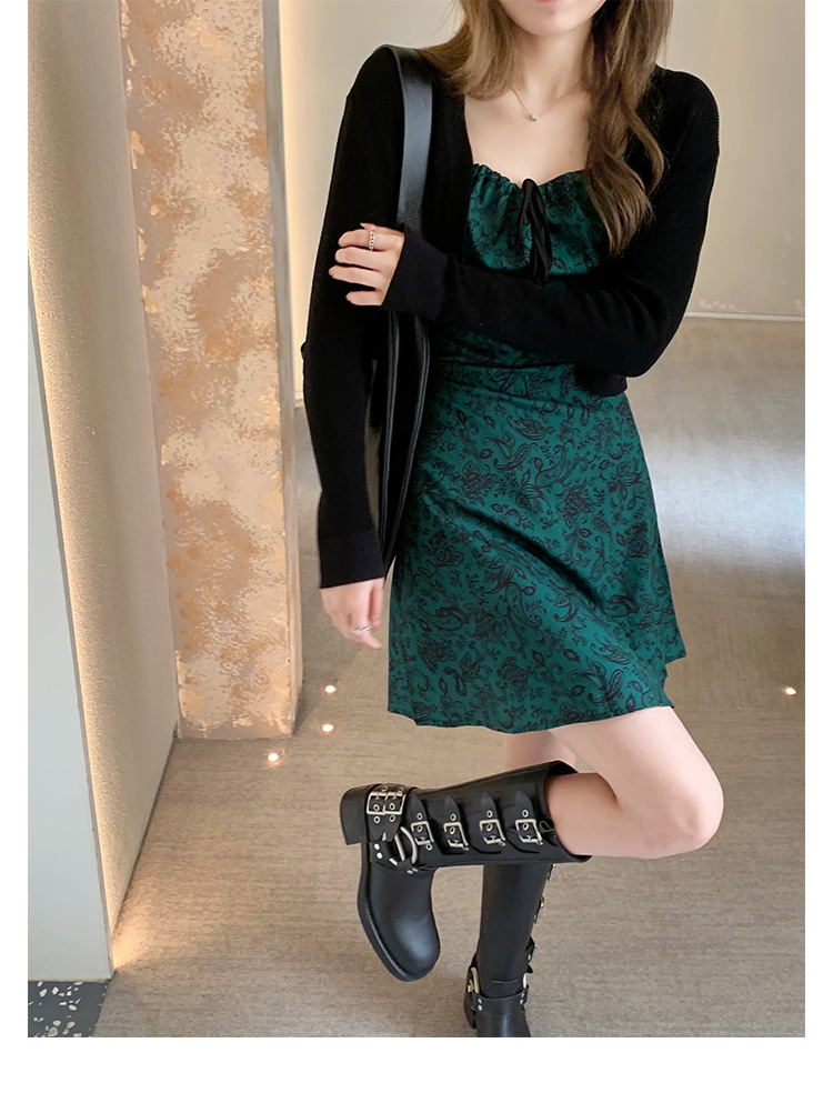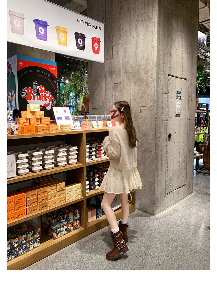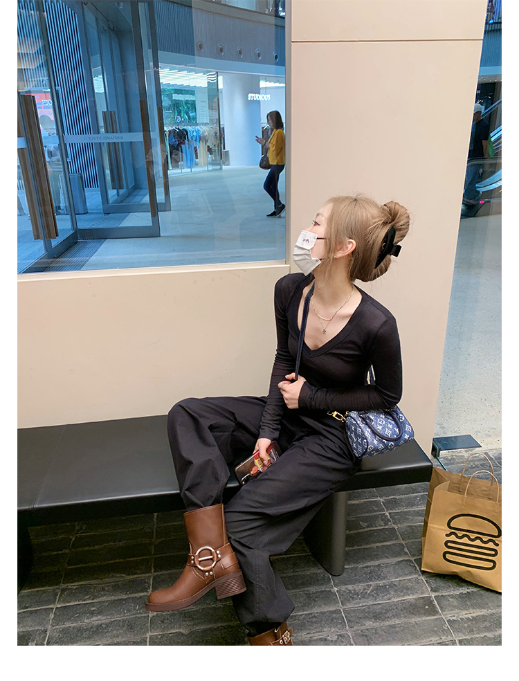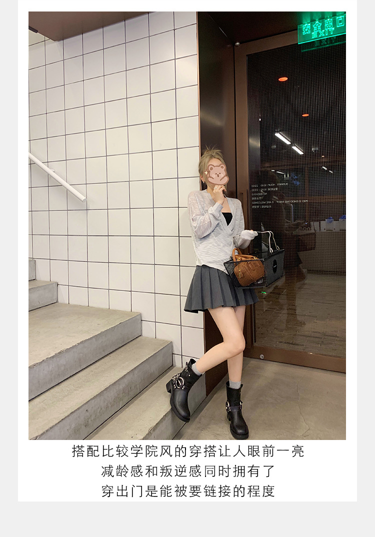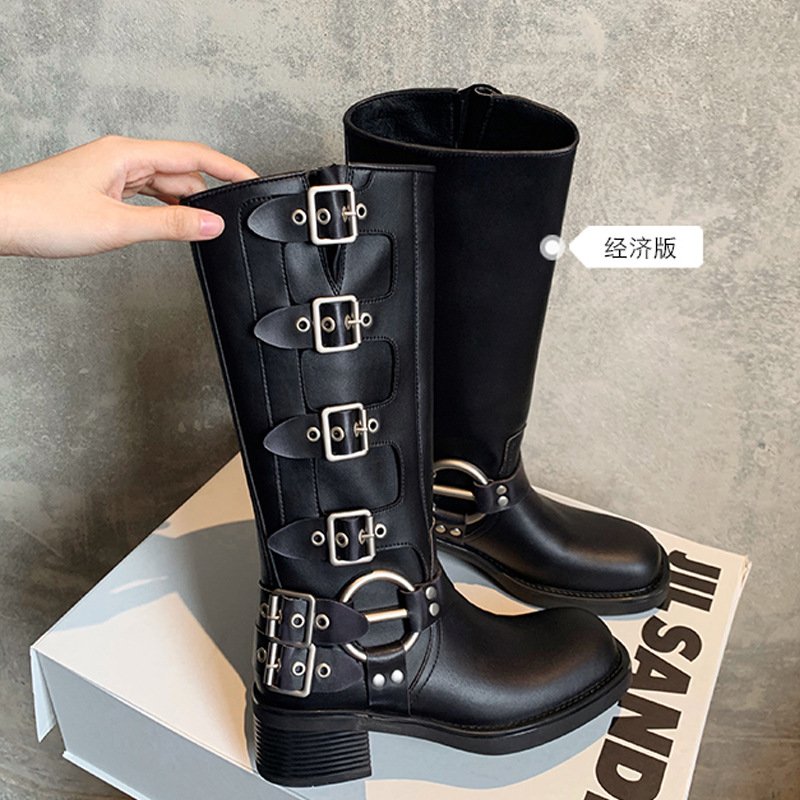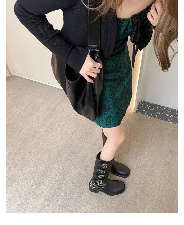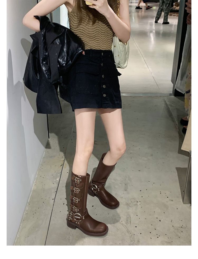 포도 엄마 2023 가을과 겨울 새로운 라운드 발가락 빈티지 짧은 부츠 벨트 버클 두꺼운 굽 마틴 부츠 두꺼운 단독 웨스턴 카우보이 부츠스토어 가기
