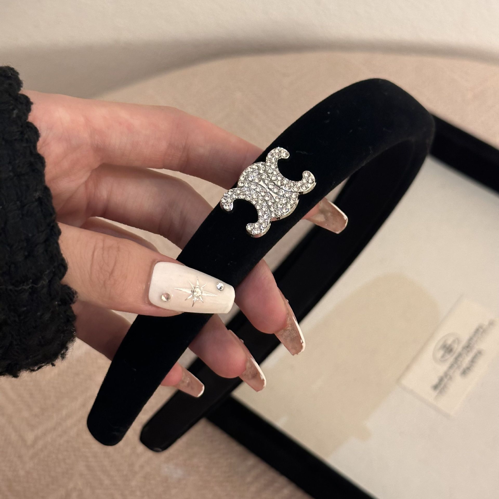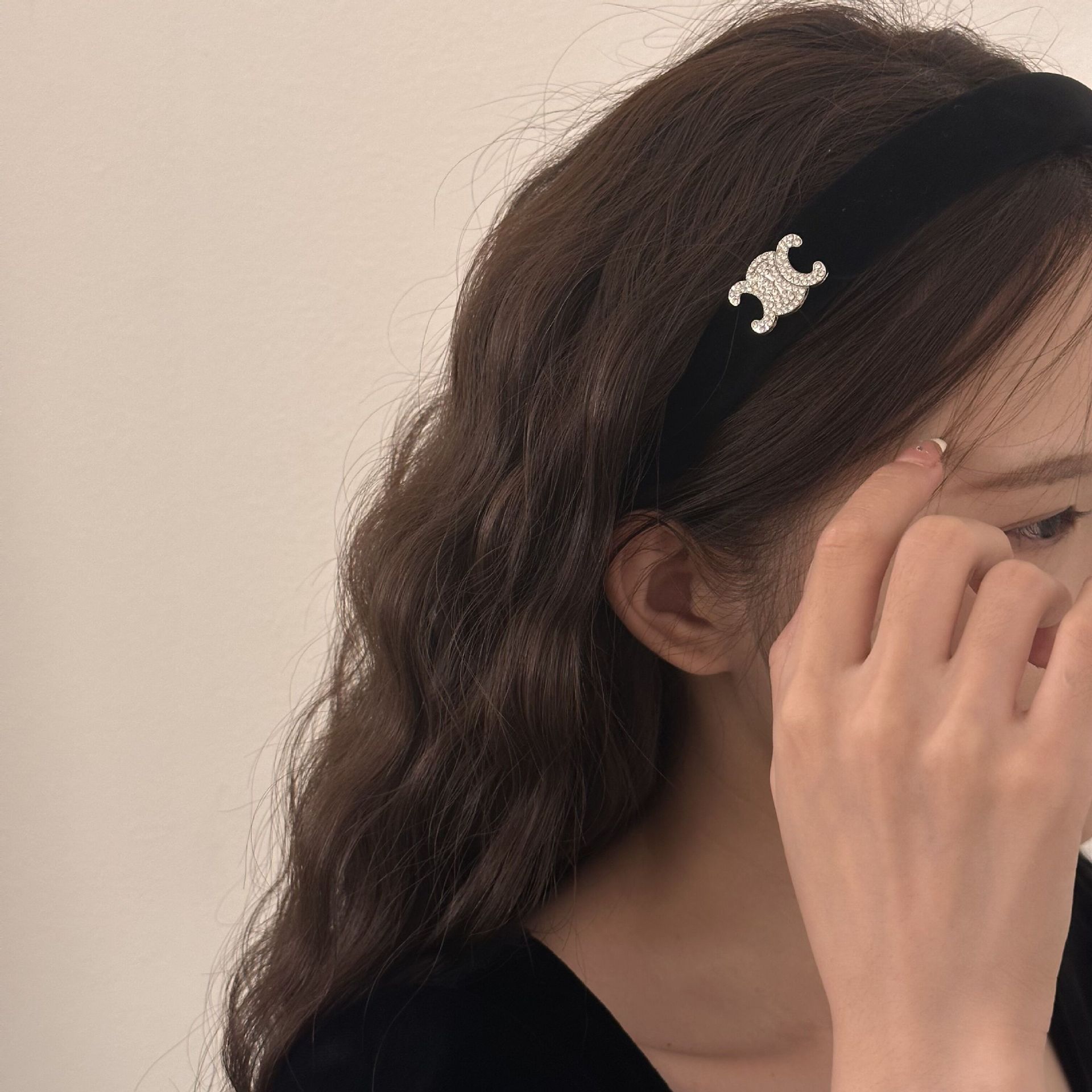 가을과 겨울 새로운 하이 두개골 탑 벨벳 플래시 드릴 헤드 후프 고급 감각 얼굴 작은 헤어 후프 여성의 따뜻한 빛 고급 헤어 스탬프 모자스토어 가기