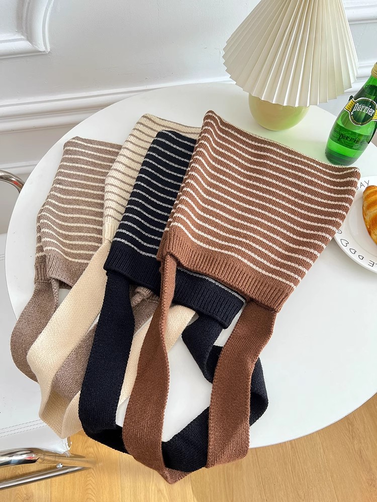 일본과 한국 스타일 심플 가로 스트라이프 울 백 가을과 겨울 유행 만능 부드러운 소녀의 대용량 숄더백