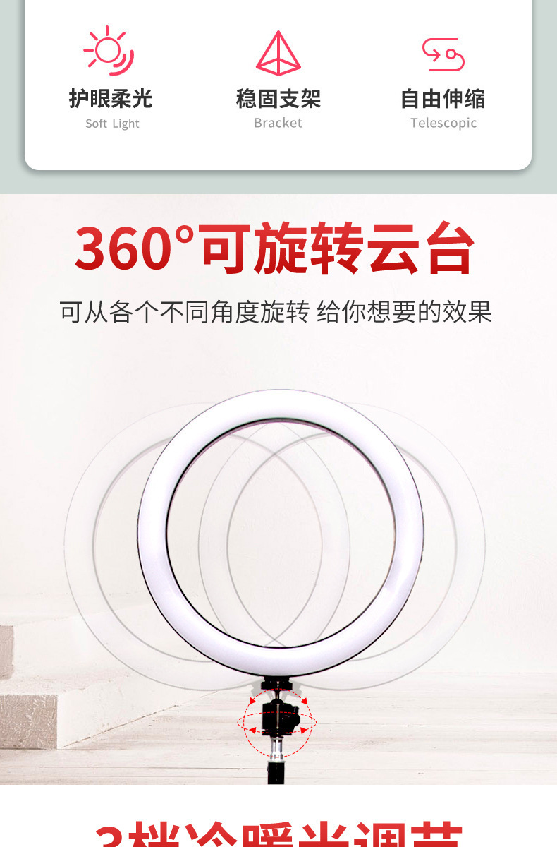 3색 생방송 필 라이트 6인치 8인치 10인치 12인치 1314인치 18inch 22inch 사진 미용 조명 링 라이트