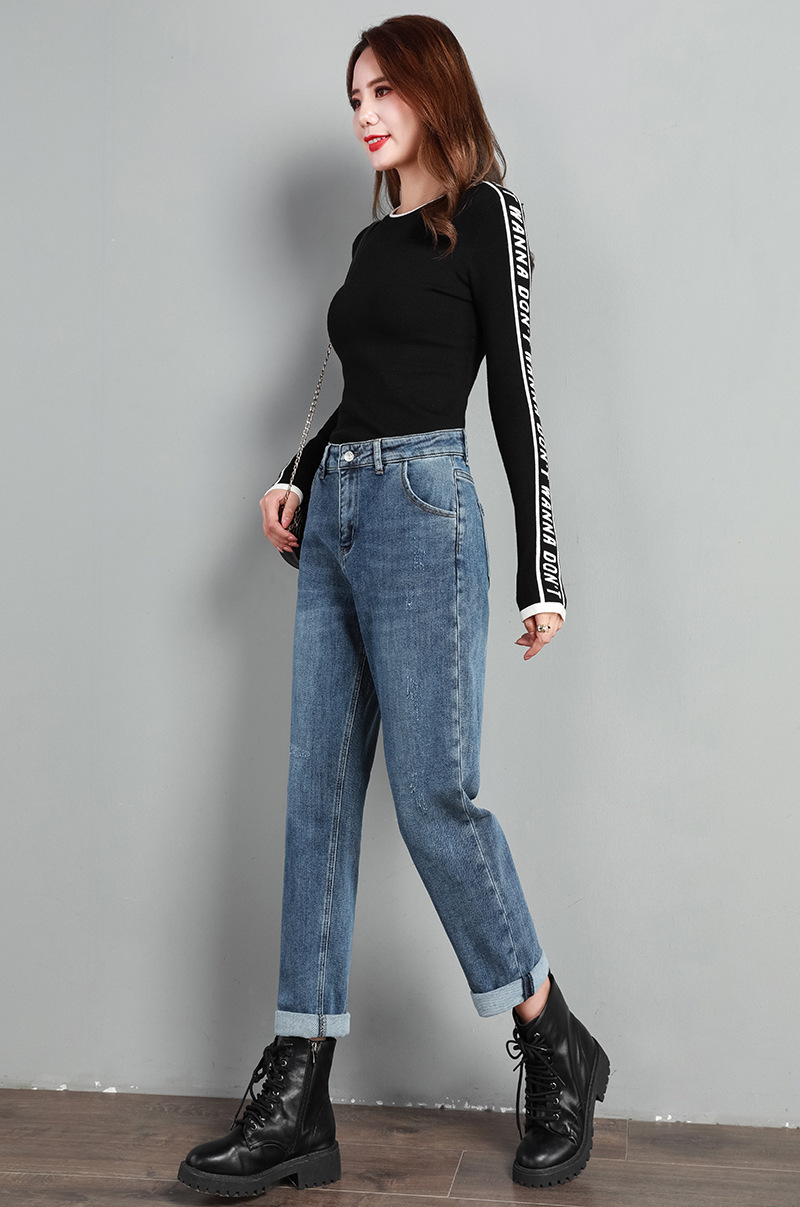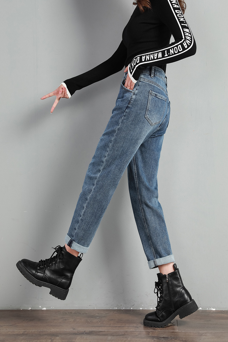 가춘 여성용 빅사이즈 데님 팬츠 봄 슬림핏 루즈핏 하이웨이스트 하렘 캐주얼 팬츠 아빠바지 여성용스토어 가기