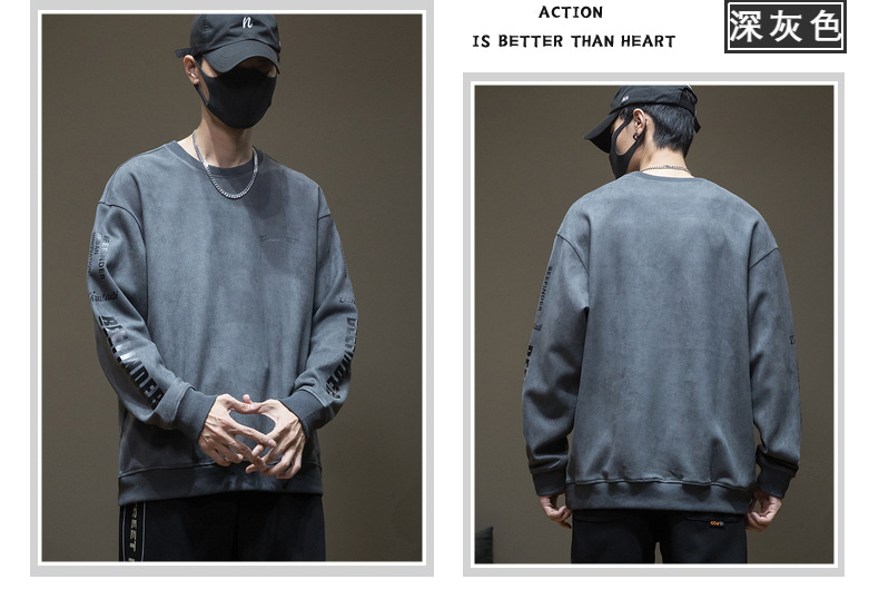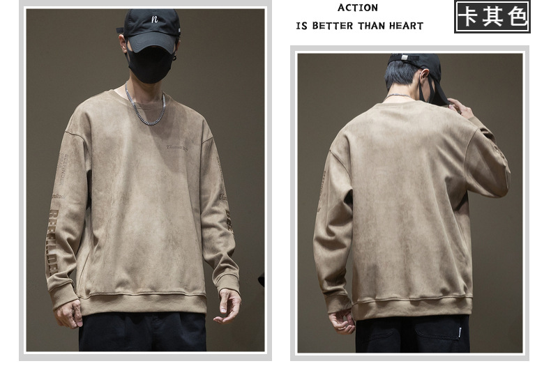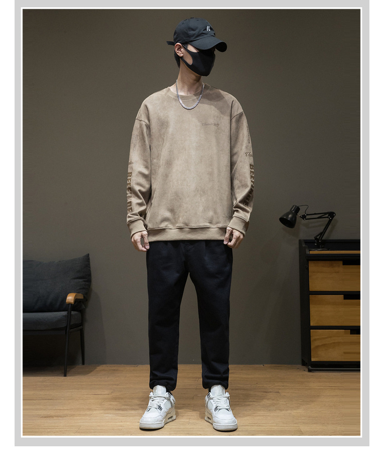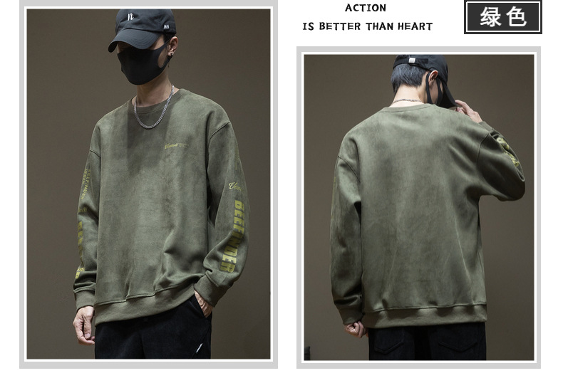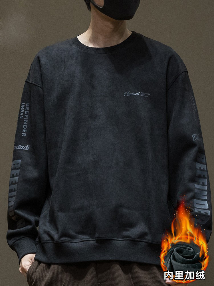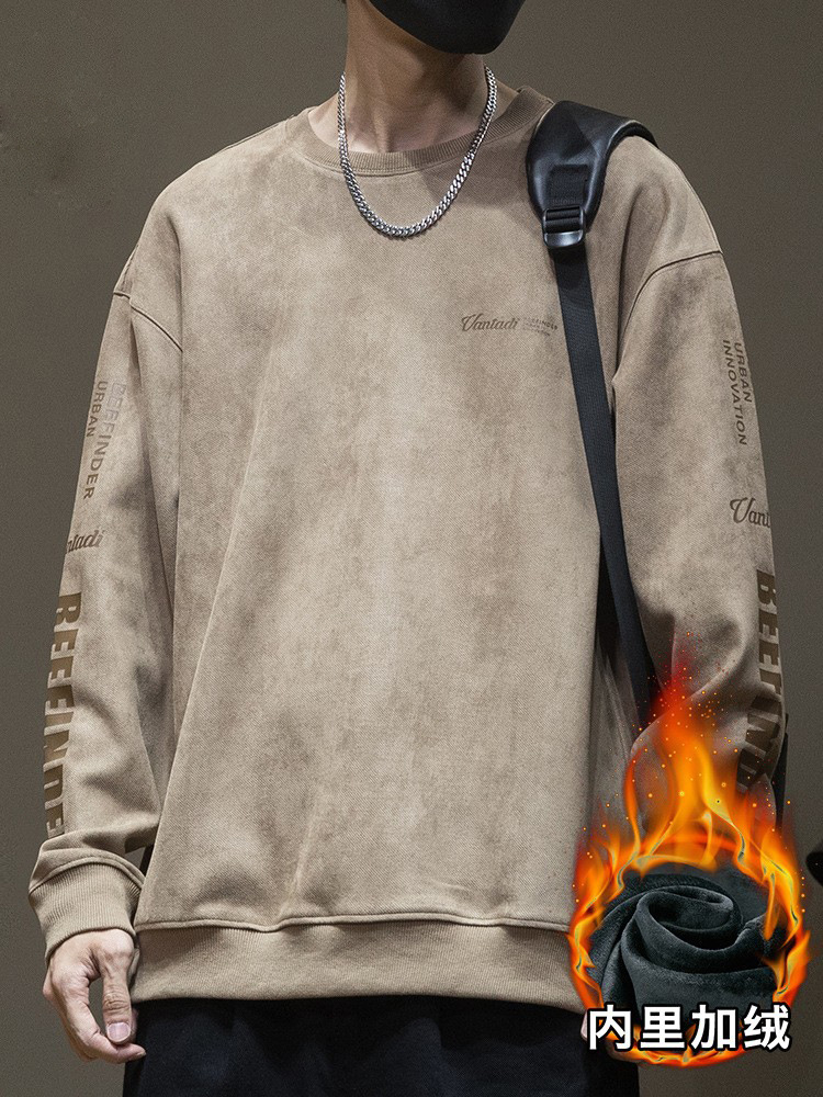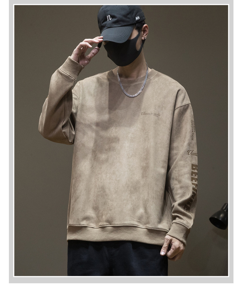 아메리칸 스타일 스웨이드 스웨터 남자의 봄과 가을 느슨한 플러스 사이즈 남자의 초대형 후드리스 기모 지방에 대 한 탑스토어 가기