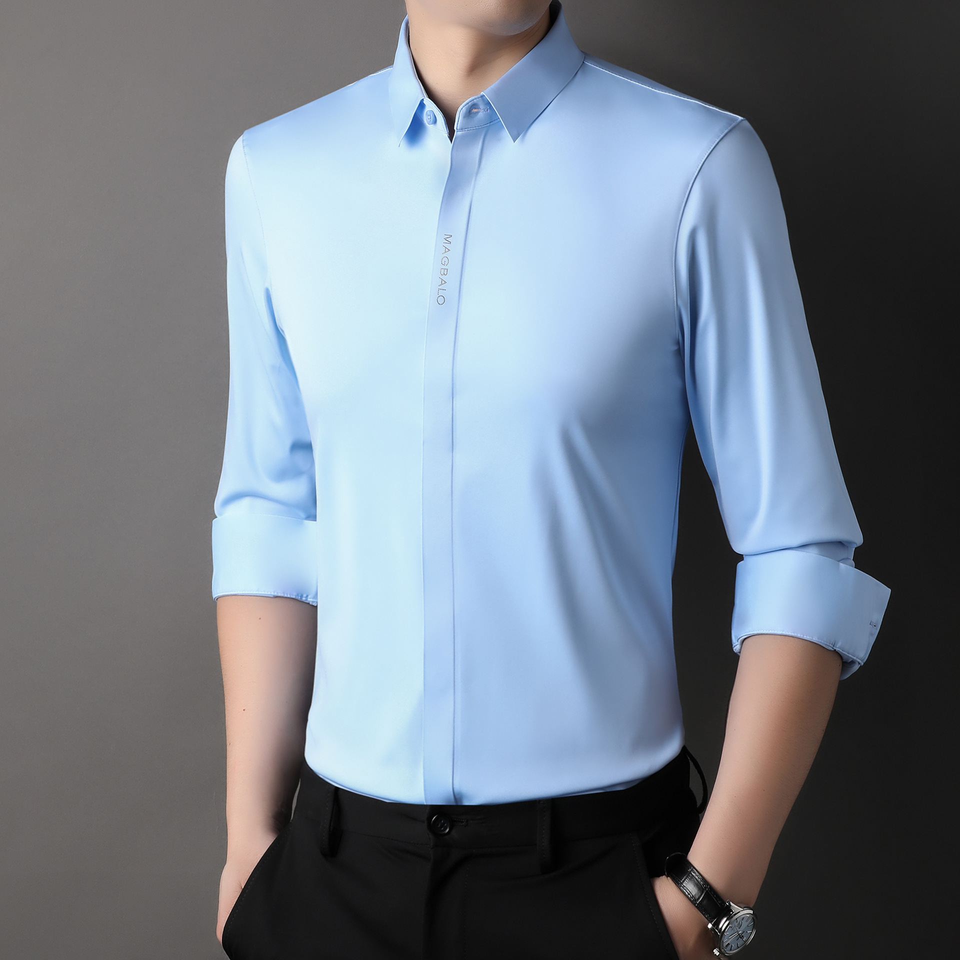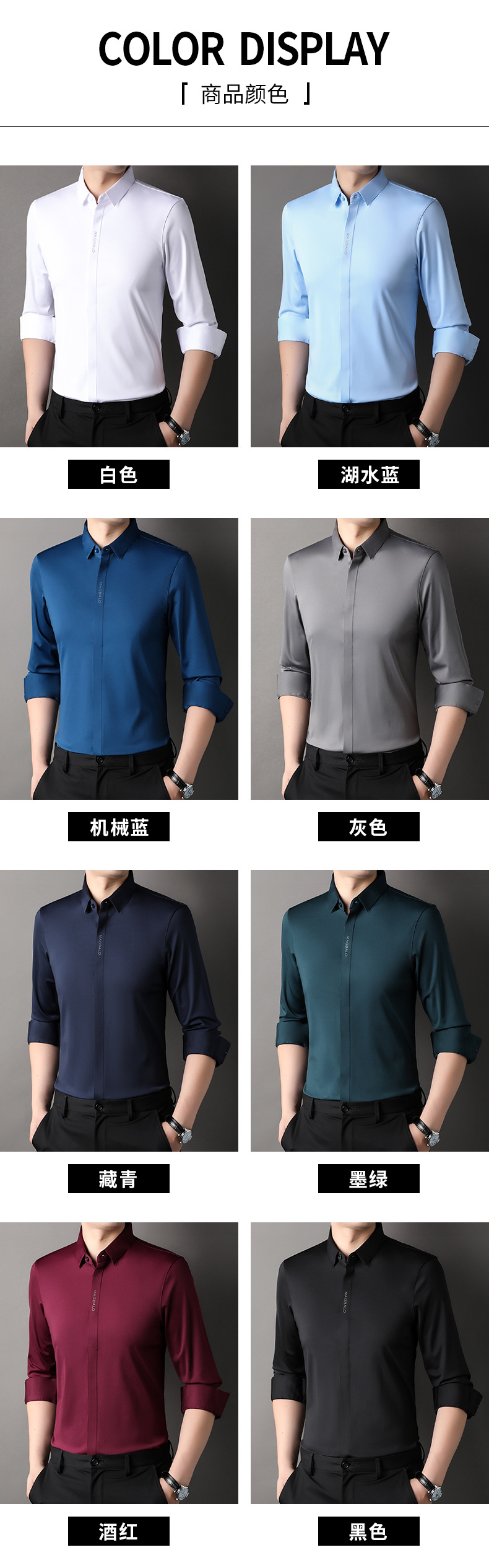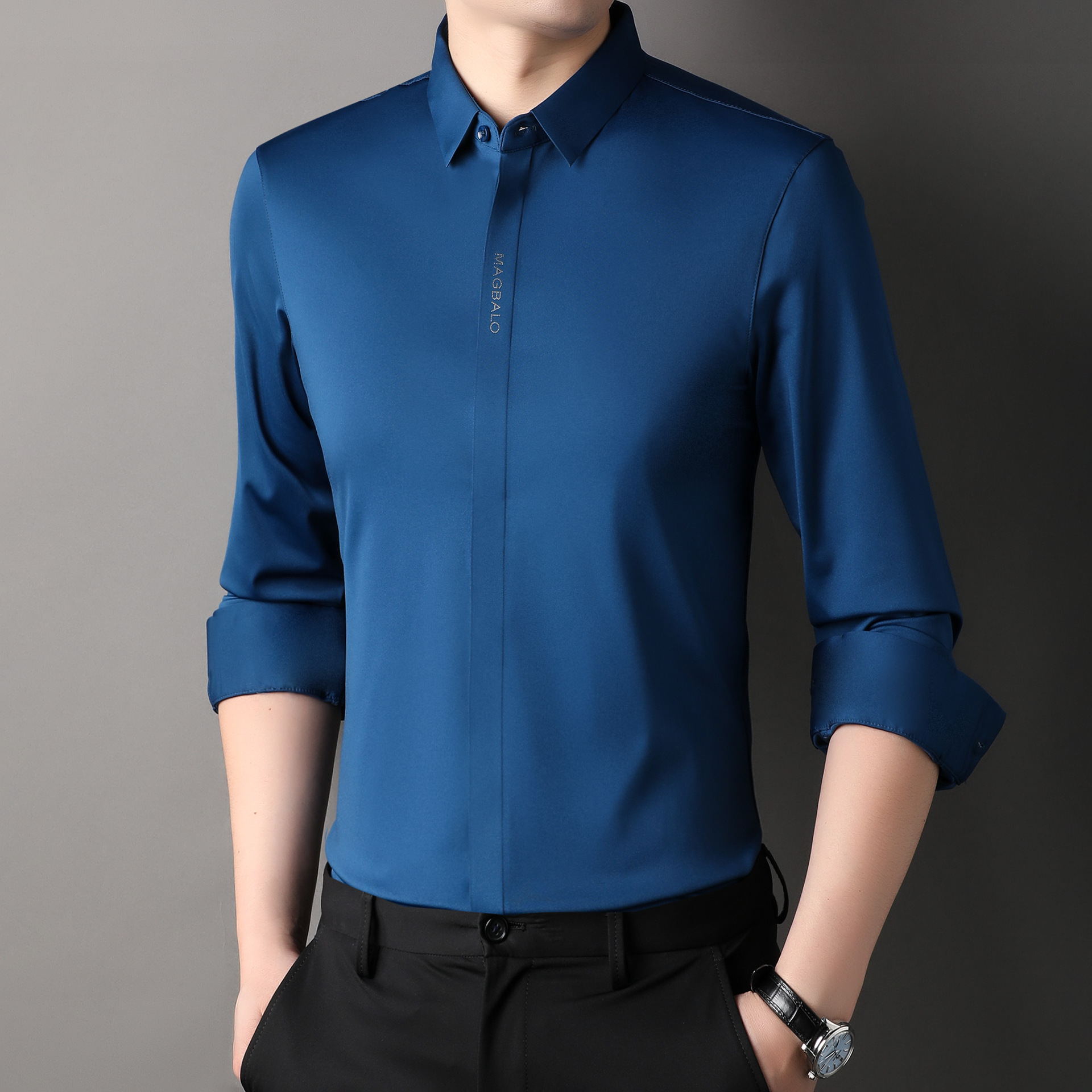 2022休闲长袖衬衫男春秋季修身纯色商务正装商务免烫衬衣代
