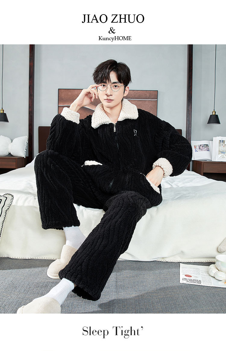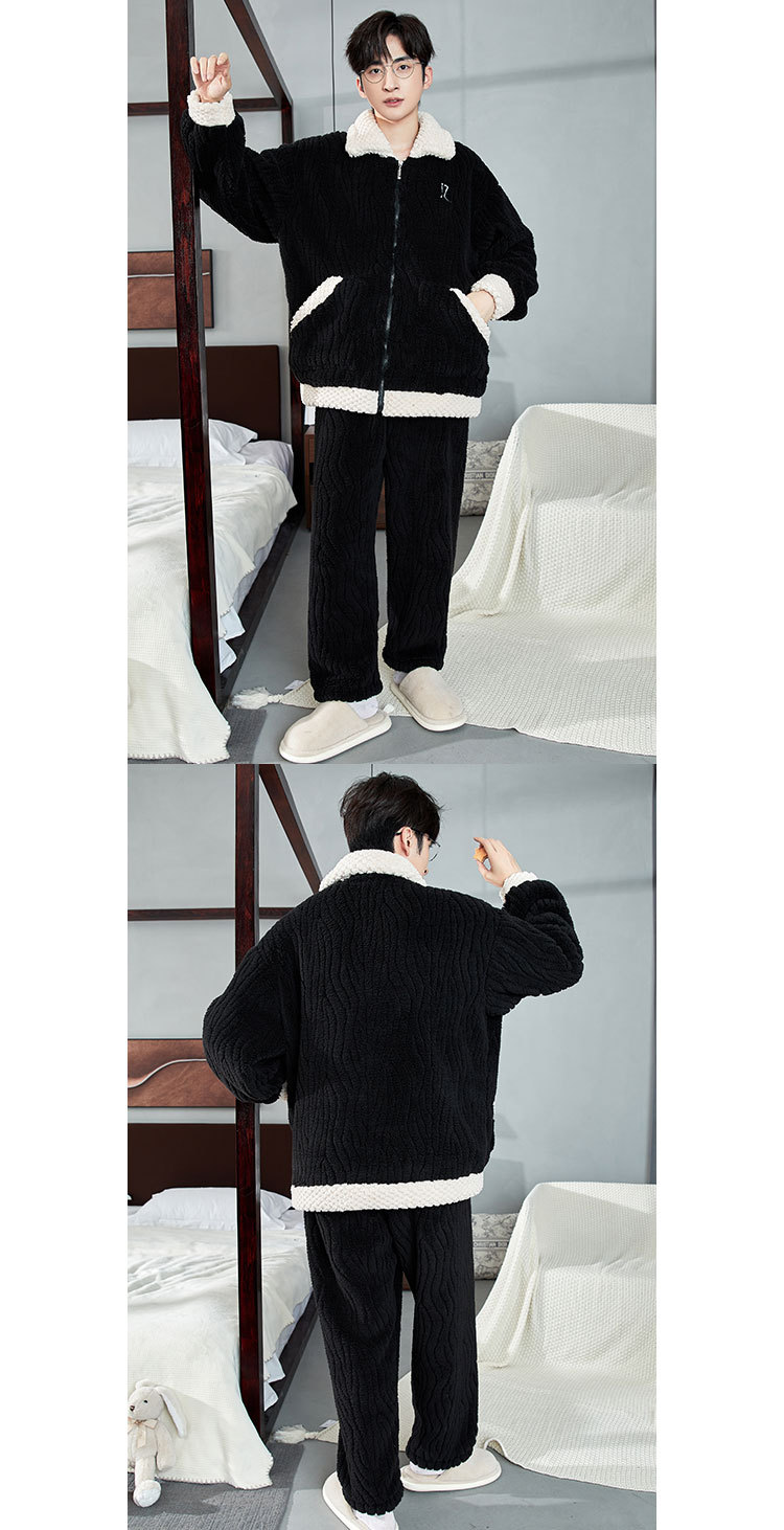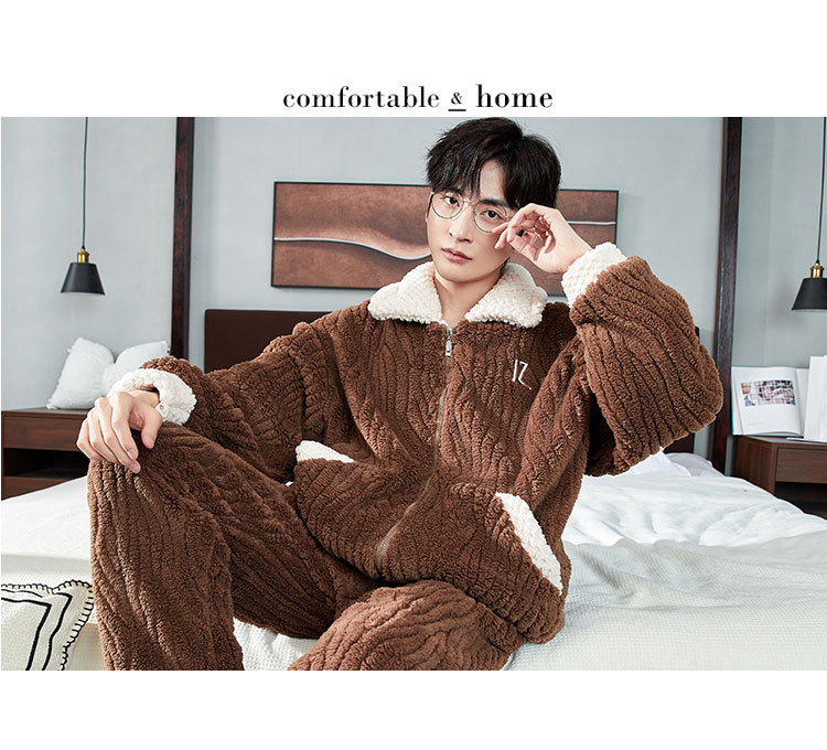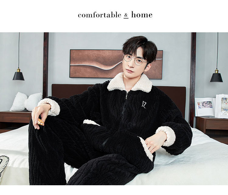 잠옷 남자의 가을과 겨울 산호 양털 두꺼운 플러스 사이즈 청소년 겨울 플란넬 가정 의류 세트스토어 가기
