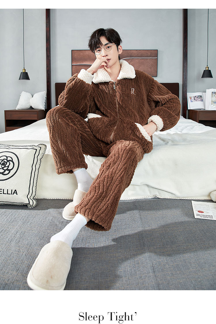 잠옷 남자의 가을과 겨울 산호 양털 두꺼운 플러스 사이즈 청소년 겨울 플란넬 가정 의류 세트