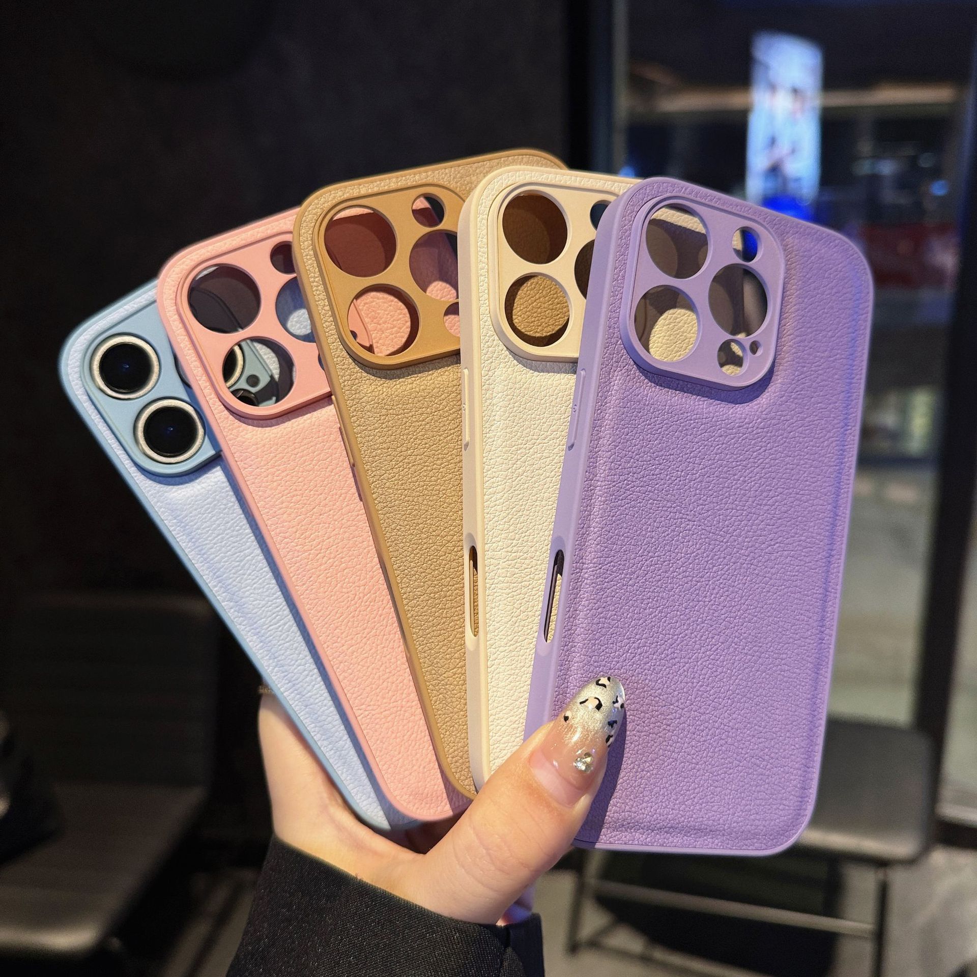 애플 16 리치 가죽 질감 휴대폰 케이스, 심플한 정밀 구멍 디자인의 가죽 질감 아이폰 17 프로 스킨 케이스, 수출용스토어 가기