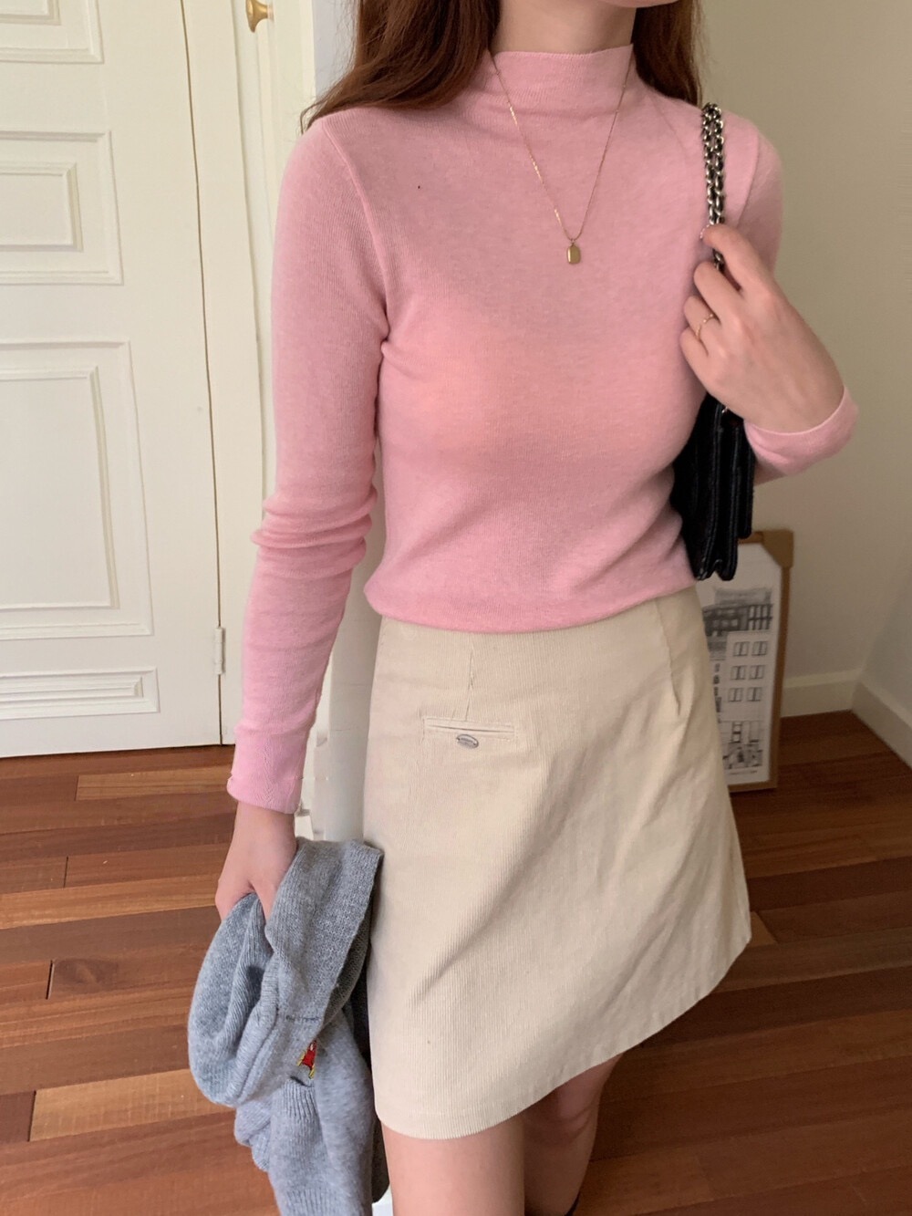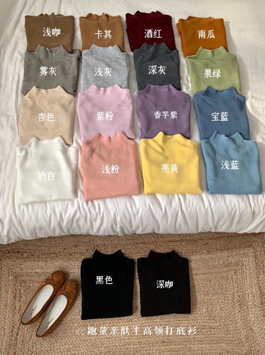 여성용 하프 터틀넥 스웨터 겨울 한국 스타일 슬림핏 스탠드 칼라 미드 칼라 울 니트 베이스 셔츠 스트레치 M5631스토어 가기