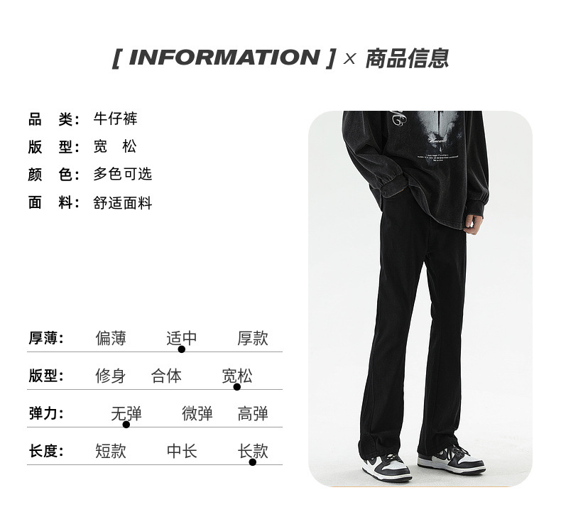 상구 남성복 아메리칸 스타일 부츠컷 청바지 남성 트렌디 브랜드 다용도 루즈핏 긴바지 기모 청바지 맞춤 제작스토어 가기