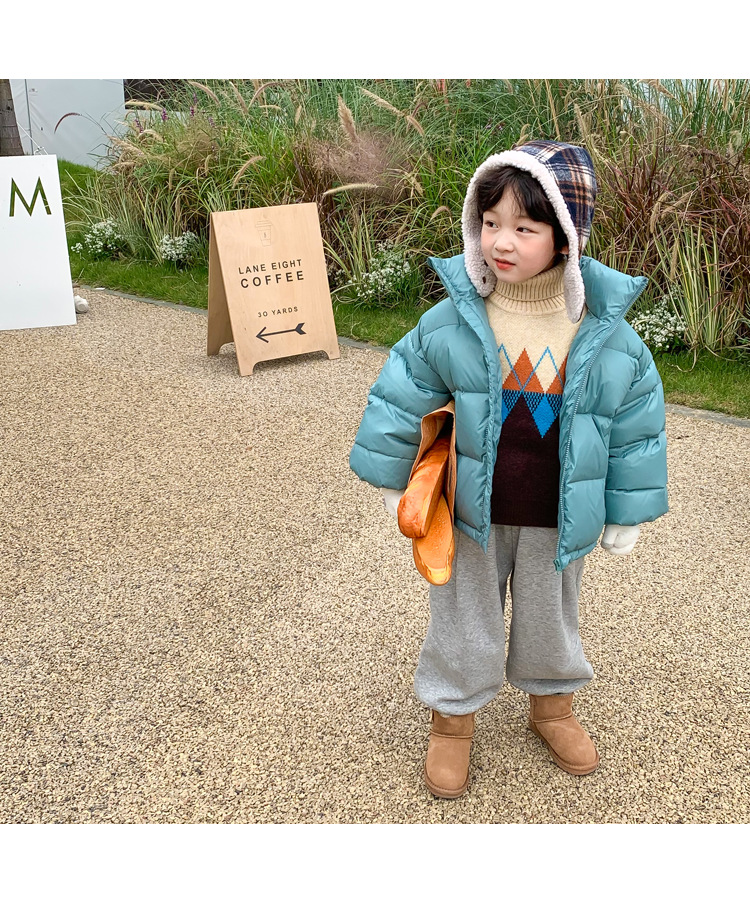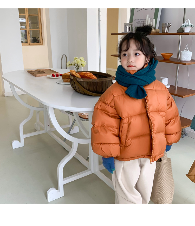 어린이 다운 재킷 2023 가을과 겨울 새로운 소년 소녀 탑 한국 단색 흰색 오리 다운 빵 패션스토어 가기