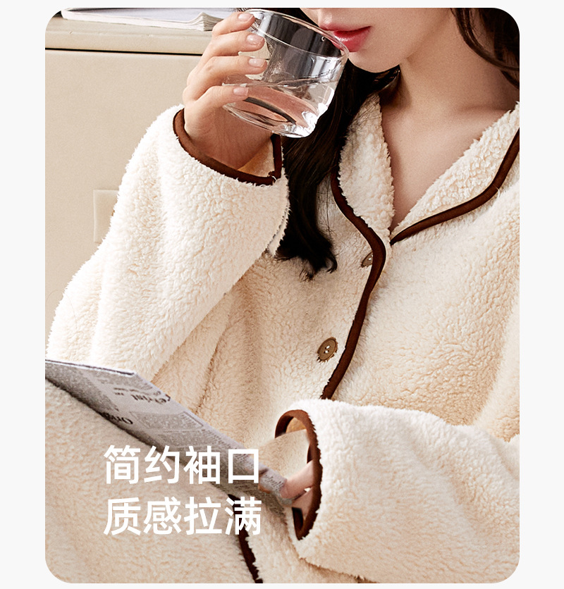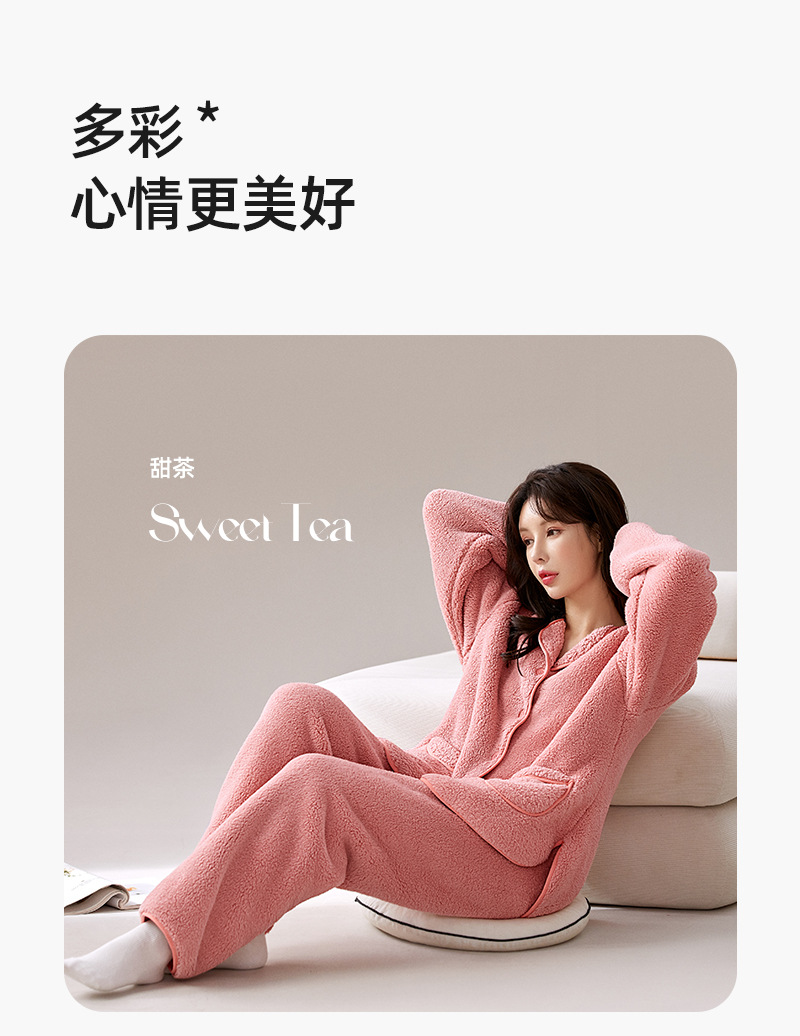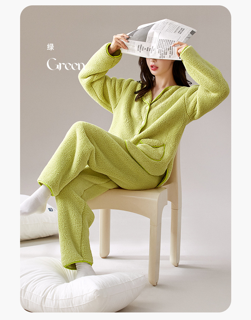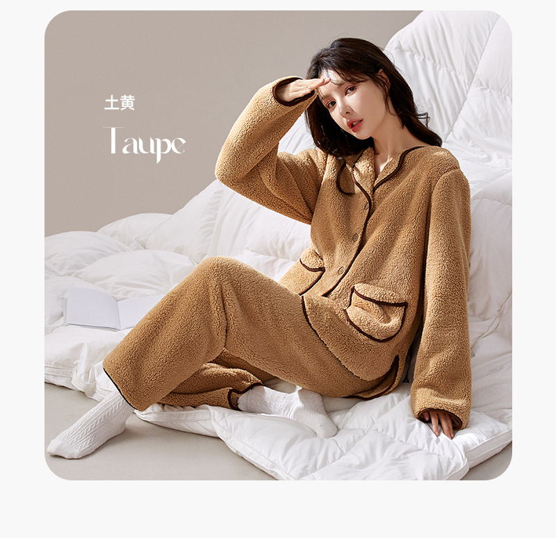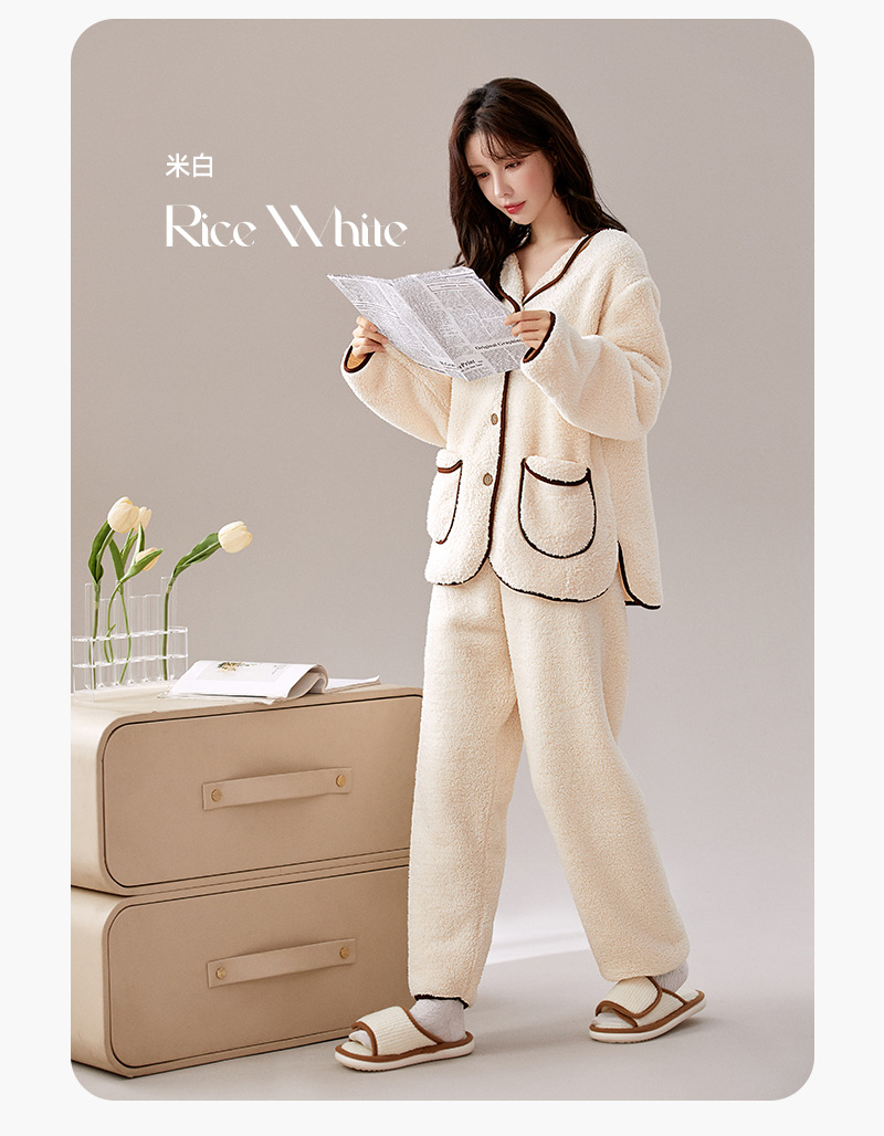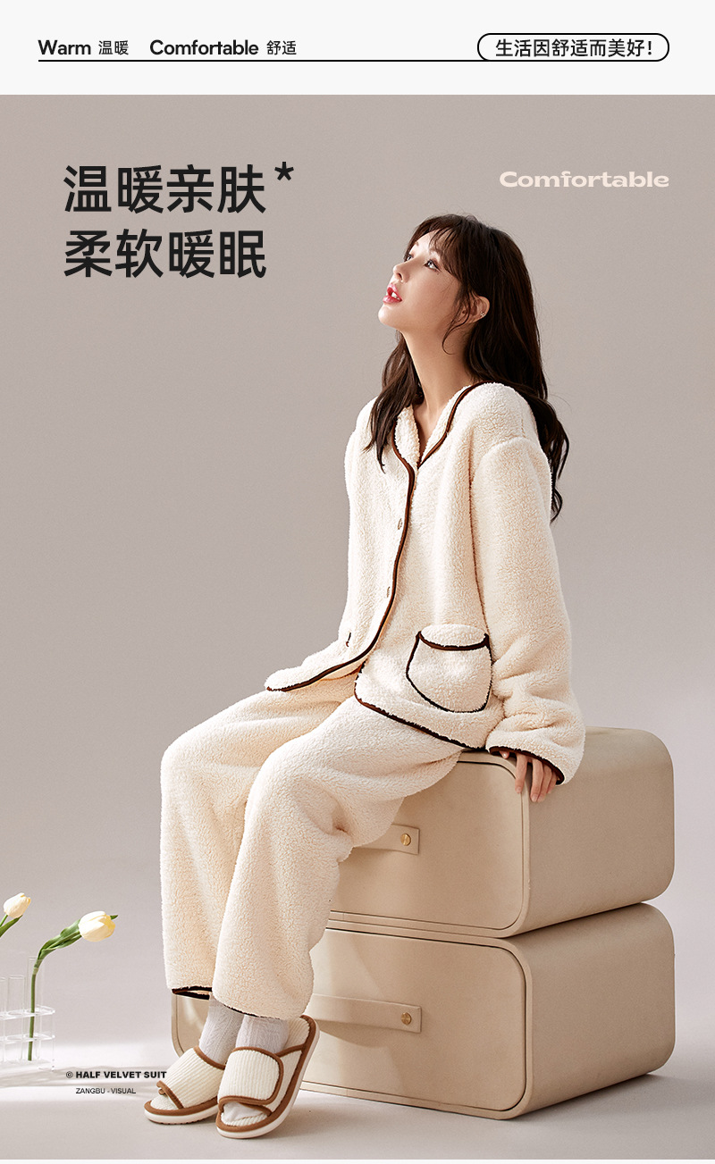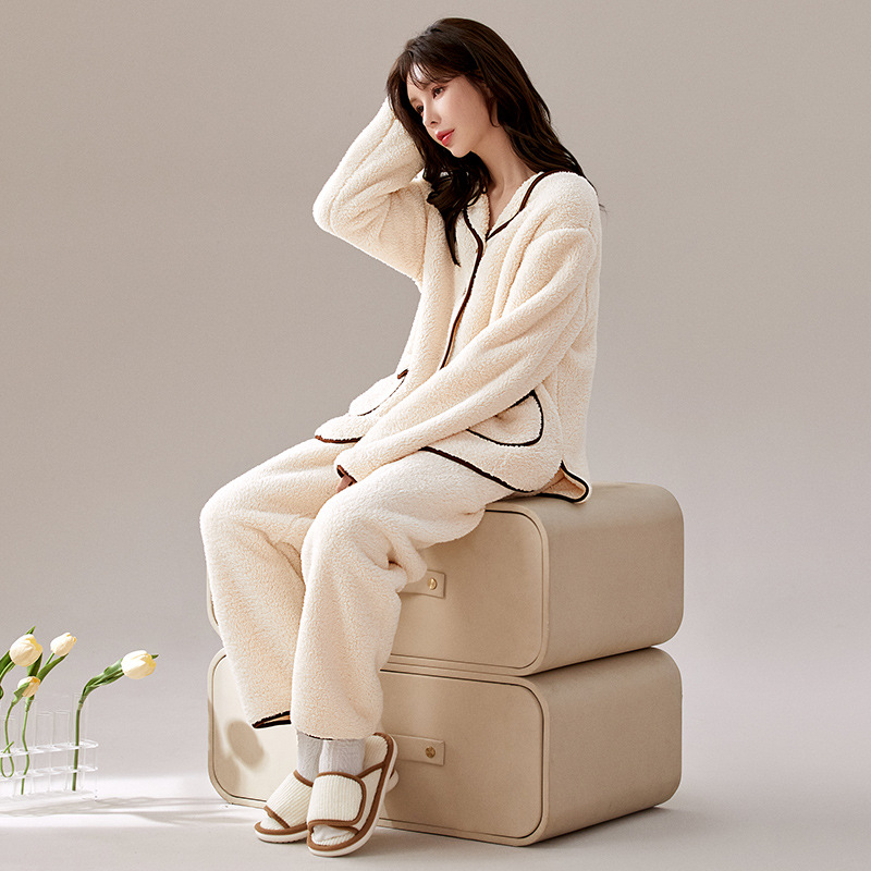 가을 겨울 반벨벳 여성용 심플 플러스벨벳 두꺼운 코랄벨벳 홈웨어 따뜻한 잠옷 및 잠옷 바지 투피스 세트스토어 가기