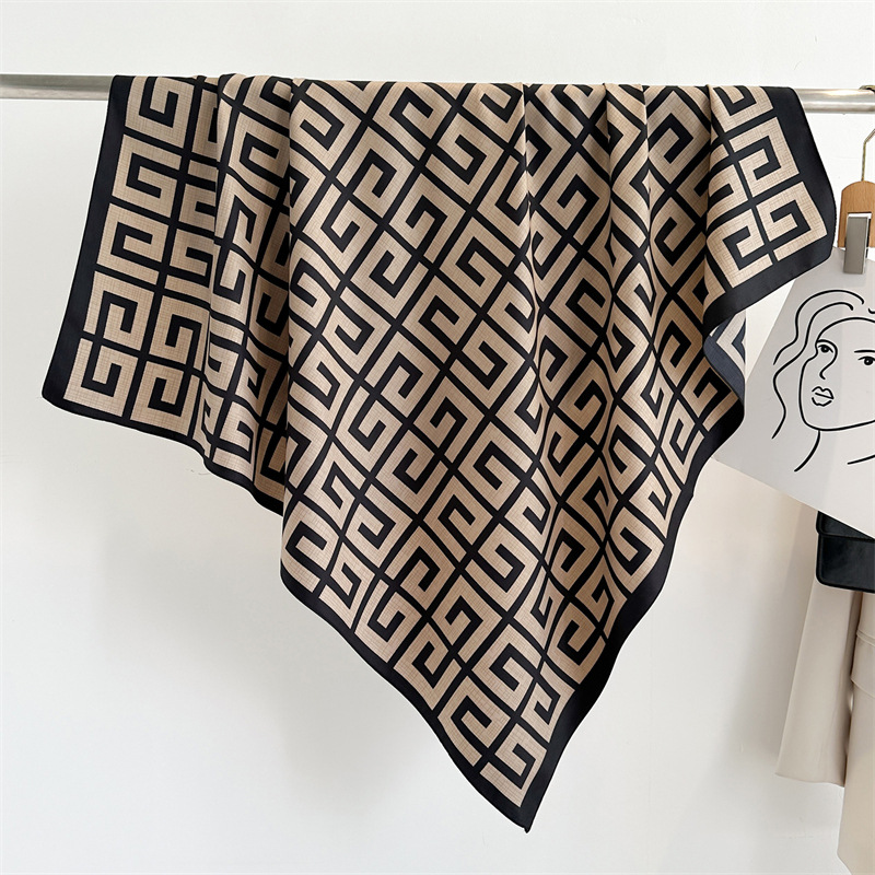 유럽과 미국의 새로운 스타일 인쇄 패션 모든 매치 스카프 90cm 대형 스퀘어 스카프 능직 실크 머리 스카프 자외선 차단제 따뜻한 숄 여성