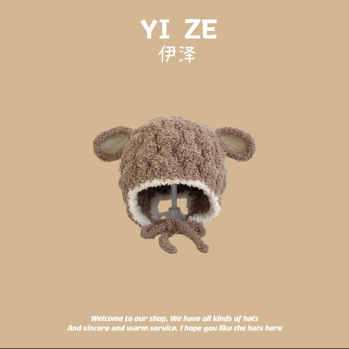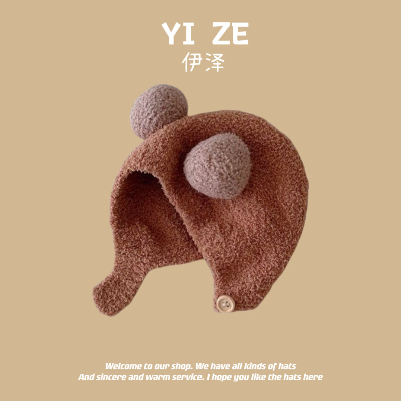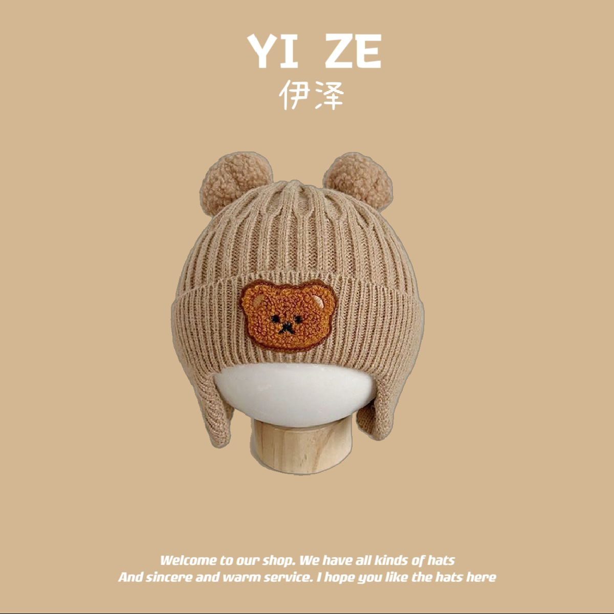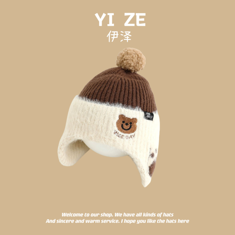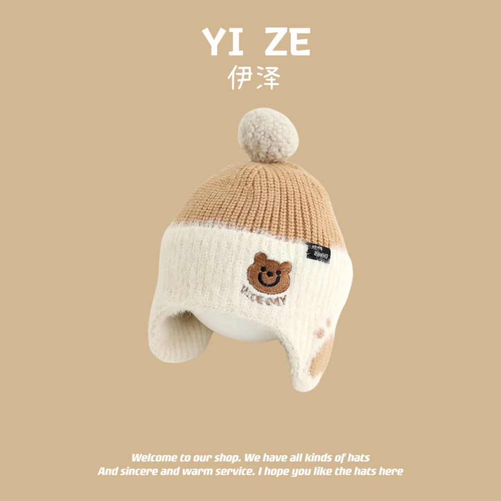 어린이 모자 한국 스타일 아기 같은 스타일 베이지 시리즈 가을과 겨울 방풍 귀 보호 소년과 소녀를위한 따뜻한 니트 모자