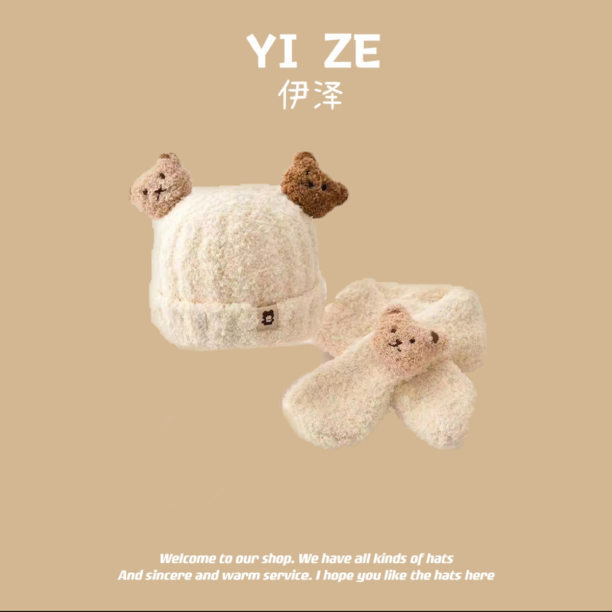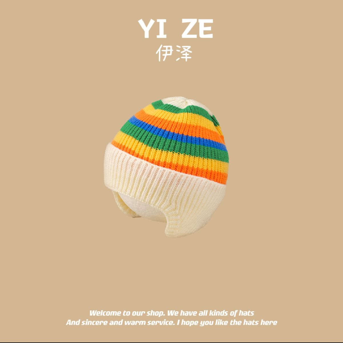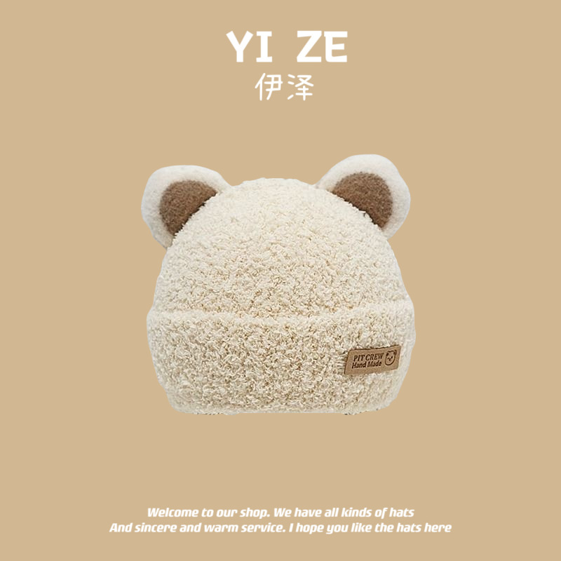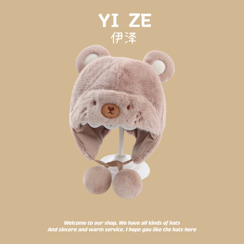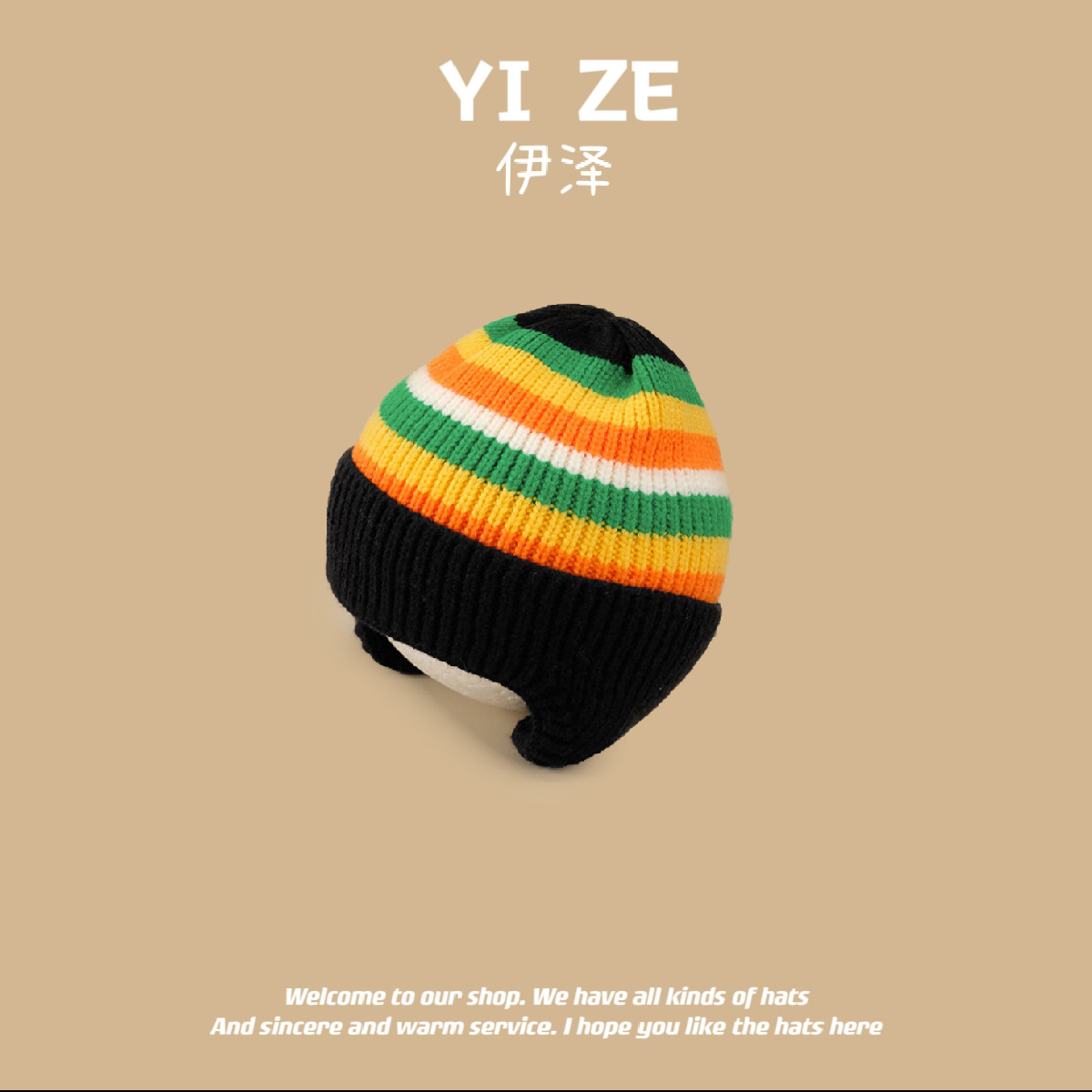 어린이 모자 한국 스타일 아기 같은 스타일 베이지 시리즈 가을과 겨울 방풍 귀 보호 소년과 소녀를위한 따뜻한 니트 모자