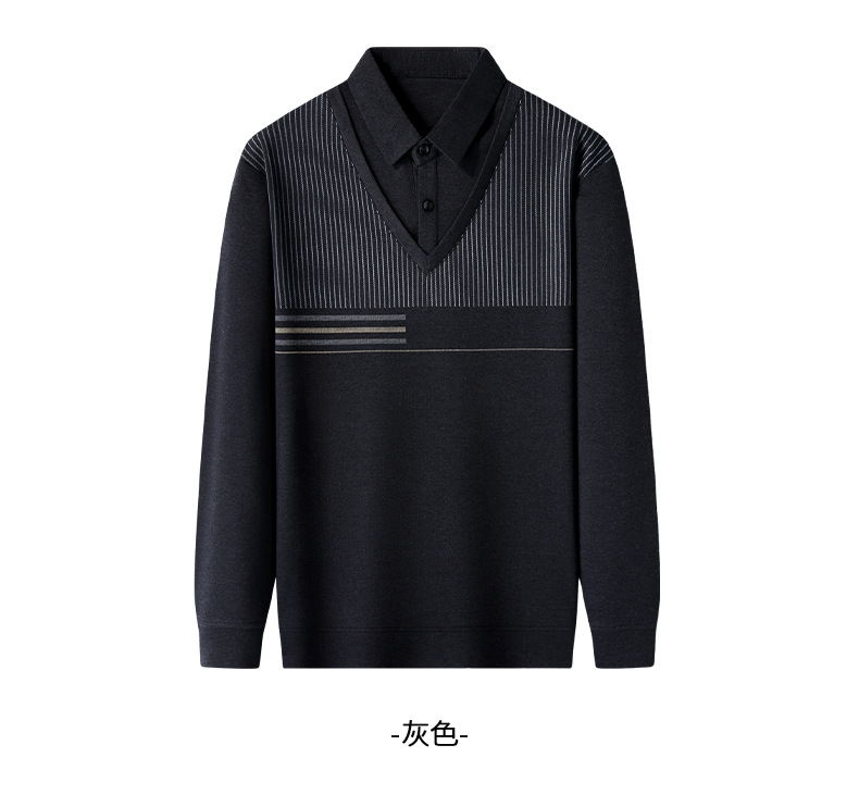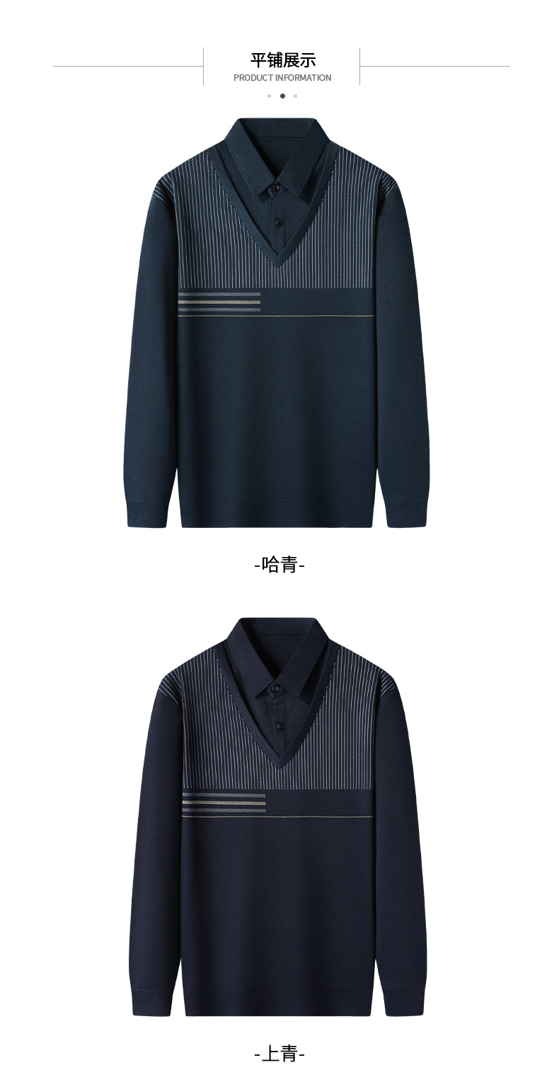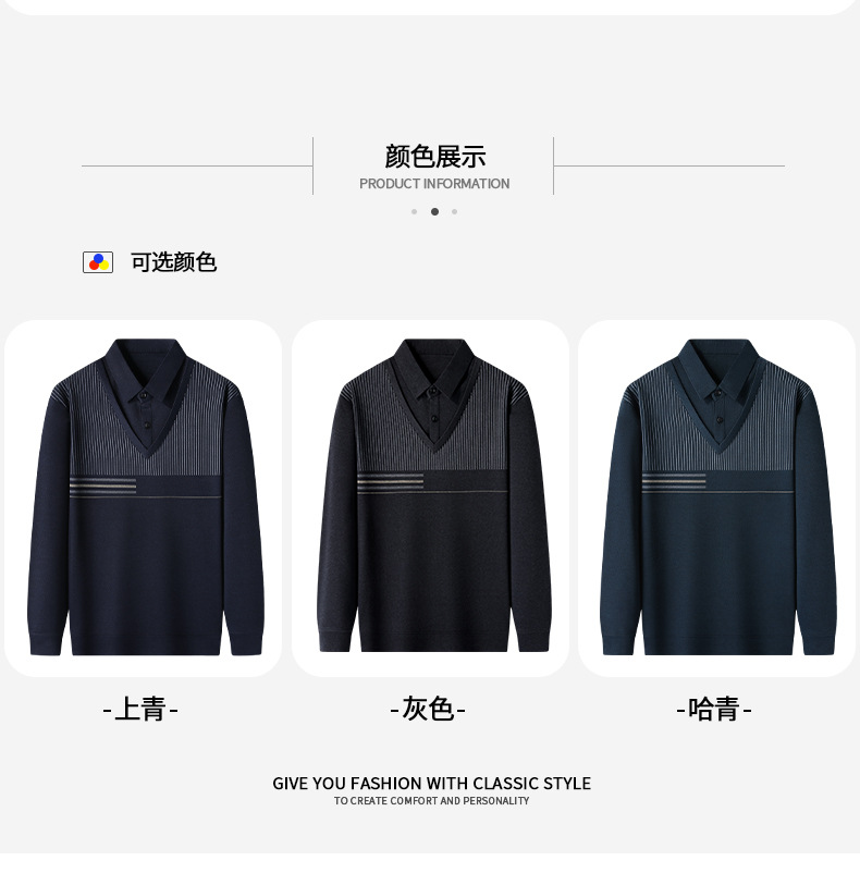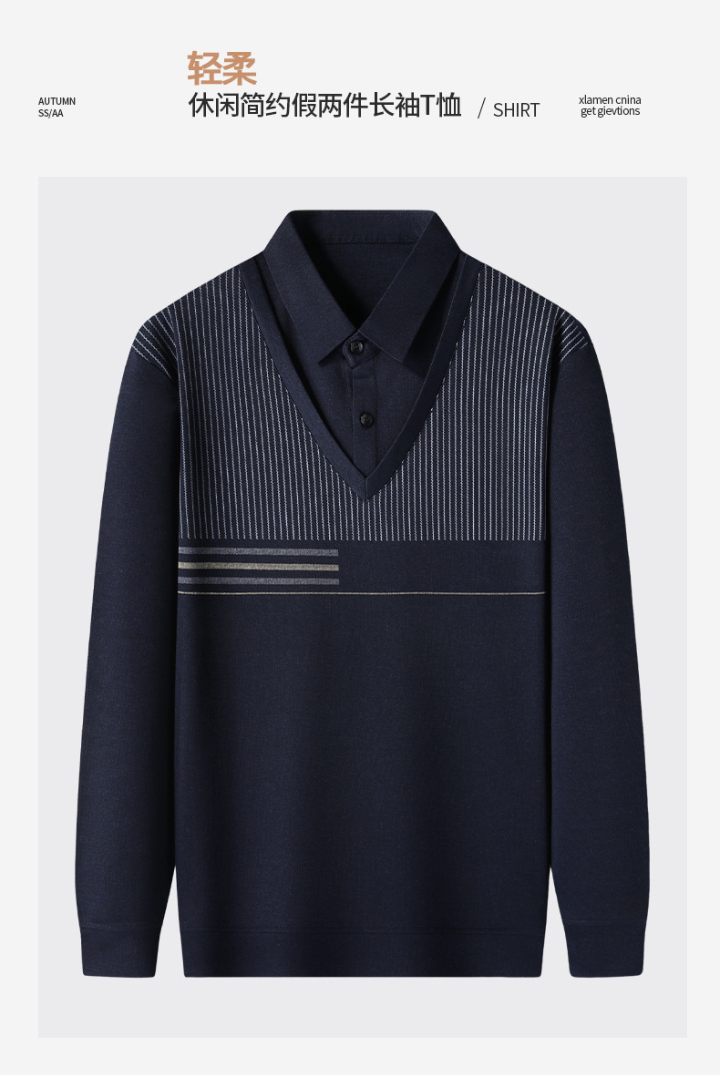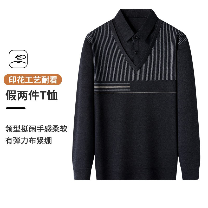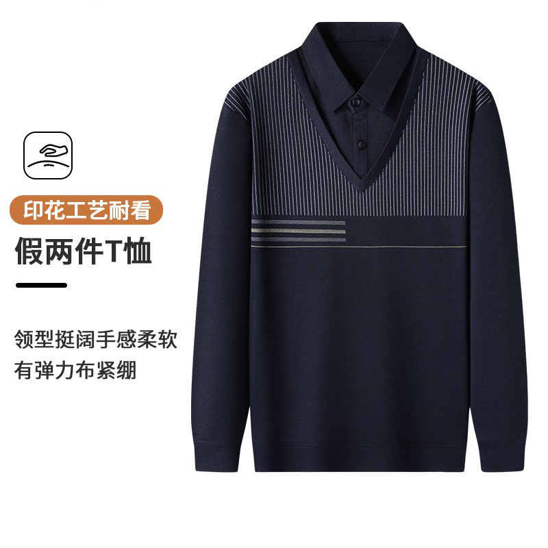 아빠 봄 긴팔 티셔츠 남성 루즈 캐주얼 페이크 투피스 셔츠 칼라 중년 할아버지 탑 바닥 셔츠스토어 가기