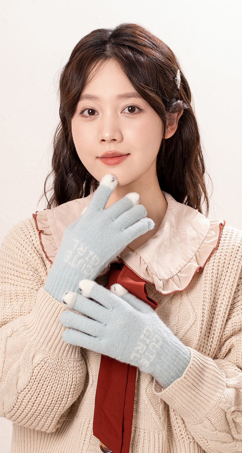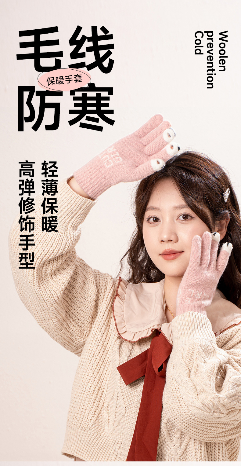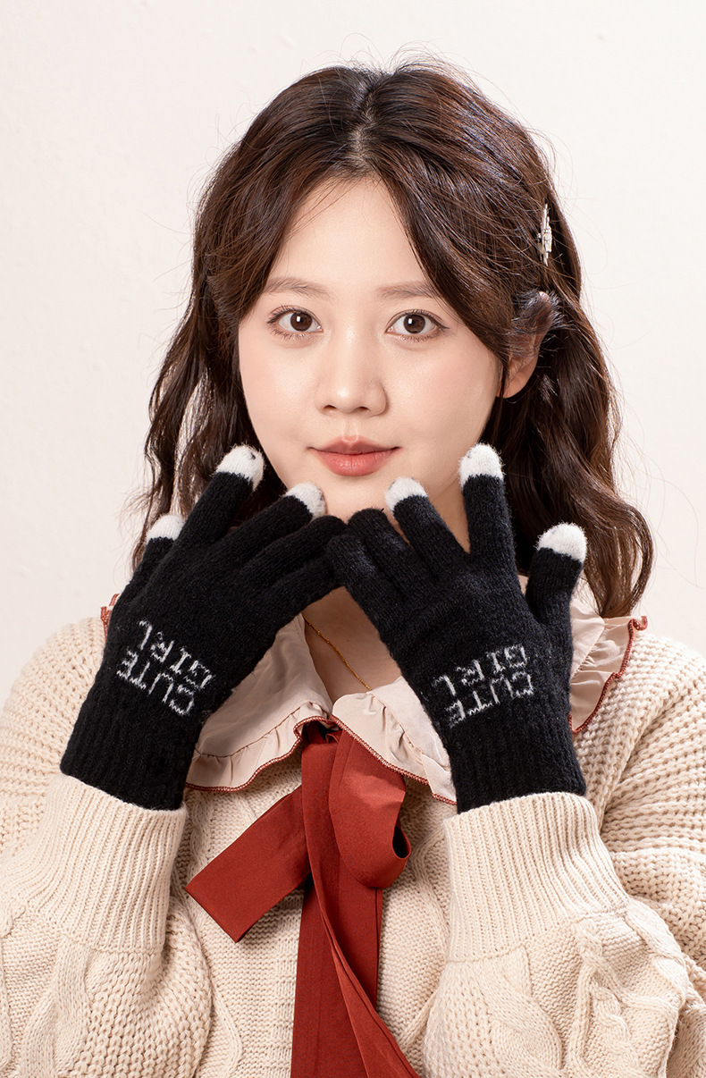 공장 직접 판매 니트 양모 전체 손가락 노출 터치 스크린 겨울 방한 따뜻한 게임 숙제 따뜻한 장갑
