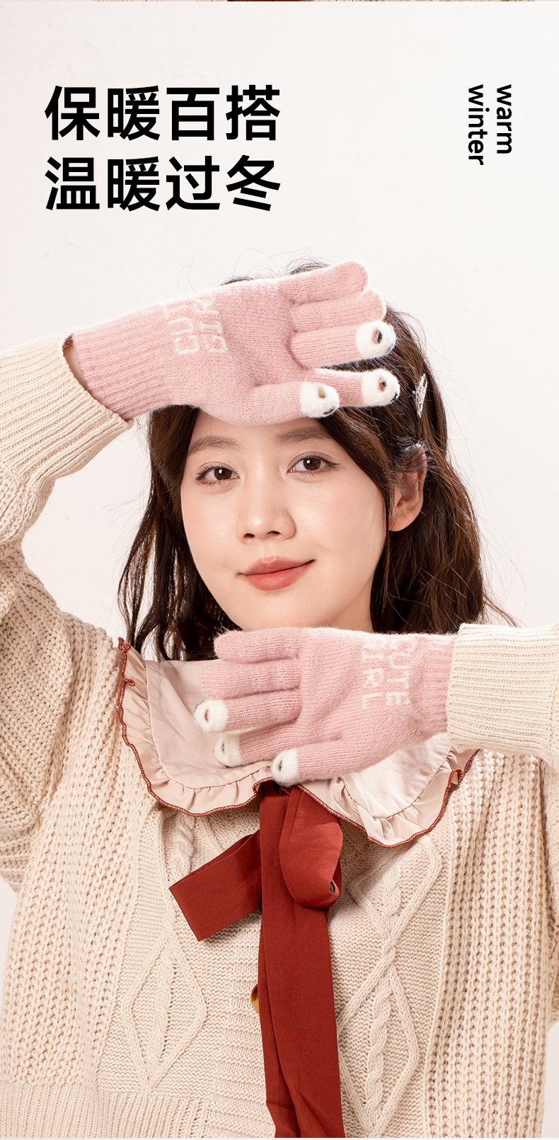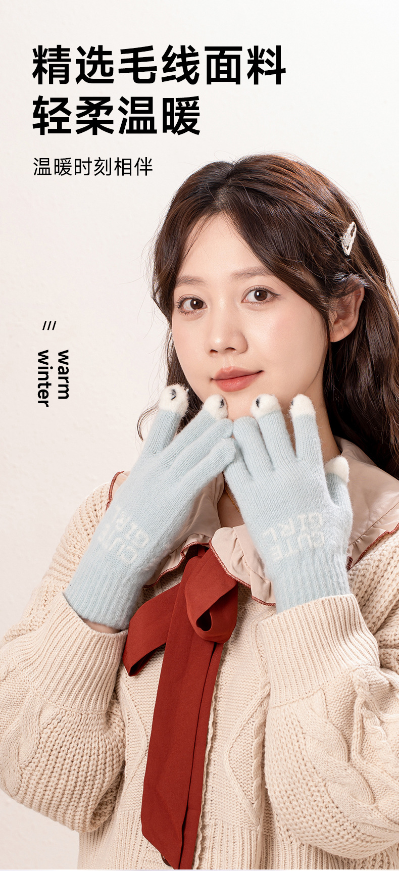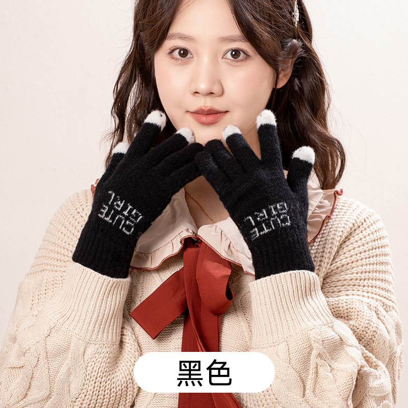 공장 직접 판매 니트 양모 전체 손가락 노출 터치 스크린 겨울 방한 따뜻한 게임 숙제 따뜻한 장갑