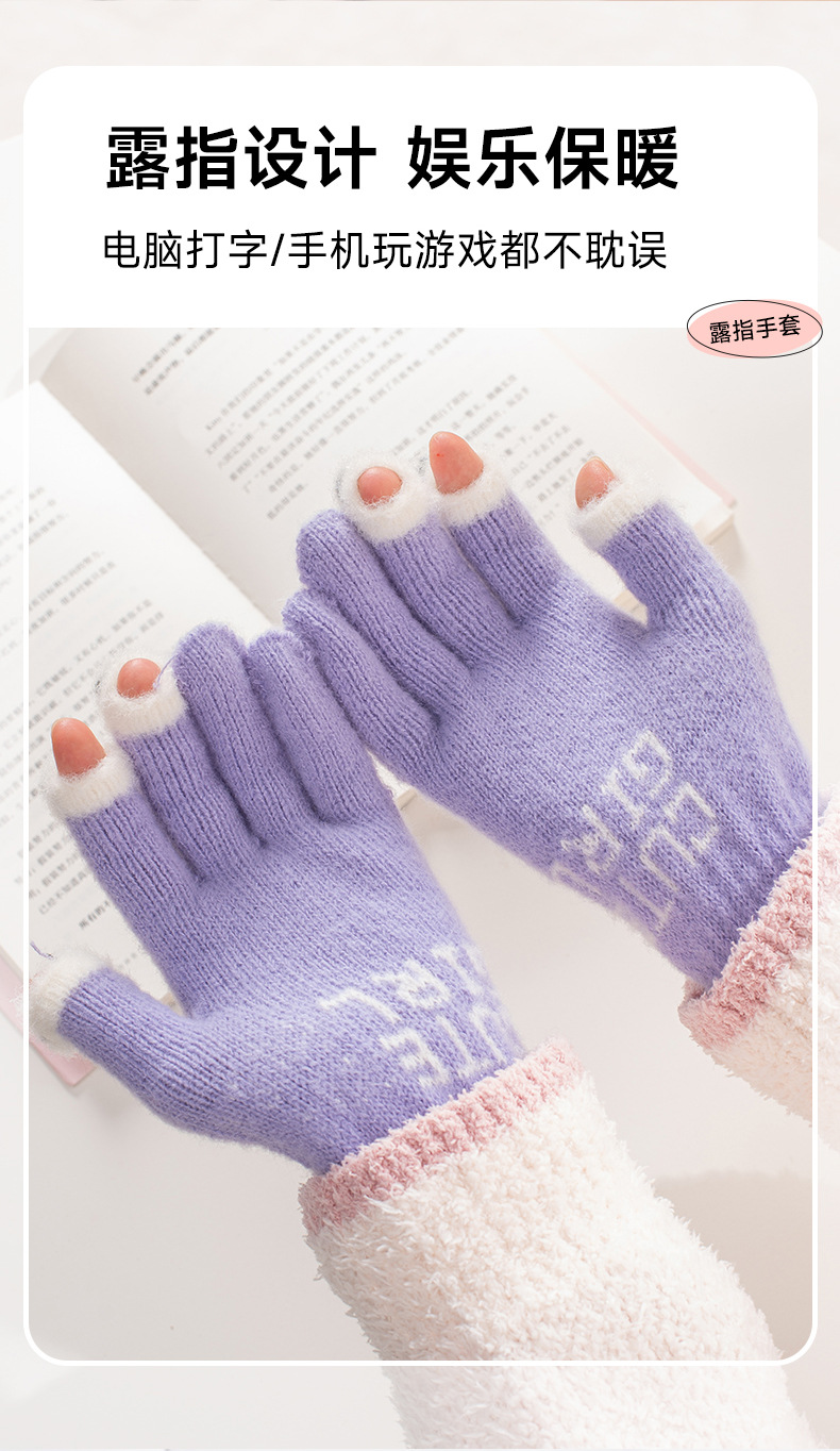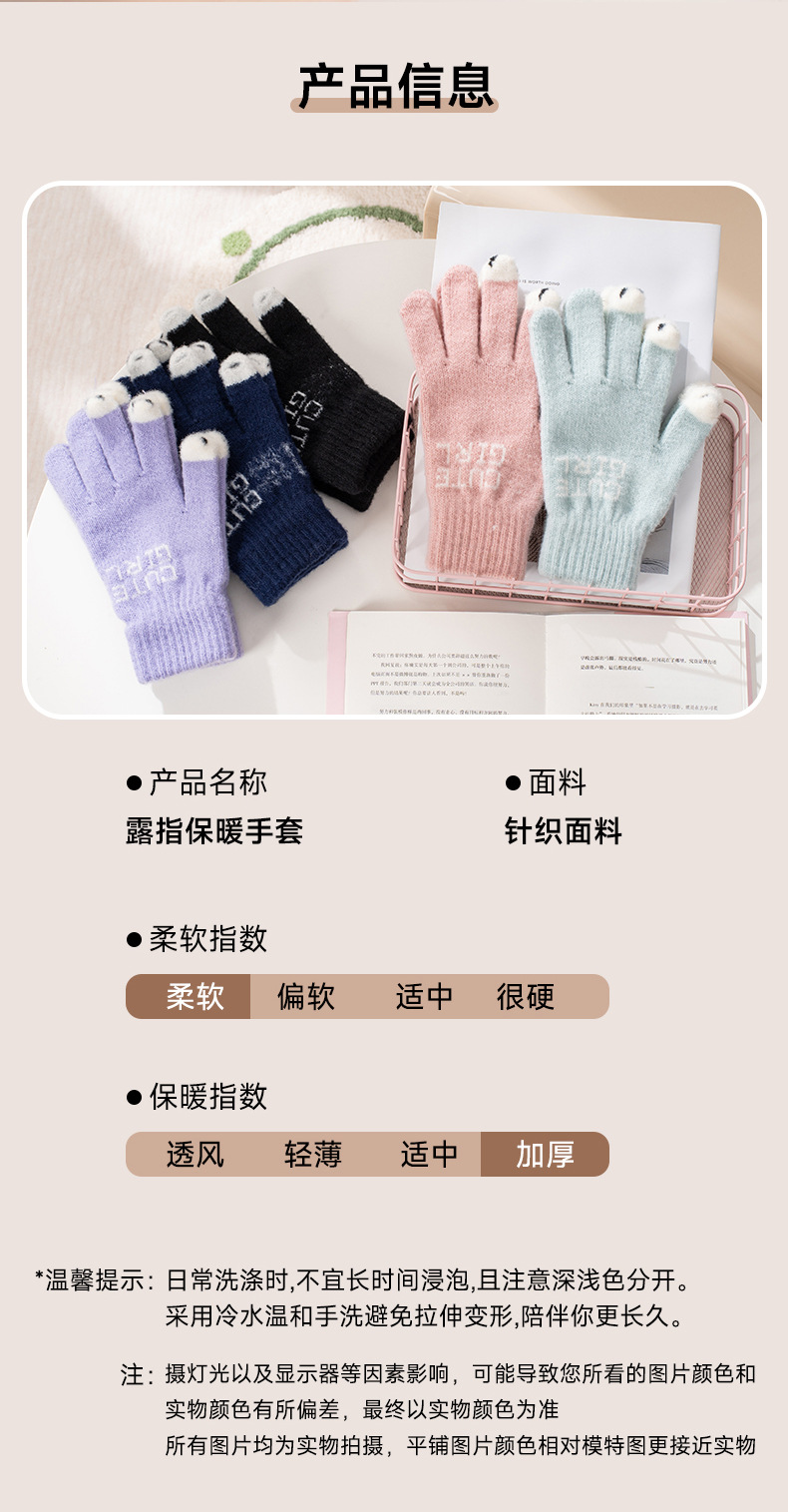 공장 직접 판매 니트 양모 전체 손가락 노출 터치 스크린 겨울 방한 따뜻한 게임 숙제 따뜻한 장갑스토어 가기