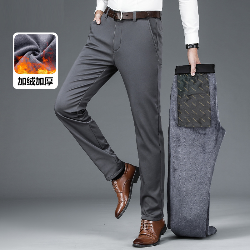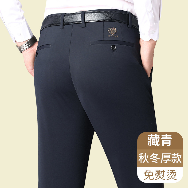 [4 면 스트레치] 가을 겨울 캐주얼 바지 니트 4 면 스트레치 남성 바지 비 다림질 블랙 스트레이트 비즈니스 롱 팬츠스토어 가기