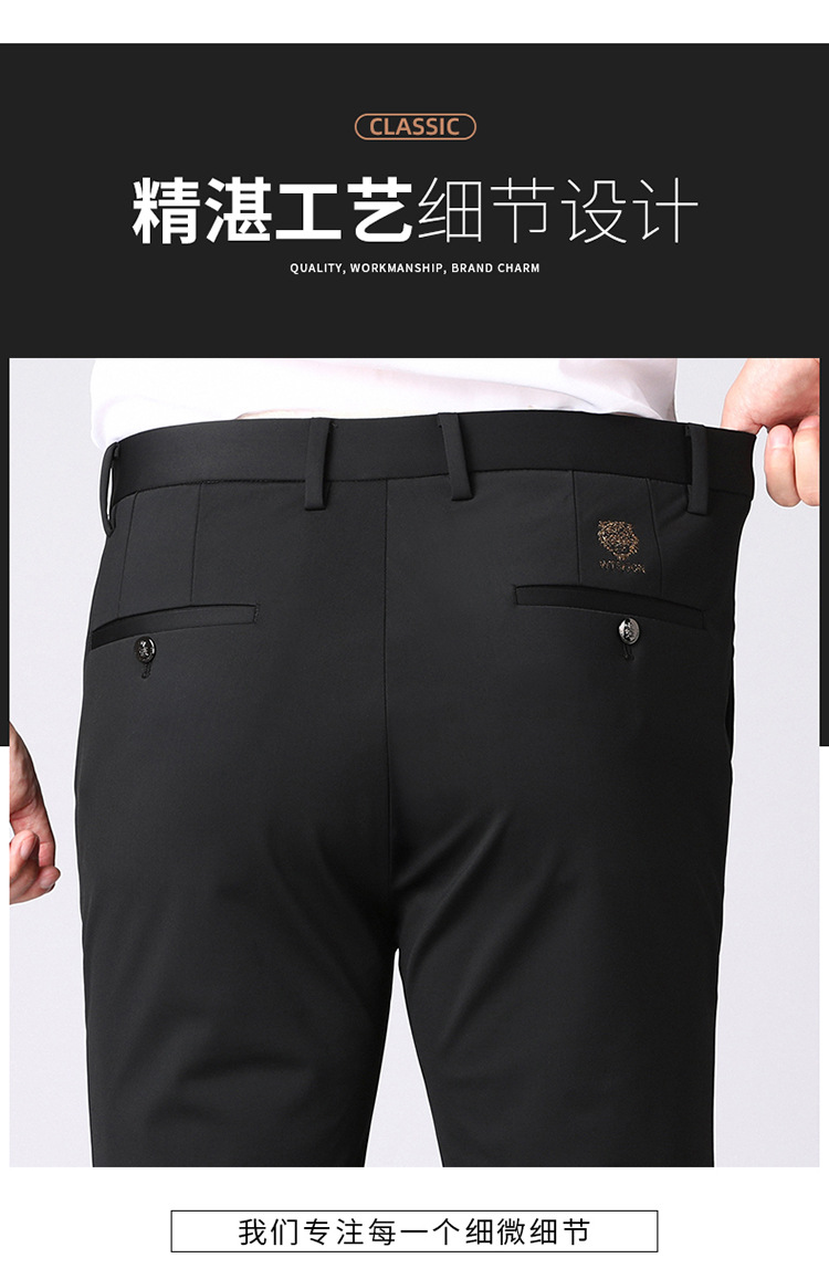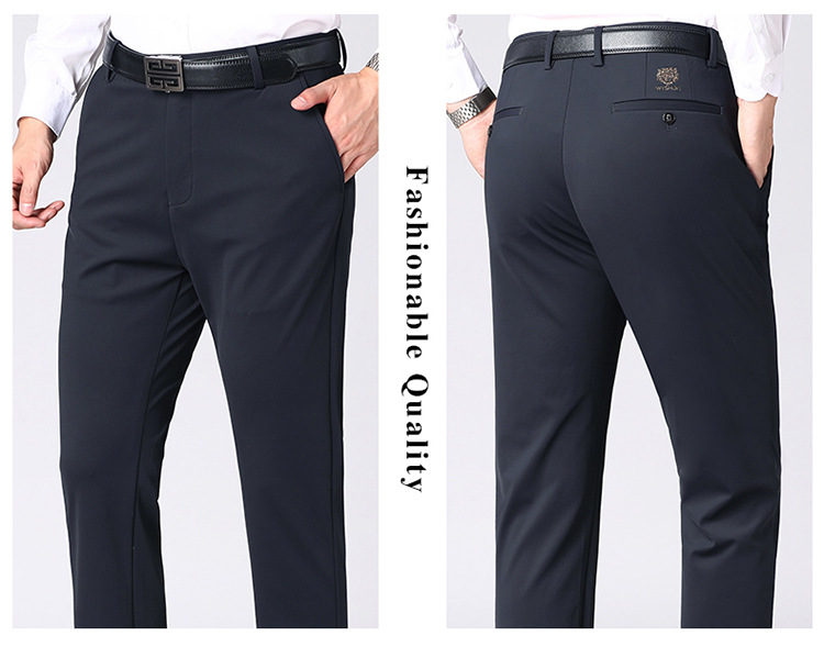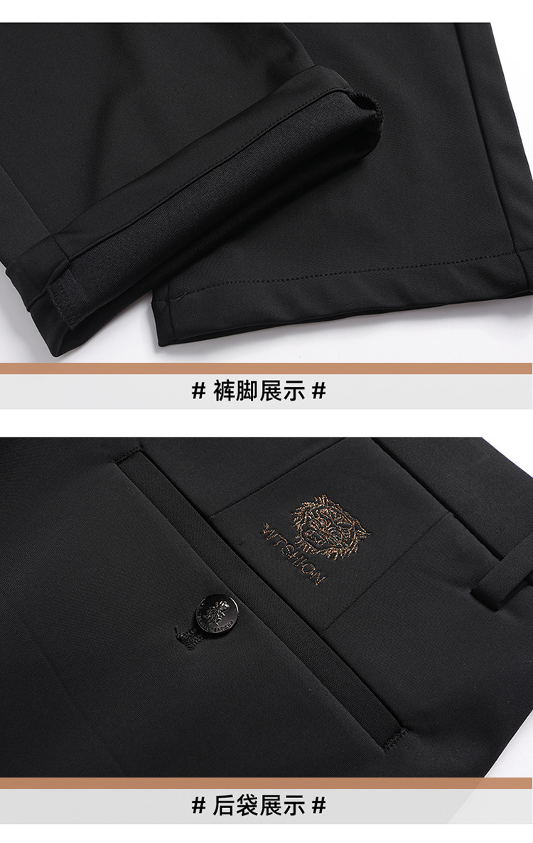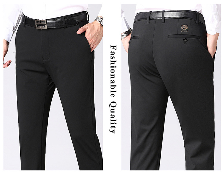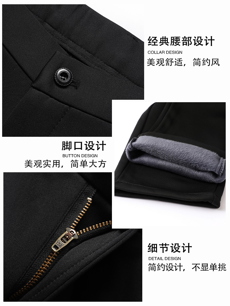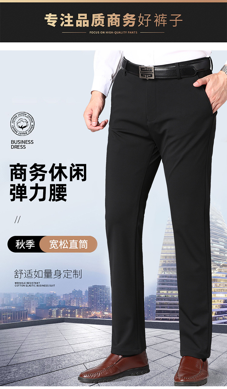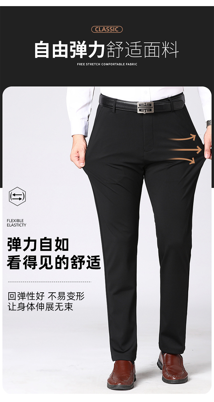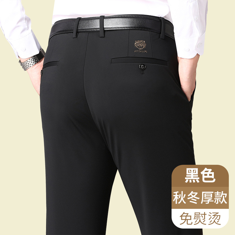 [4 면 스트레치] 가을 겨울 캐주얼 바지 니트 4 면 스트레치 남성 바지 비 다림질 블랙 스트레이트 비즈니스 롱 팬츠