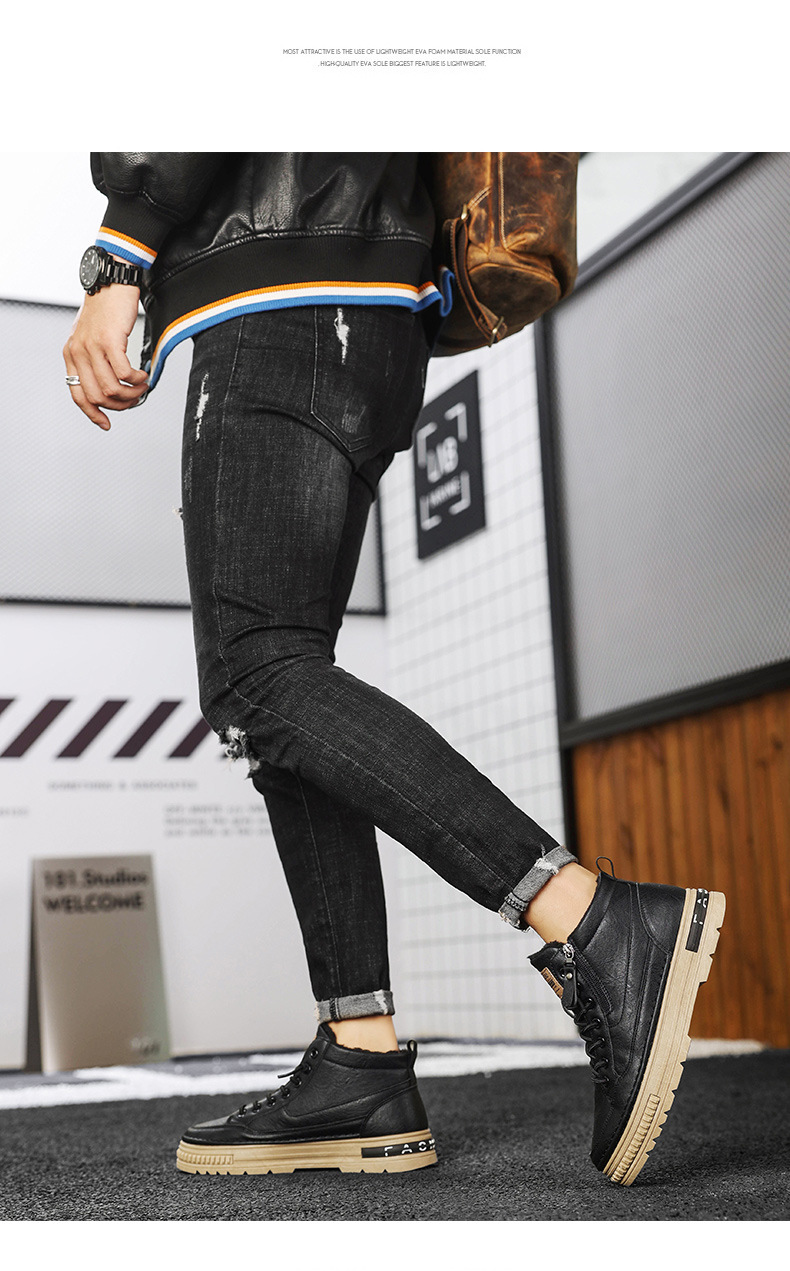 남자 신발 겨울 새로운 미드 하이 마틴 부츠 남자의 영국 로우 탑 캐주얼 가죽 신발 미국 빈티지 툴링 면화