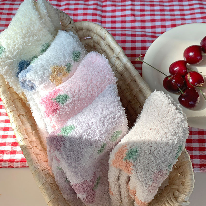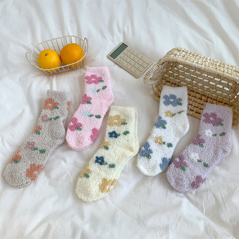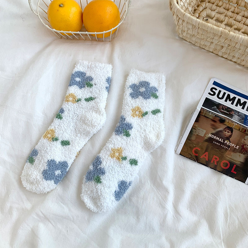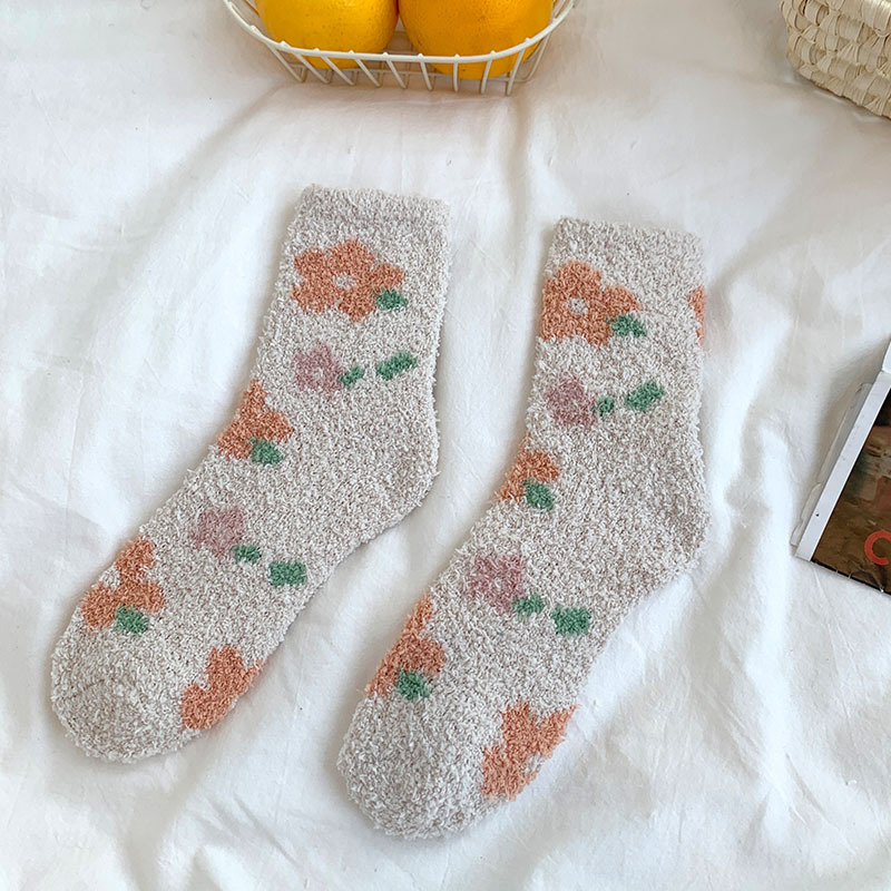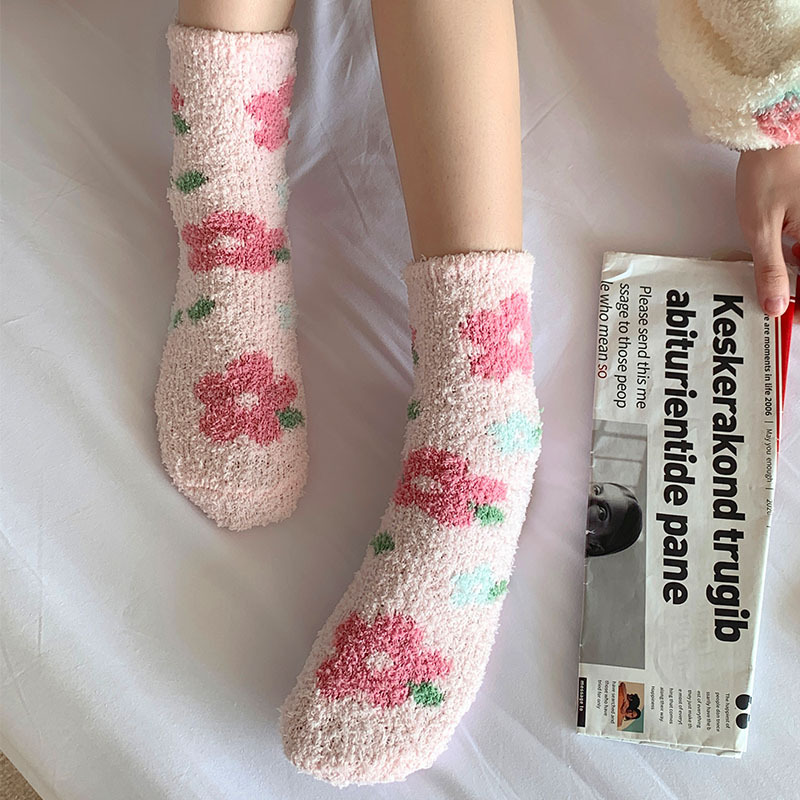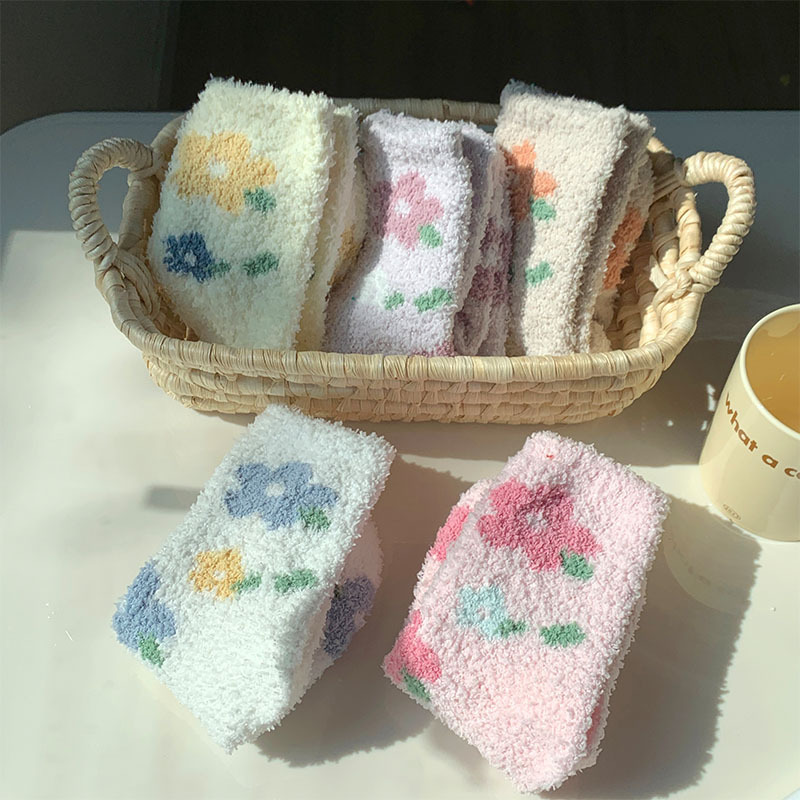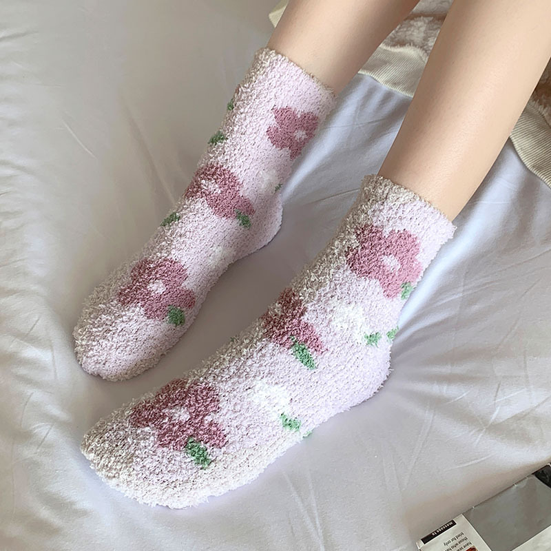 일본 스타일 달콤한 스타일 소녀 스타일 산호 벨벳 양말 여자의 겨울 기모 두꺼운 따뜻한 가정 산후 수면 달 양말스토어 가기