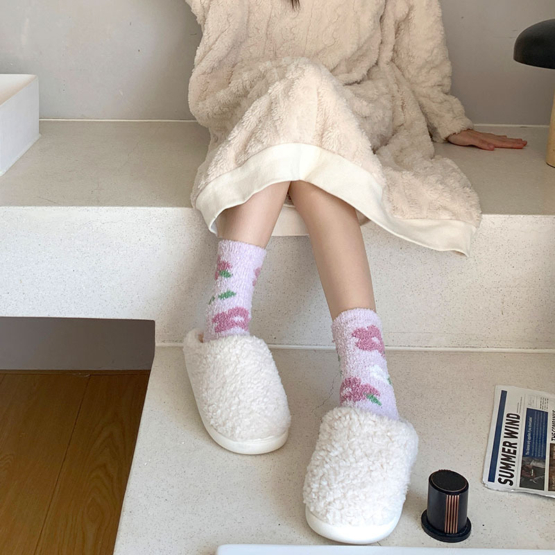 일본 스타일 달콤한 스타일 소녀 스타일 산호 벨벳 양말 여자의 겨울 기모 두꺼운 따뜻한 가정 산후 수면 달 양말