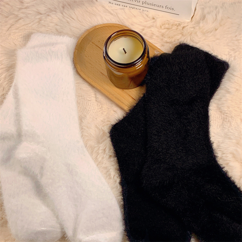 밍크 벨벳 통기성 양말 어린이 중간 튜브 양말 가을과 겨울 기모 두꺼운 모피 화이트 문 양말 따뜻한 모피 양말스토어 가기