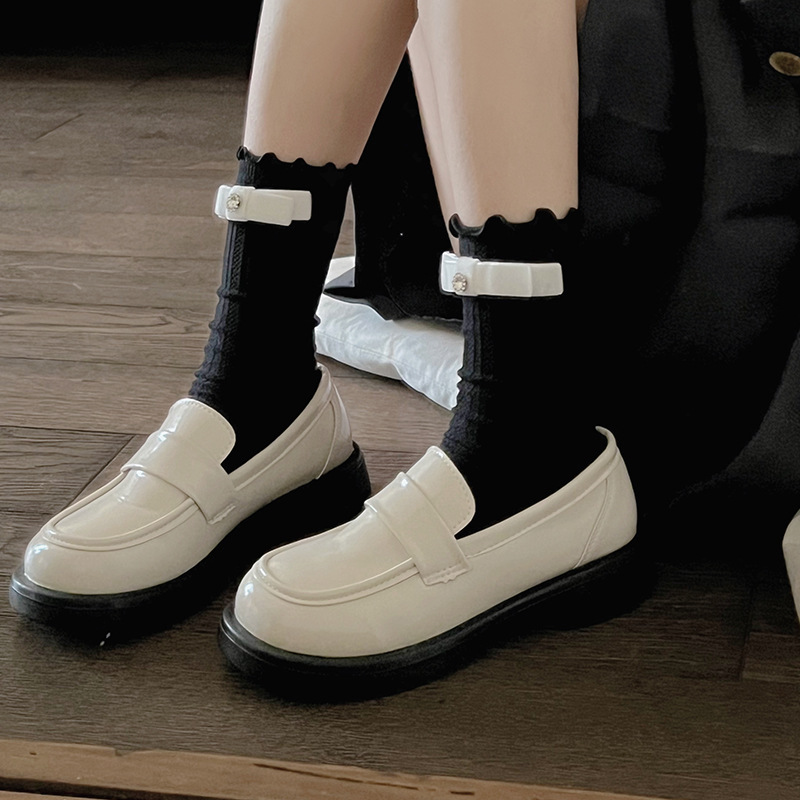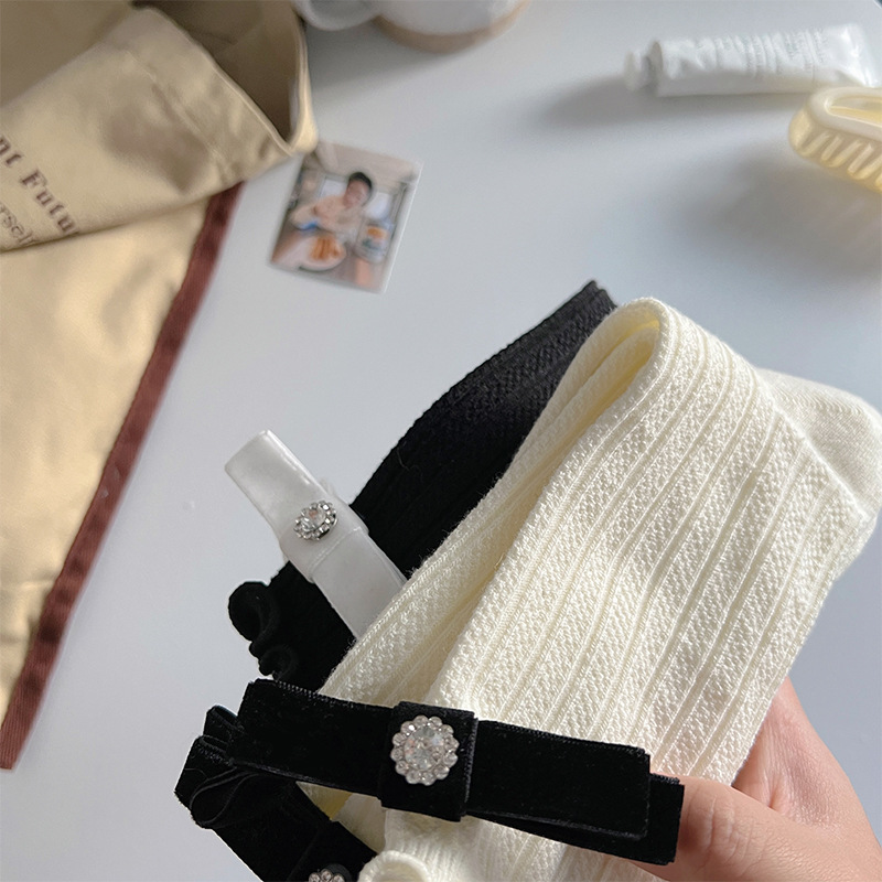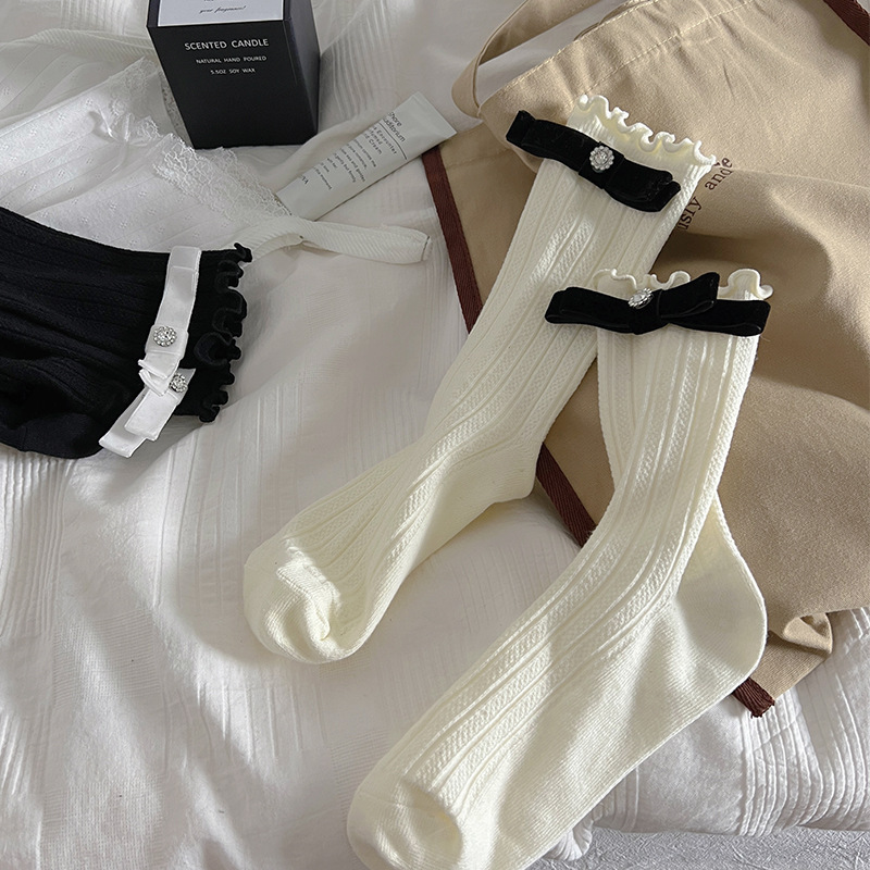 우드 이어 미드 튜브 양말 여성용 발레 스타일 소녀의 달콤한 활 이른 가을 아우터 매칭 로퍼 jk 파일 양말스토어 가기