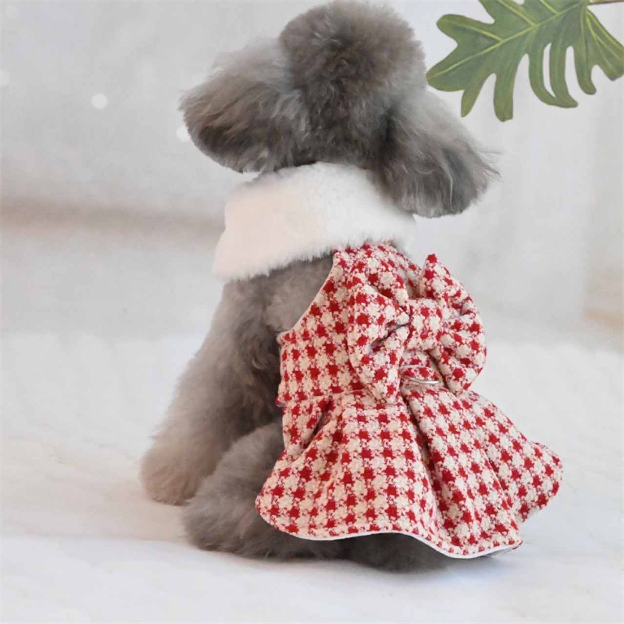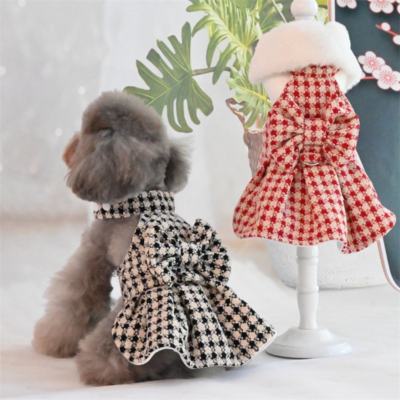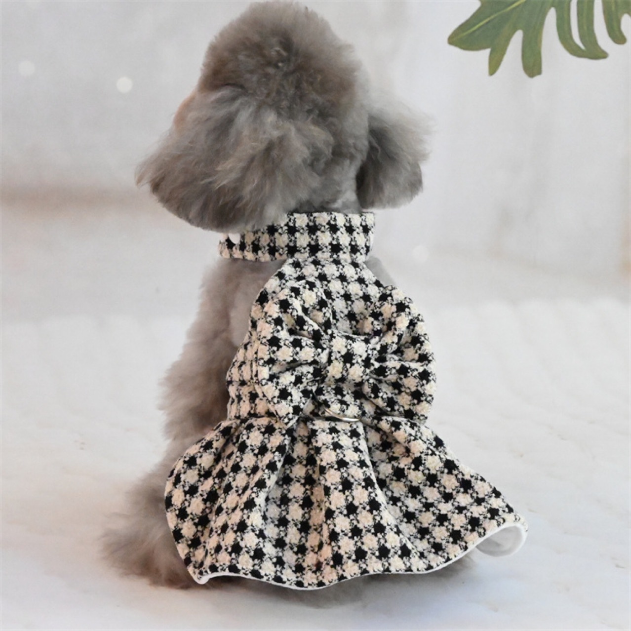샤넬 스타일 공주 원피스 애완 동물 고양이 개 가을과 겨울 기모 Houndstooth 작은 뼈 우유 벨벳 테디 숙녀 원피스스토어 가기
