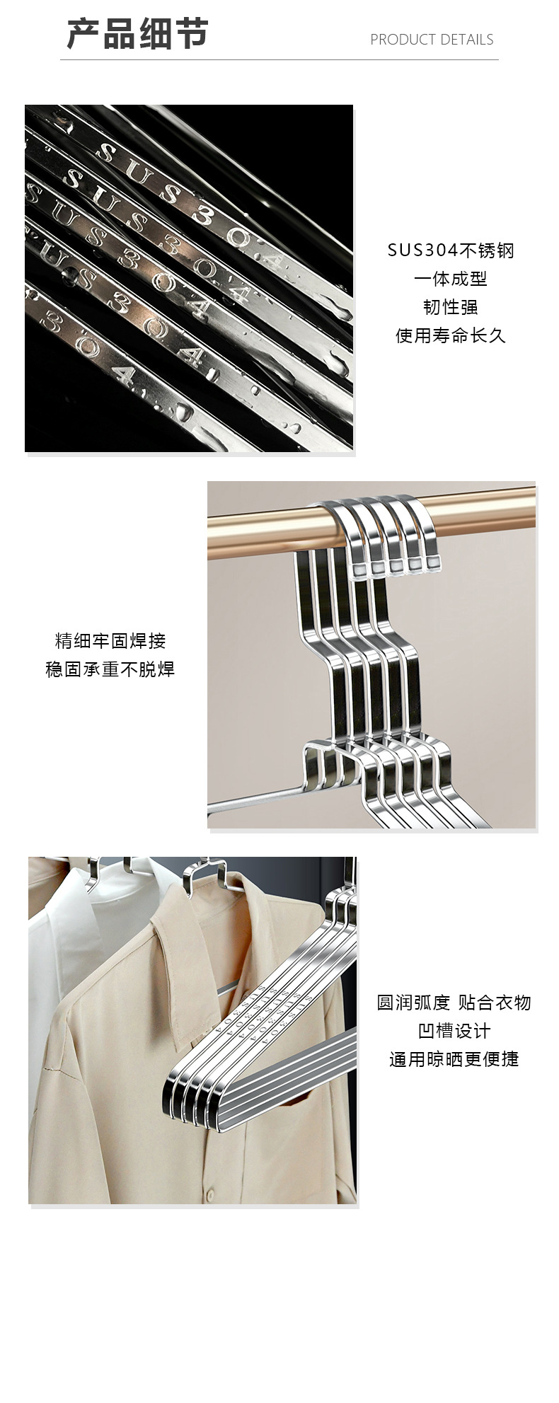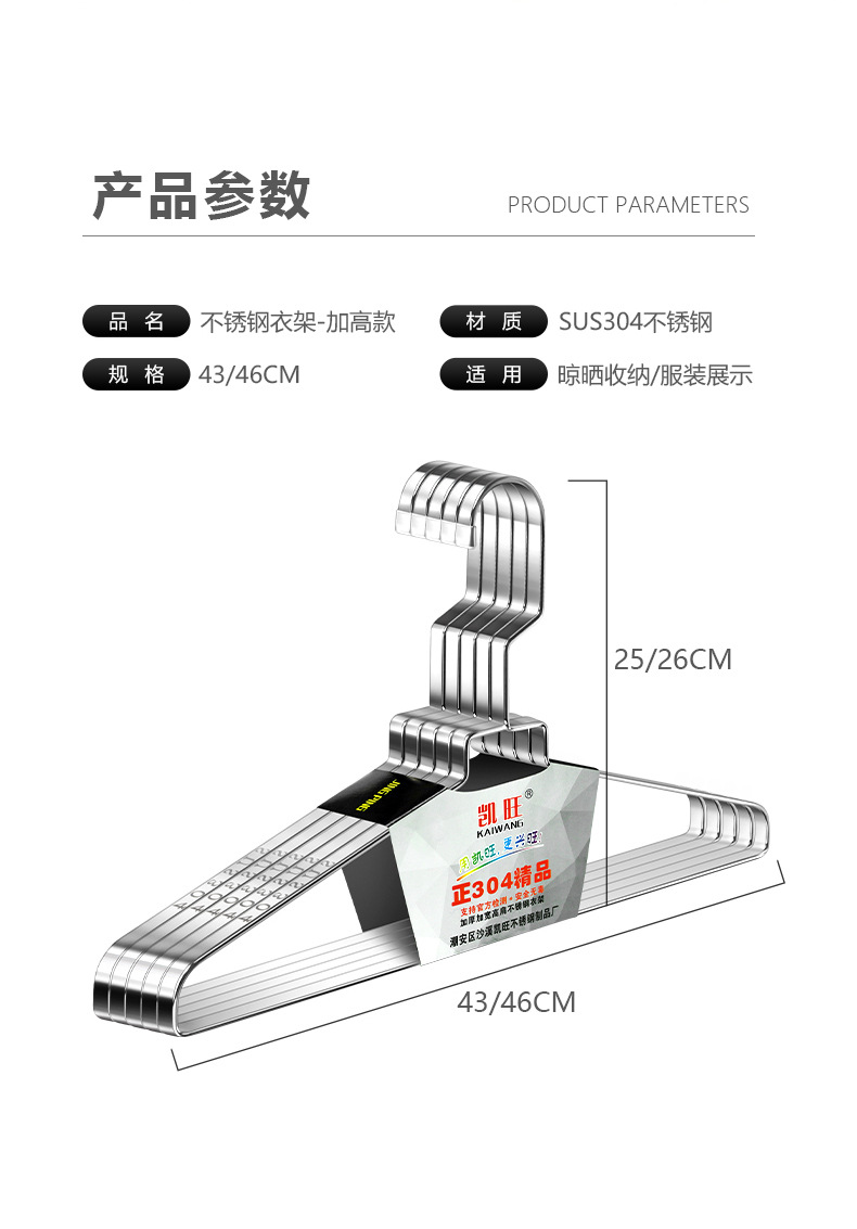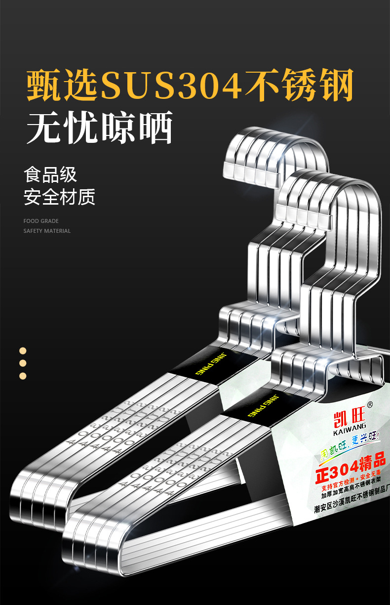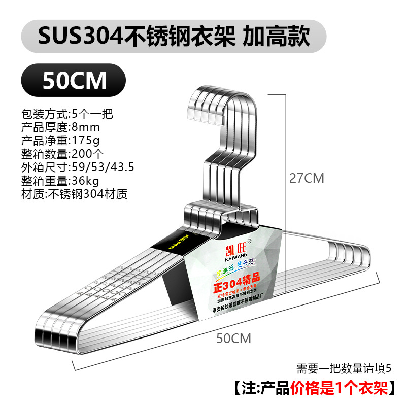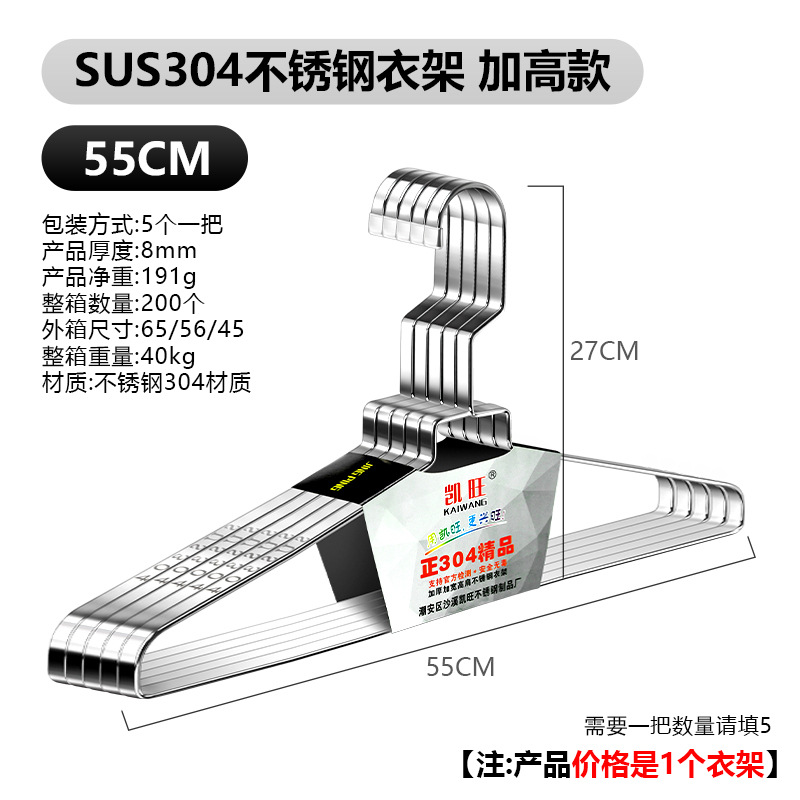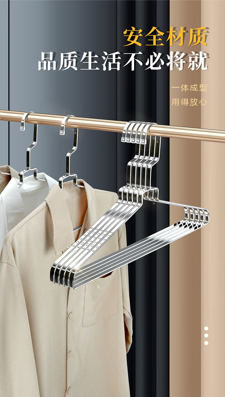 304 스테인레스 스틸 행거 두꺼운 플랫 행거 8mm 솔리드 행거 도매 의류 랙 의류 랙 의류 랙