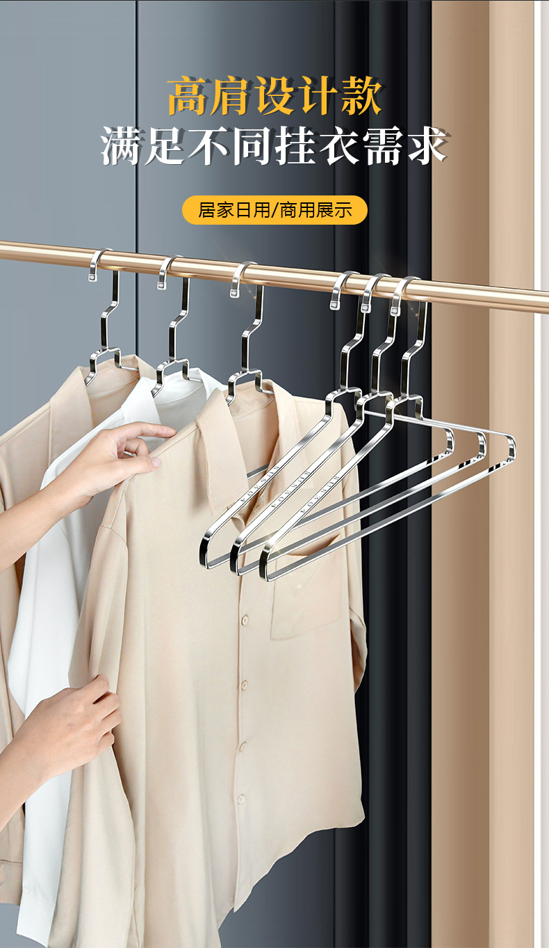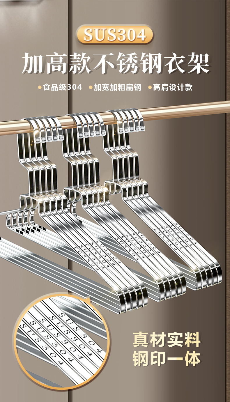 304 스테인레스 스틸 행거 두꺼운 플랫 행거 8mm 솔리드 행거 도매 의류 랙 의류 랙 의류 랙스토어 가기