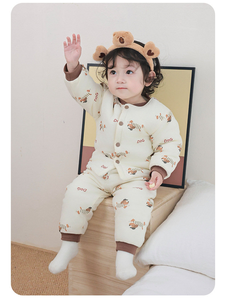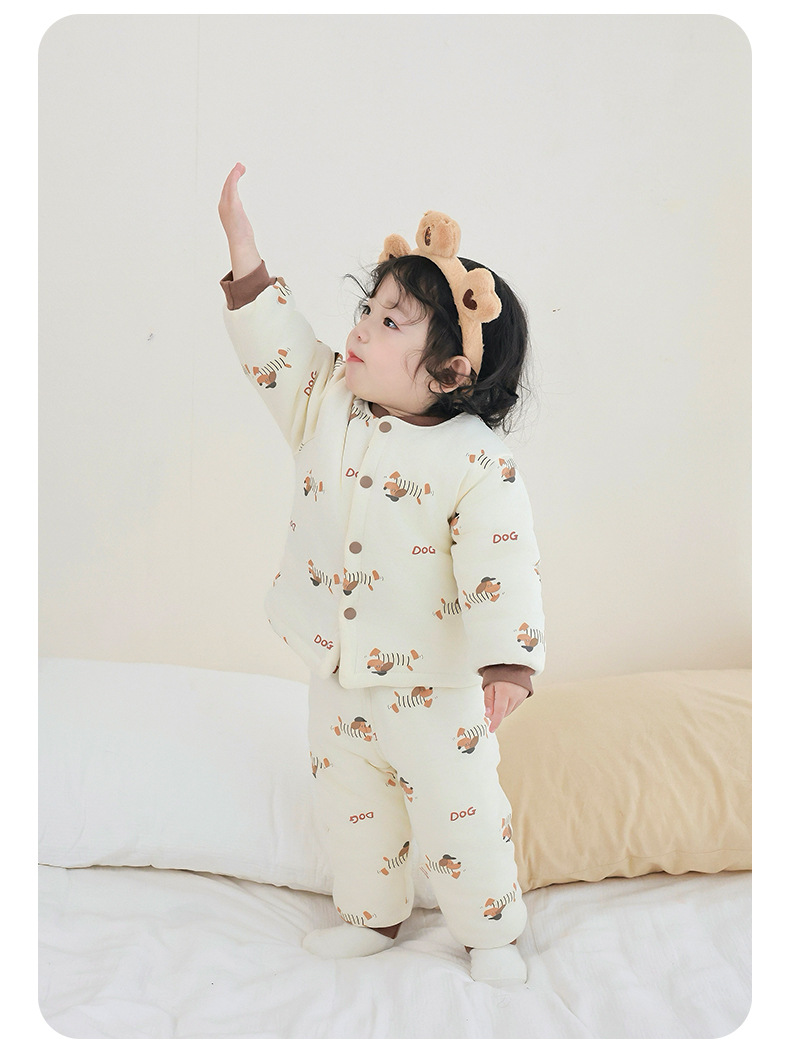 가을, 겨울 어린이 속옷 세트 120g 순면 아기 한국어 버전 따뜻한 유아 및 유아 가정 의류 세트 외출용스토어 가기