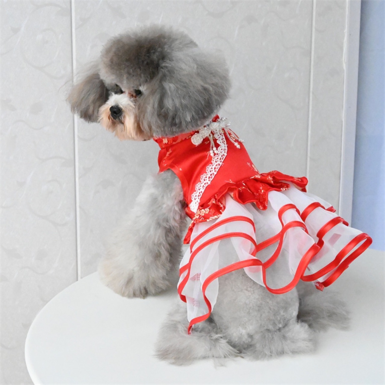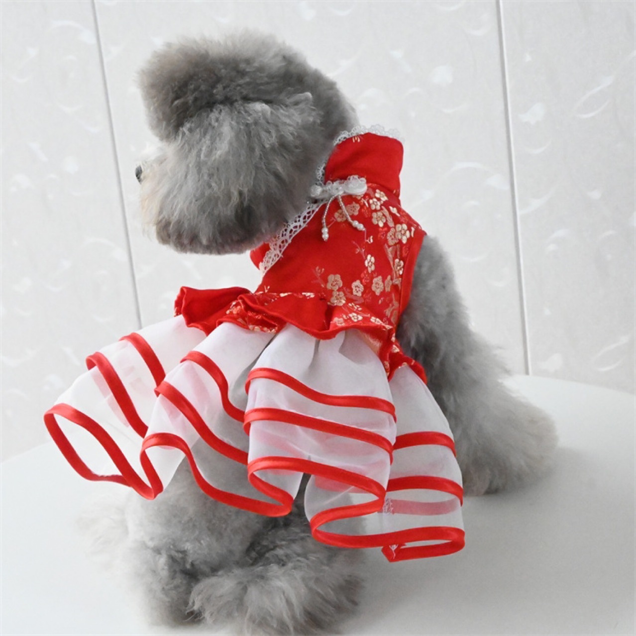 궁전 새 해 탱 원피스 강아지 원피스 테디 베어 애완 동물 고양이 새해 축제 치파오 원피스스토어 가기