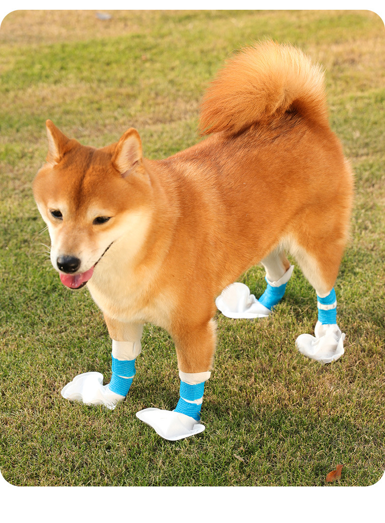 本产品蓝色绷带和白色脚套是分开的。链接图片是拍摄的时候自行组装好的。收到产品根据需求自行使用绷带哦。请知悉
