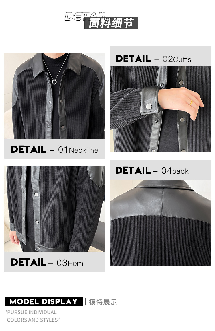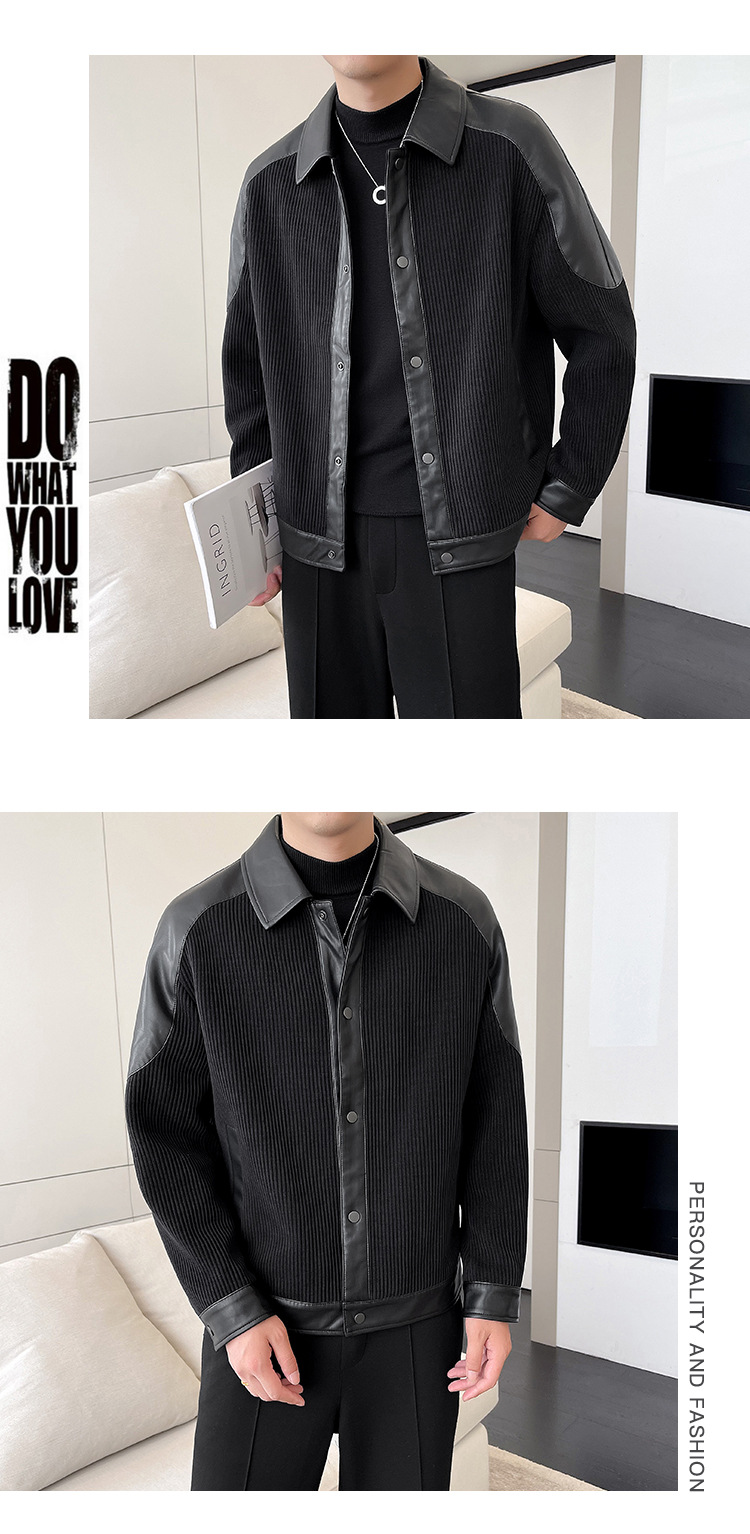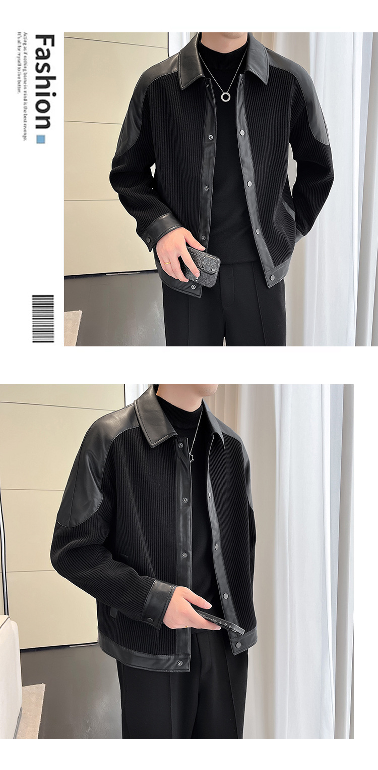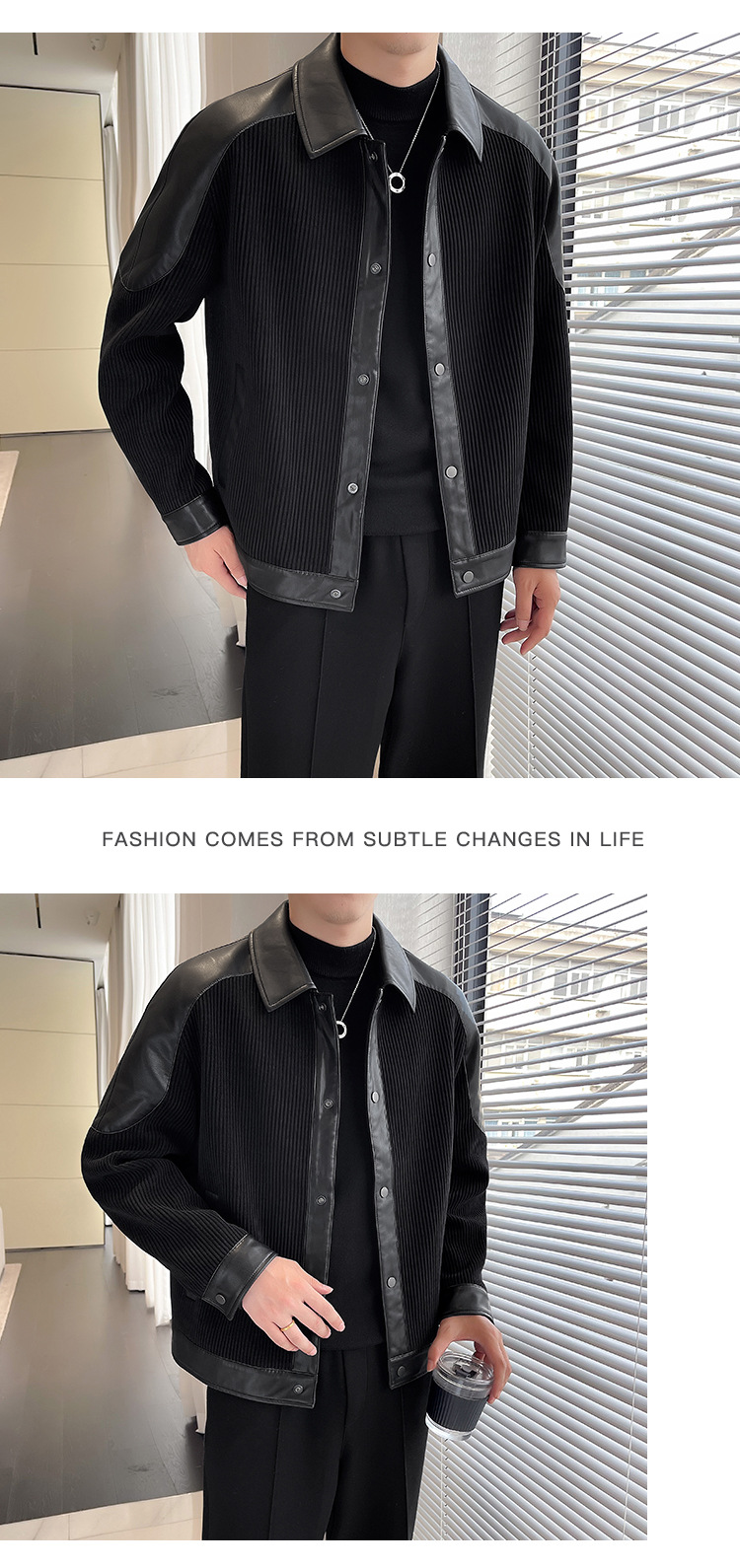 인터넷 유명인과 같은 스타일의 재킷 24 가을 겨울 부드러운 PU 혼합 남성용 라펠 숏 재킷 트렌디한 한국 스타일 다용도 레깅스 재킷