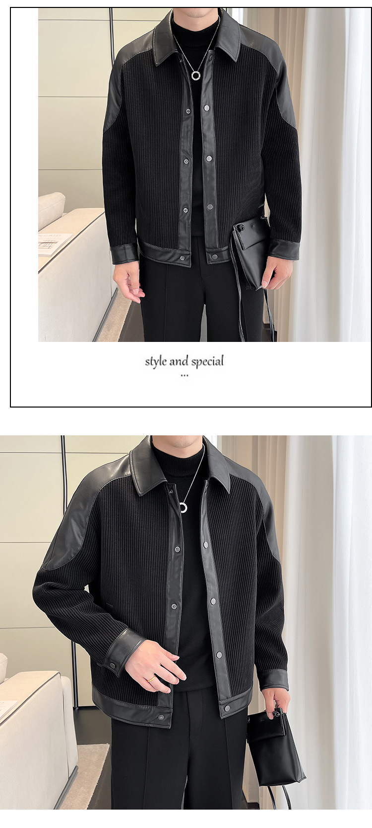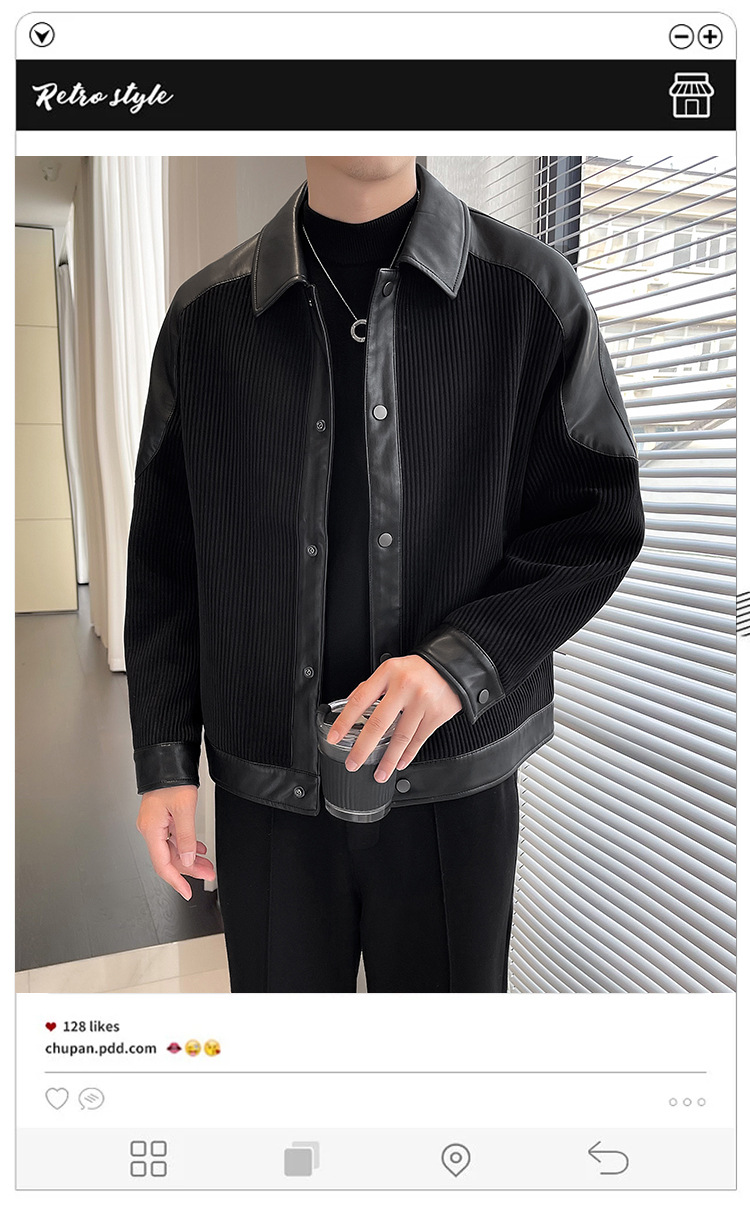 인터넷 유명인과 같은 스타일의 재킷 24 가을 겨울 부드러운 PU 혼합 남성용 라펠 숏 재킷 트렌디한 한국 스타일 다용도 레깅스 재킷스토어 가기