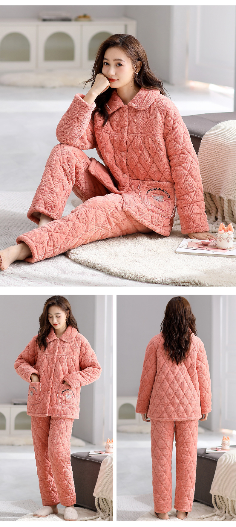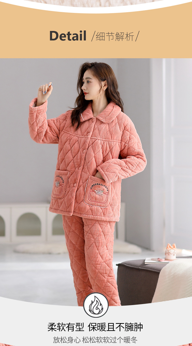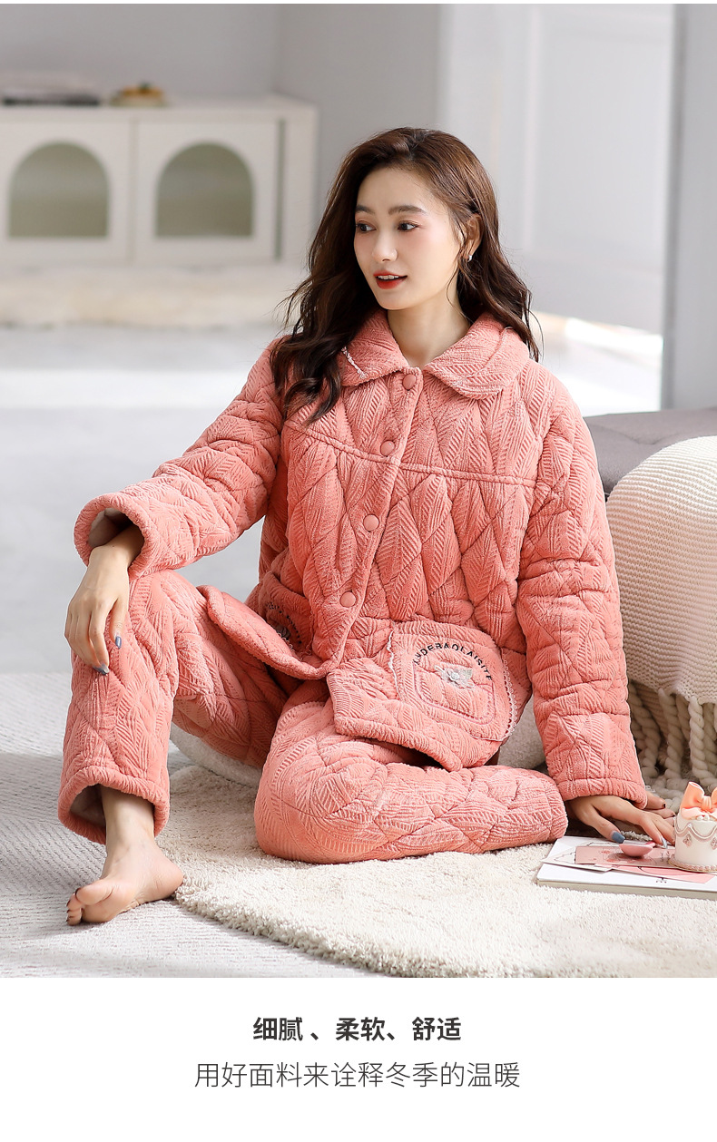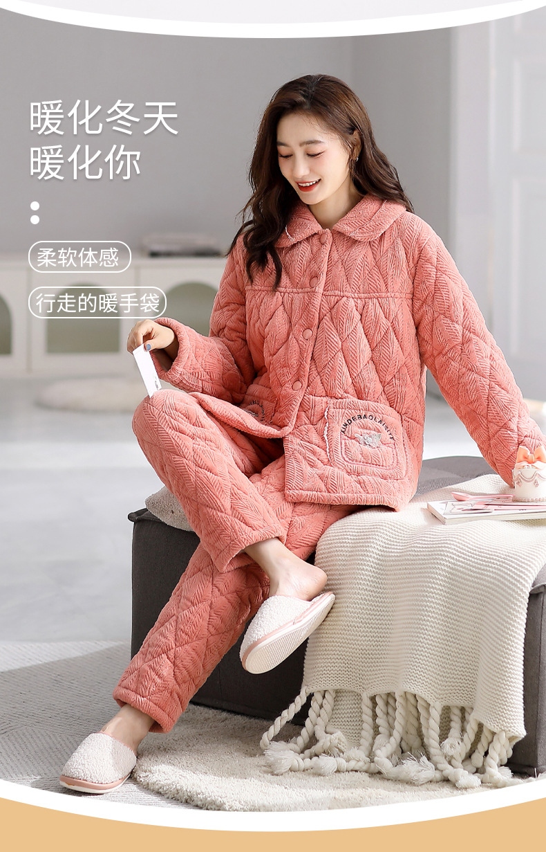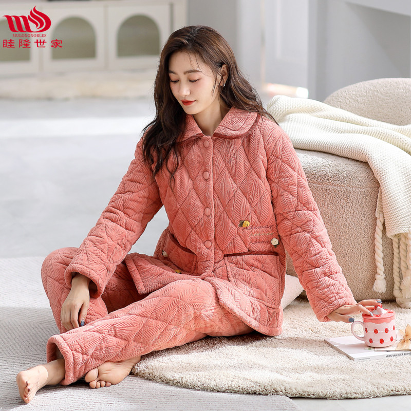 물롱 귀족 가족 산호 양털 신상품 잠옷 여자의 겨울 면 두꺼운 가을과 겨울 기모 플러스 사이즈 카디건 따뜻한 가정 옷스토어 가기