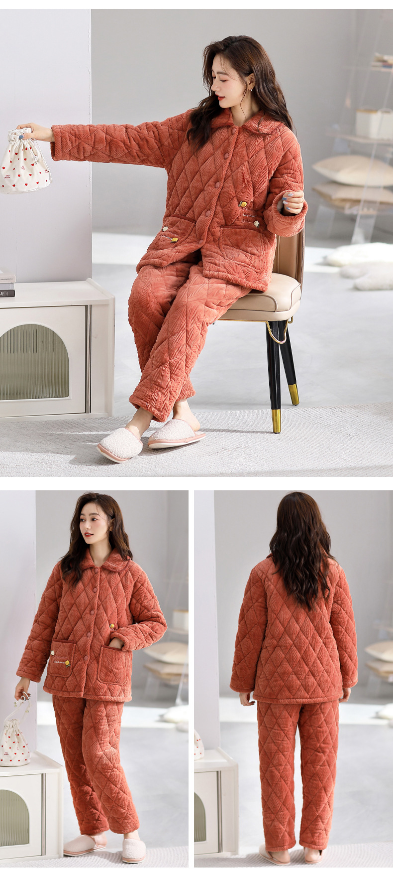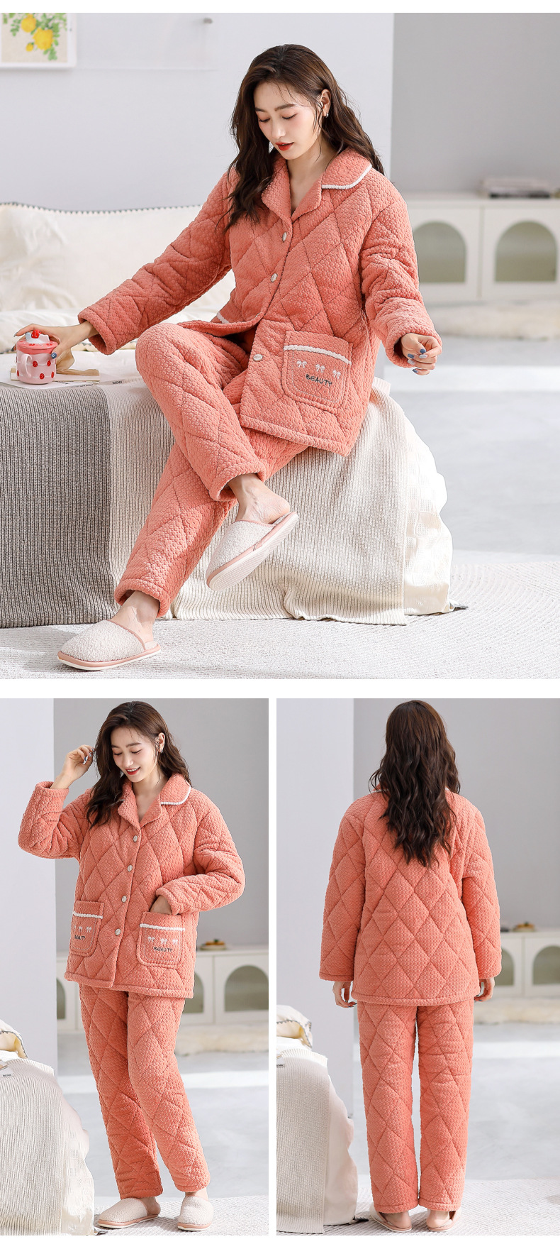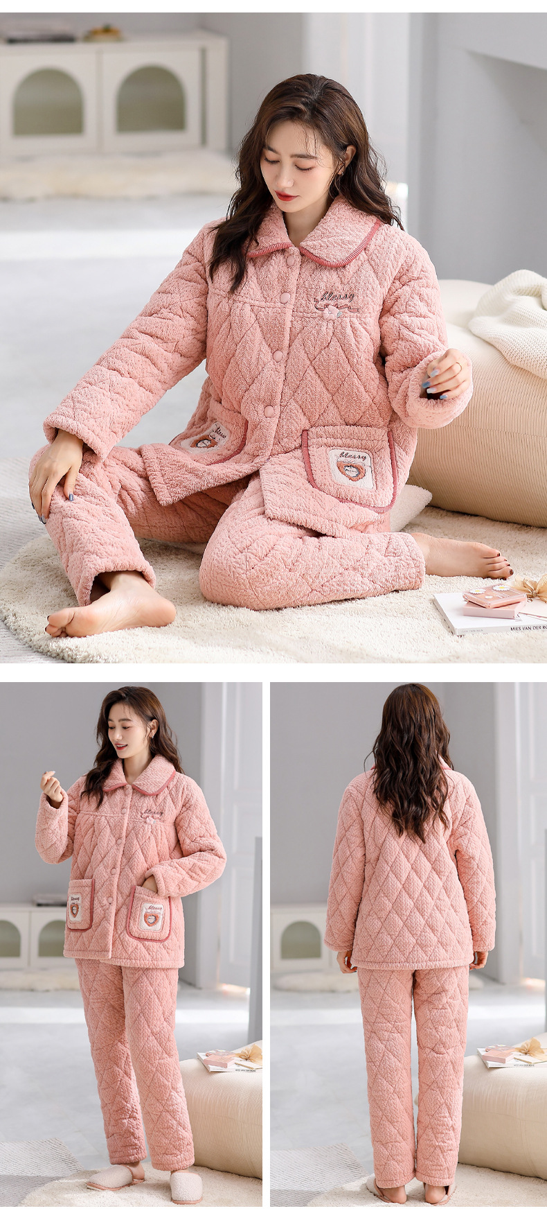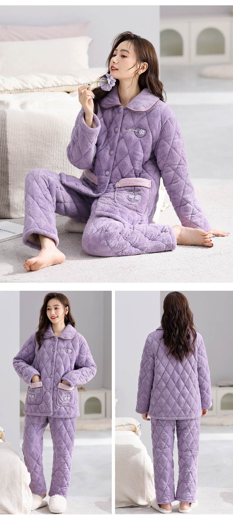 물롱 귀족 가족 산호 양털 신상품 잠옷 여자의 겨울 면 두꺼운 가을과 겨울 기모 플러스 사이즈 카디건 따뜻한 가정 옷스토어 가기