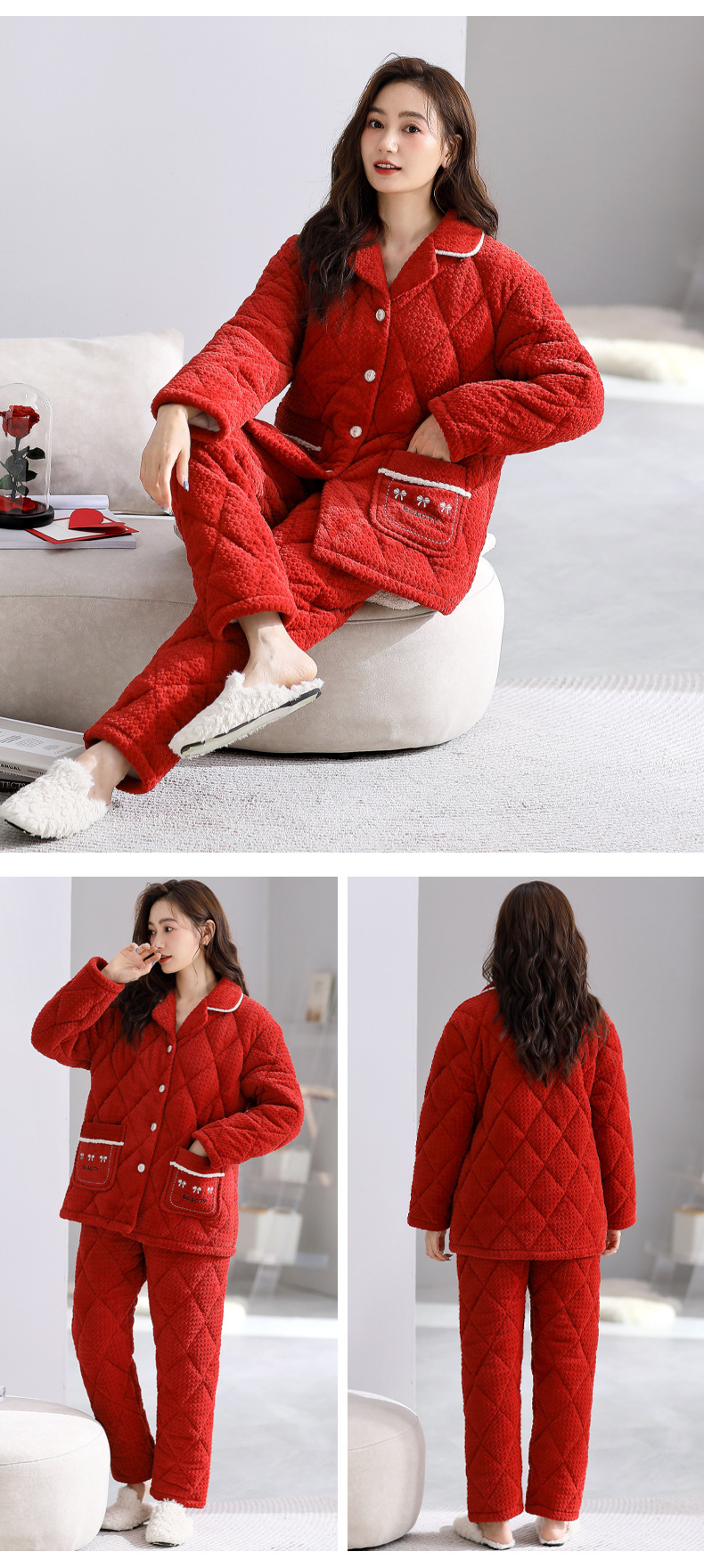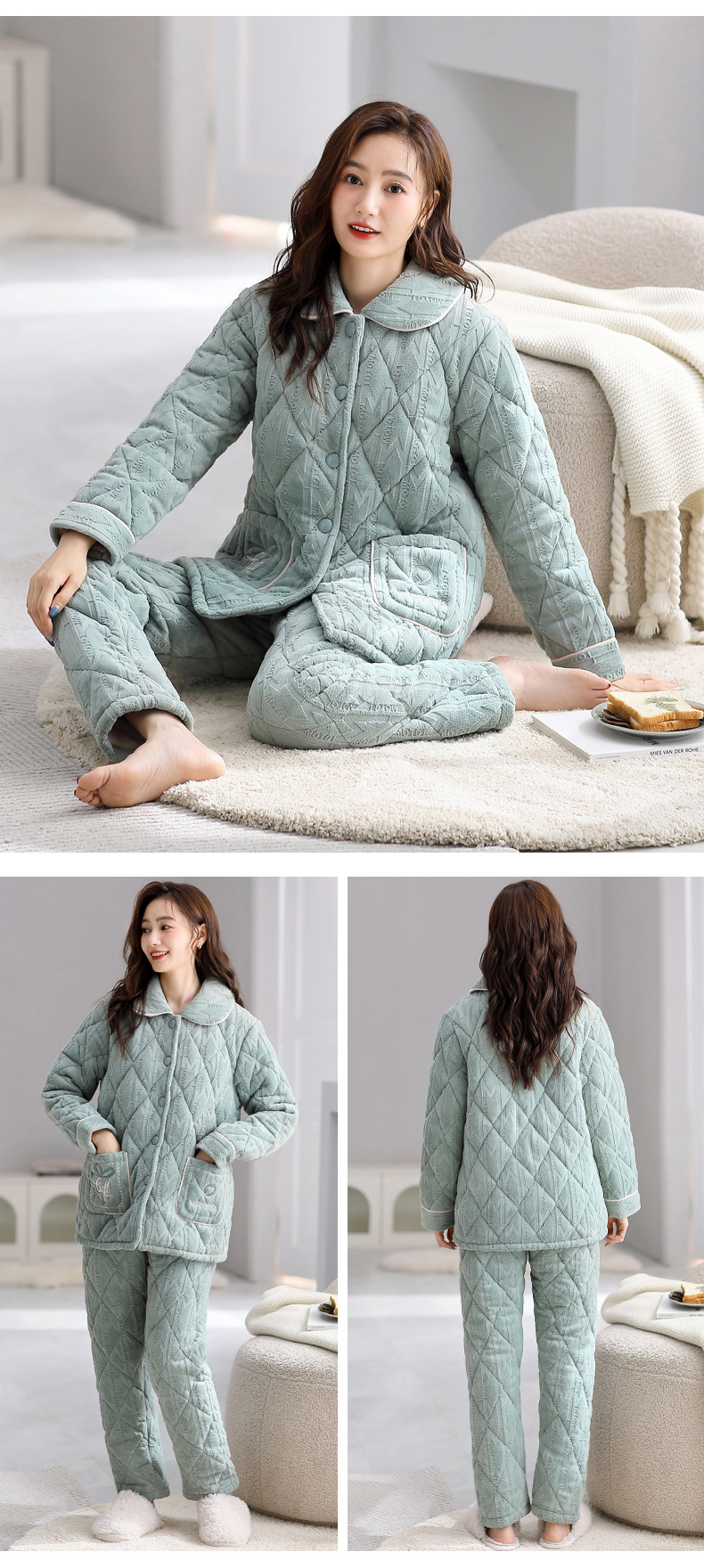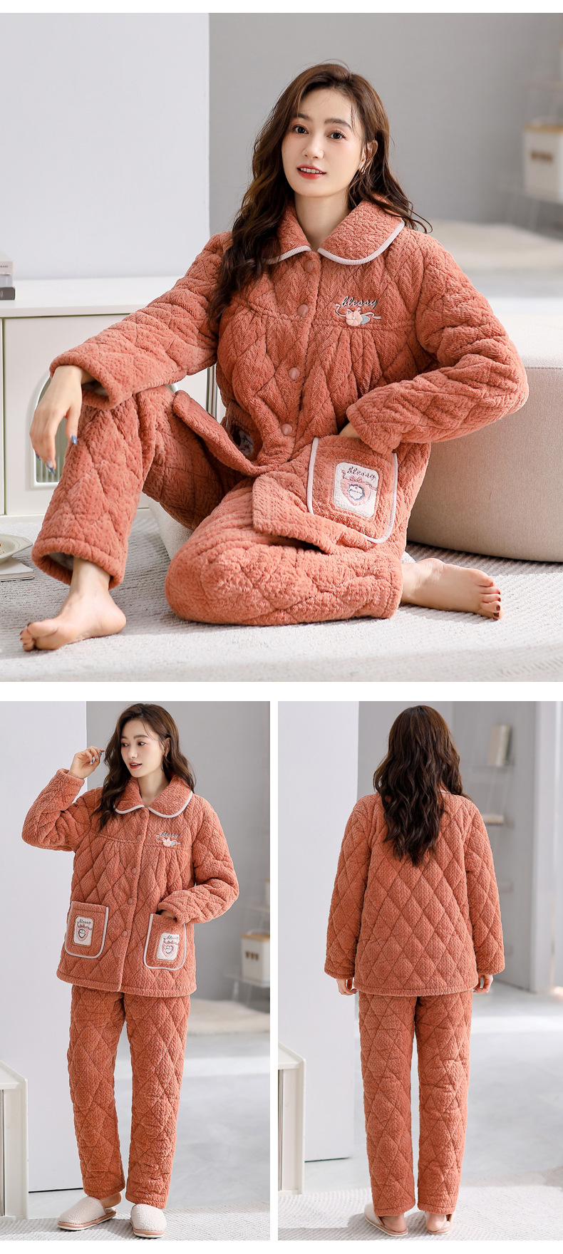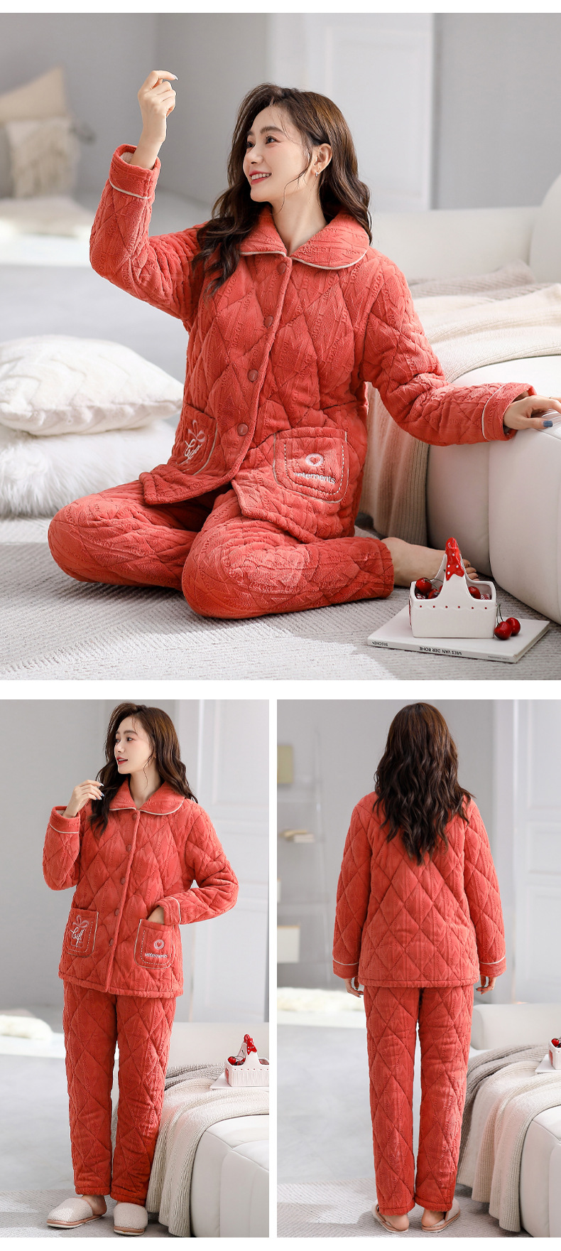물롱 귀족 가족 산호 양털 신상품 잠옷 여자의 겨울 면 두꺼운 가을과 겨울 기모 플러스 사이즈 카디건 따뜻한 가정 옷스토어 가기