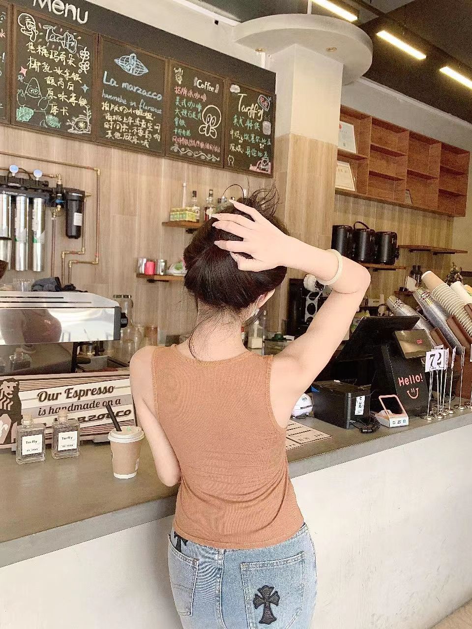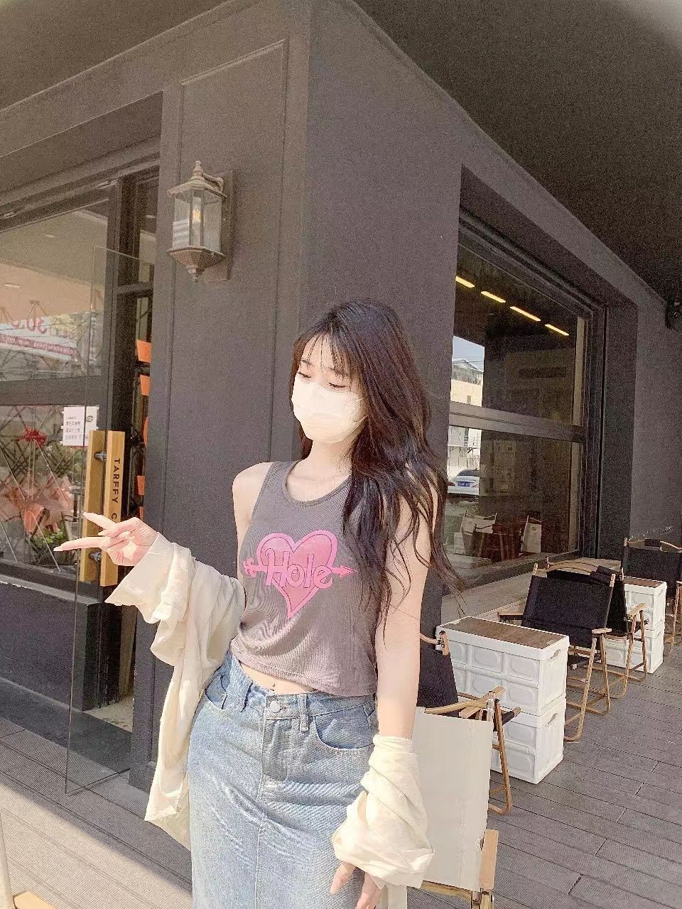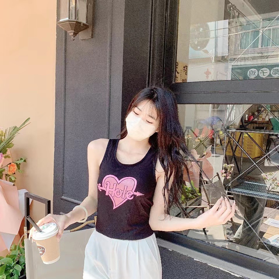 새로운 가을 겨울 조끼 여성용 디자인 센스 레터 프린팅 모든 매치 겉옷을 위한 슬림핏 민소매 베이스 탑 순수 행운스토어 가기