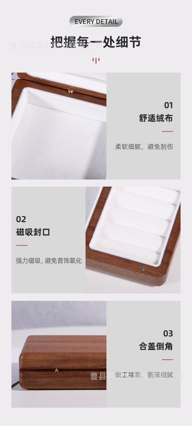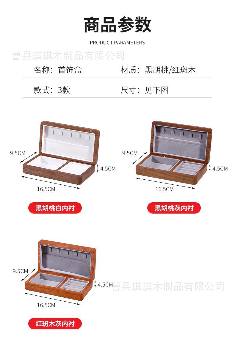 블랙 호두 단단한 나무 보석 상자 보관함 고급 고급 고급 보석 반지 귀걸이 골드 보석 보석 보관함