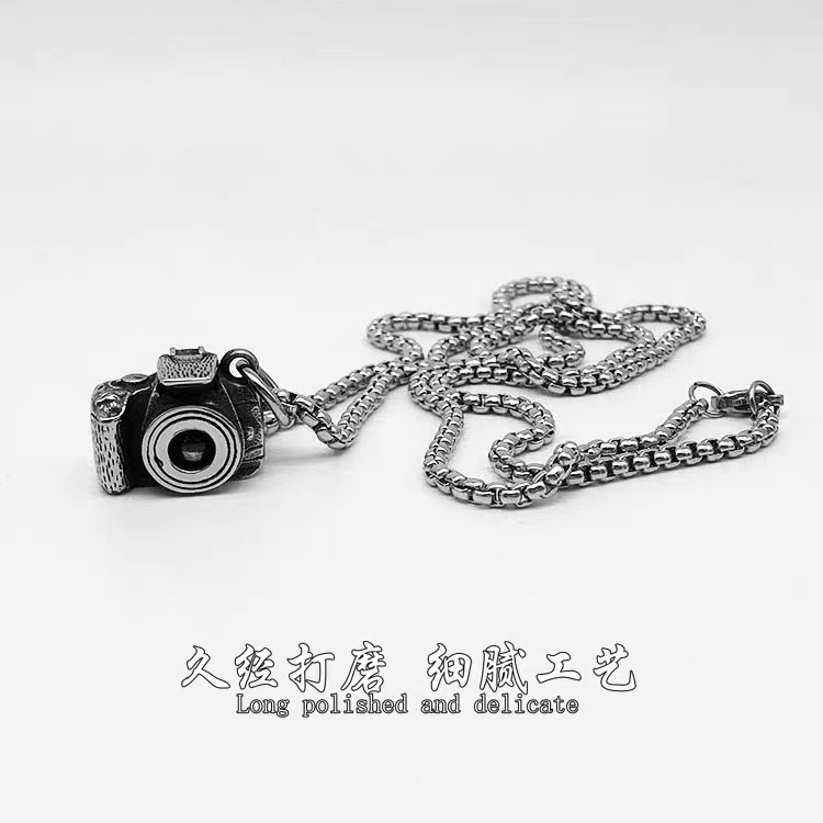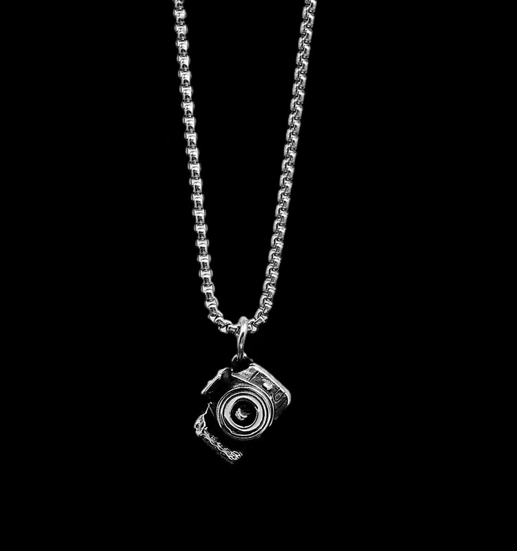 트렌디 한 힙합 개인 티타늄 스틸 목걸이 남자의 복고풍 카메라 목걸이 솔리드 프로젝션 펜던트 남자의 트렌디 한 스웨터 체인스토어 가기