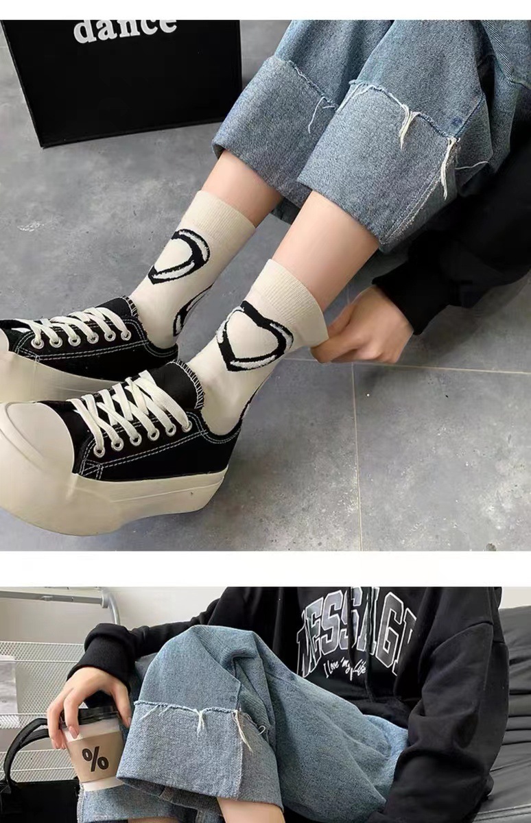일본식 가을과 겨울 모든 경기 십자화 사랑 성격 흑백 스포츠 중간 길이 양말 인스 타 그램 스타일 중간 길이 양말 여자 양말스토어 가기