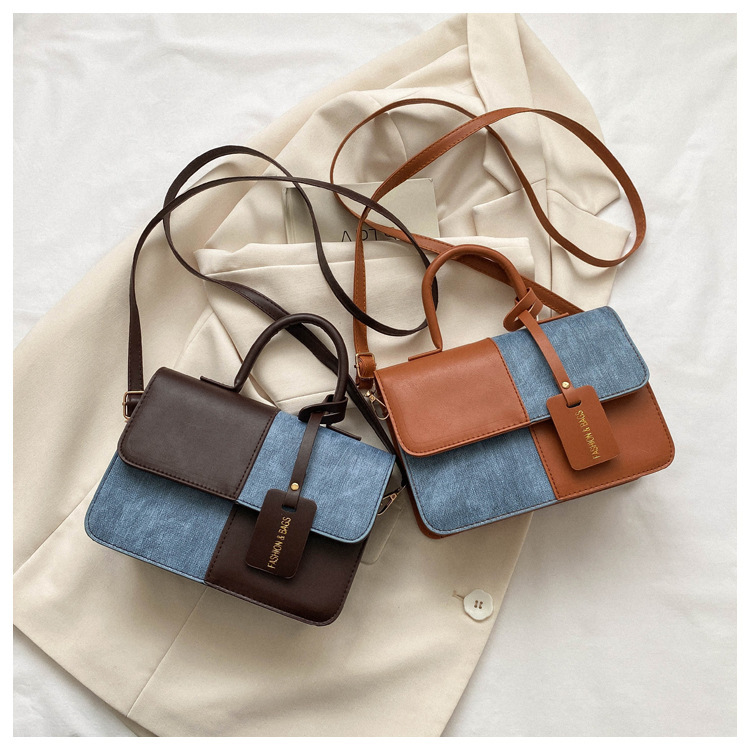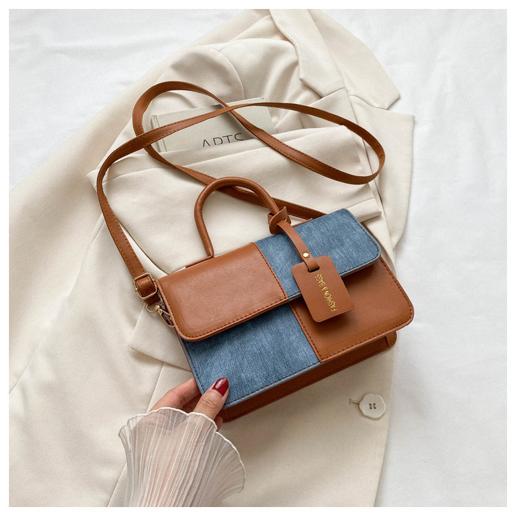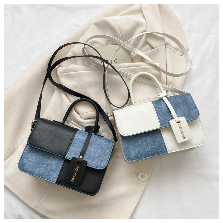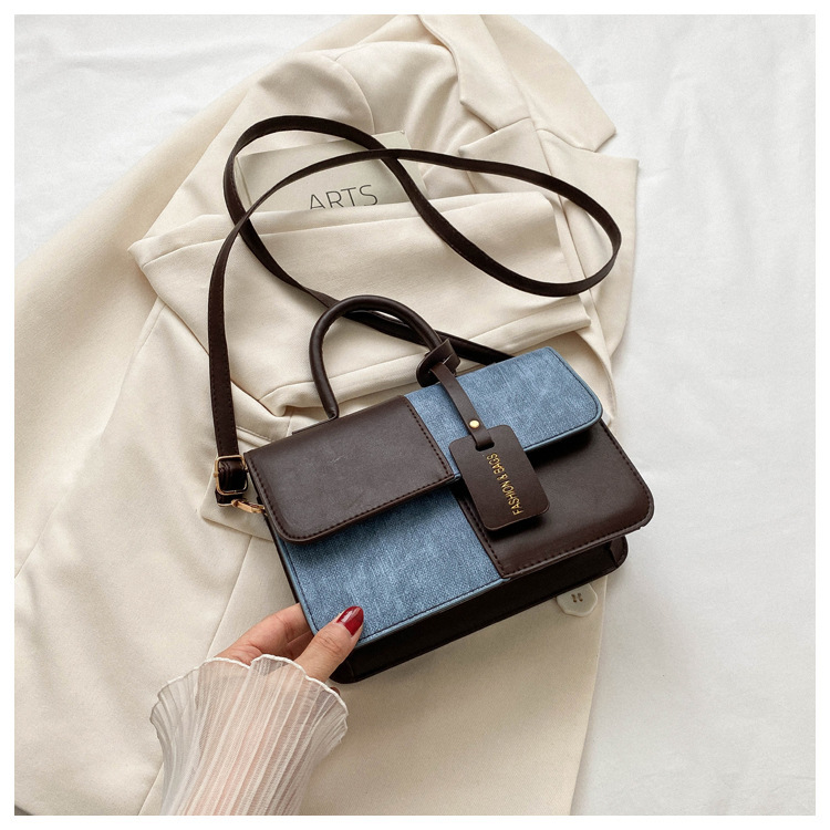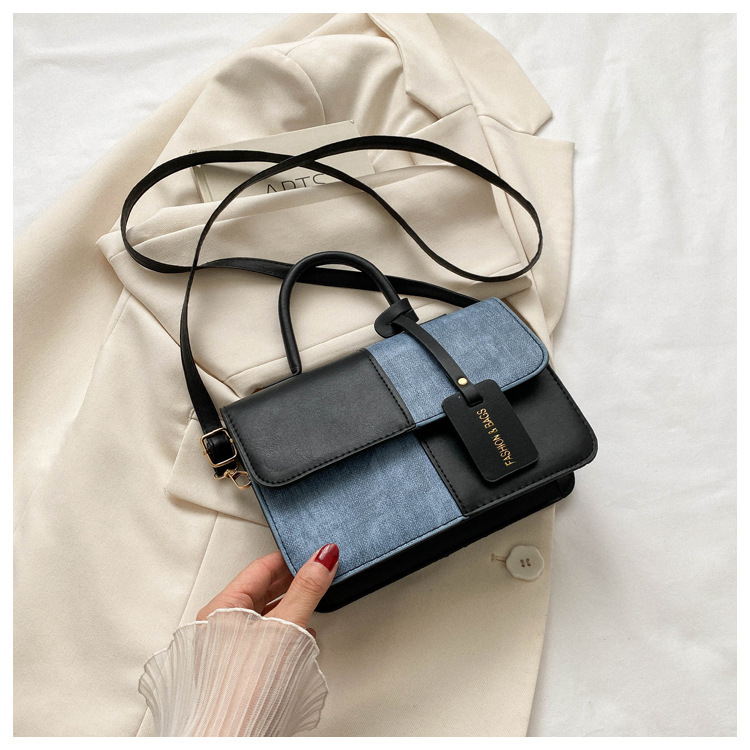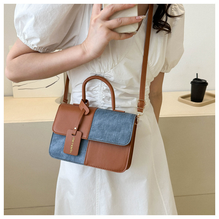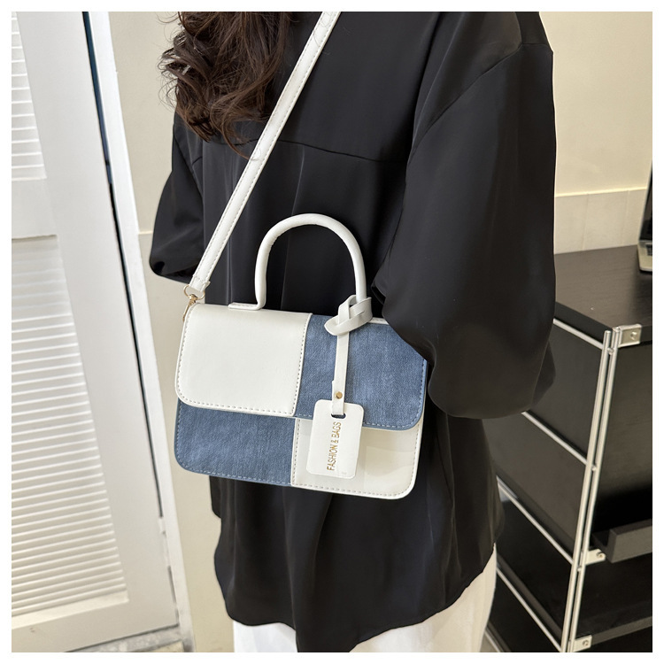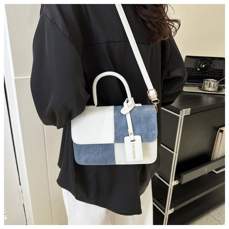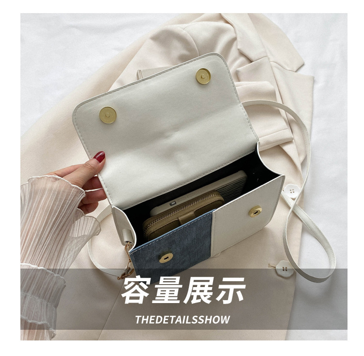 小众设计拼接撞色小方包包女2023新款质感简约斜挎包时尚单肩包包