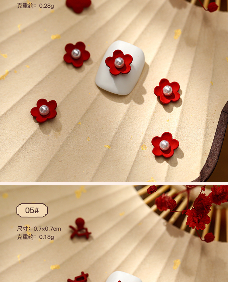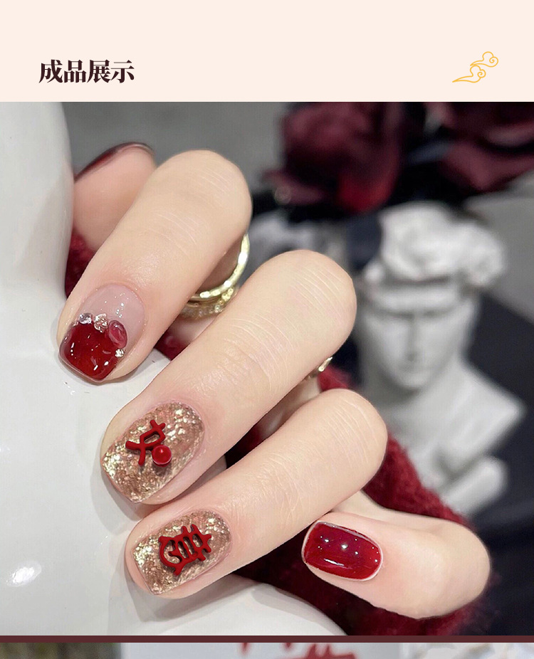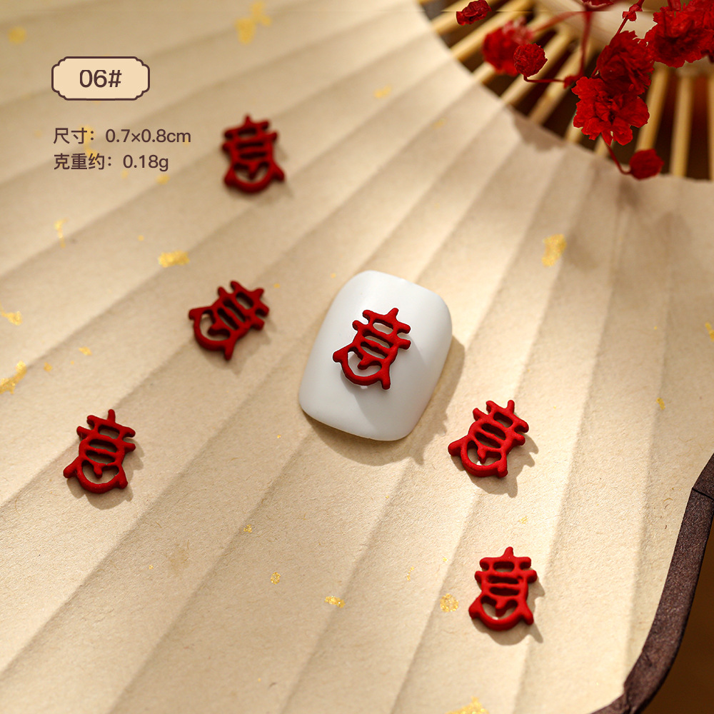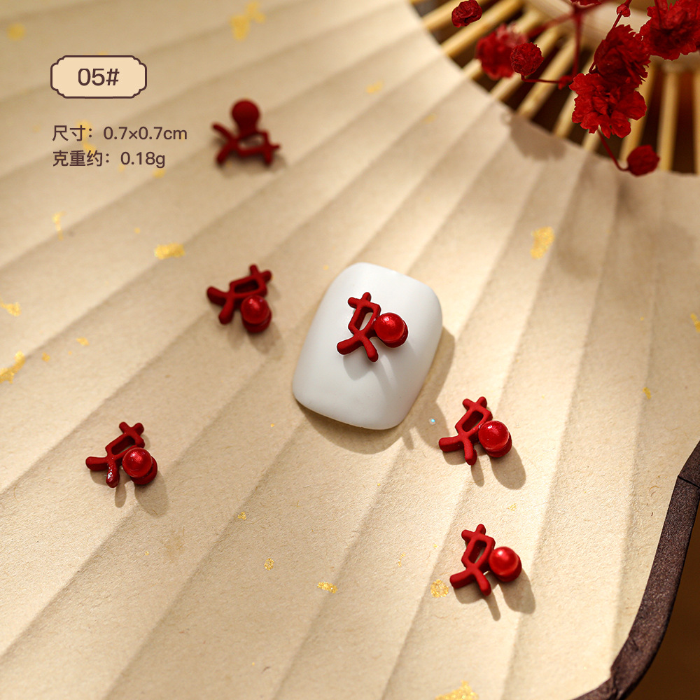 중국식 네일 아트 합금 보석 레드 축제 전국 조수 사랑 꽃 주괴 복 새해 활 도매스토어 가기