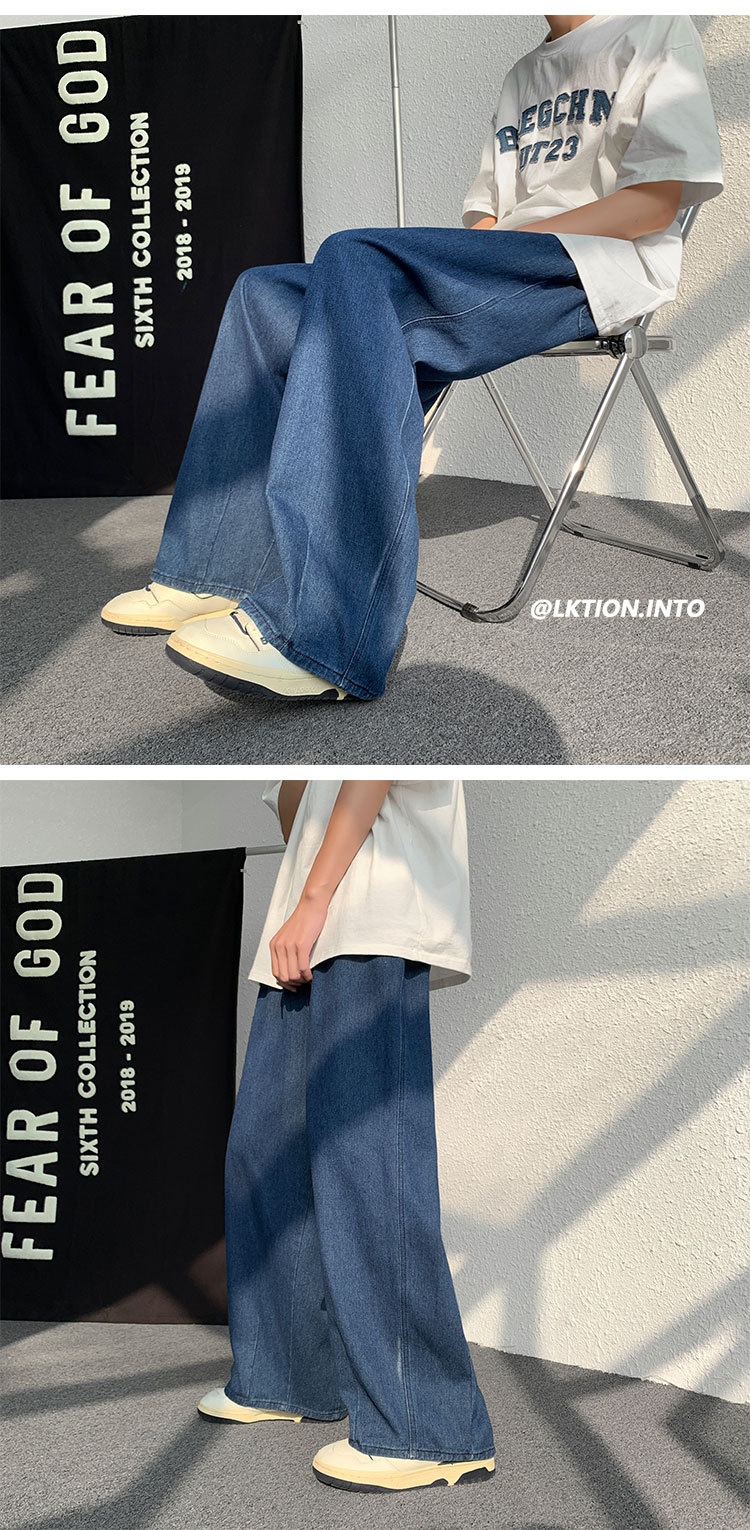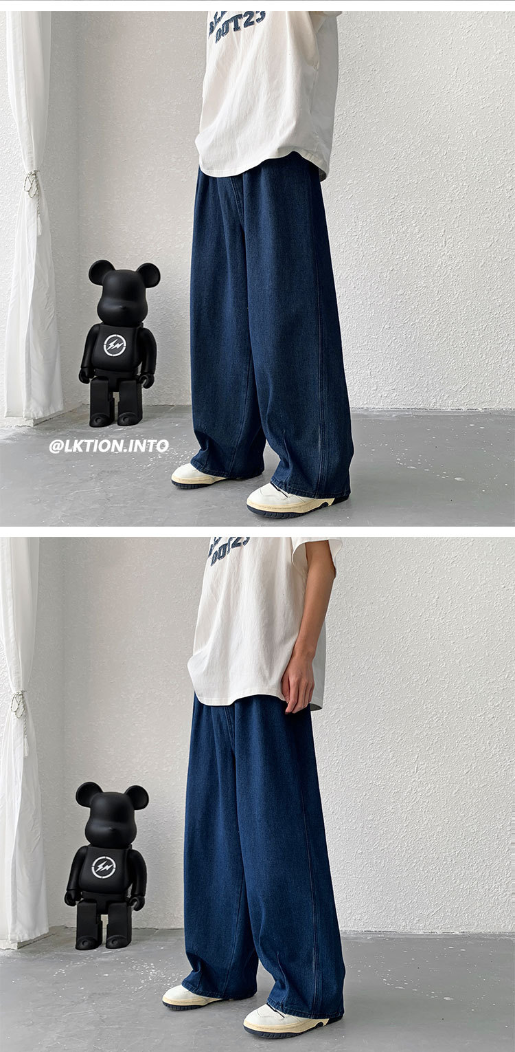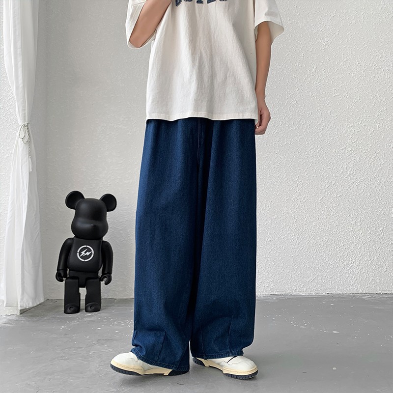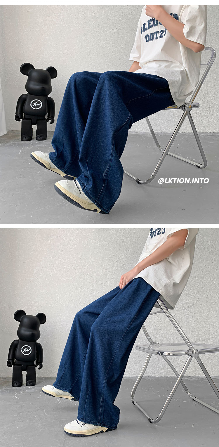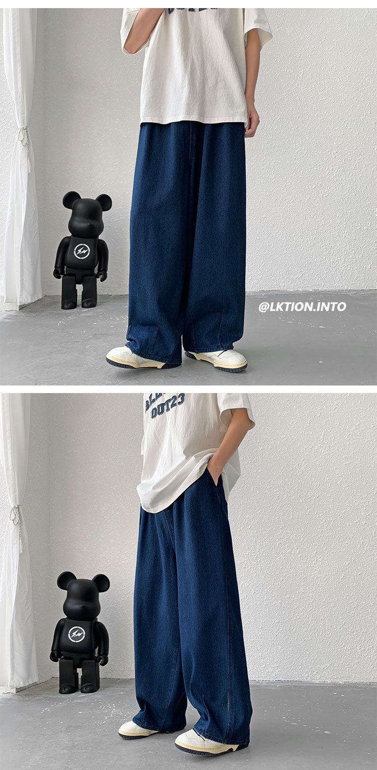 일본 스타일 Ruffian 잘 생긴 청바지 남자의 가을 유행 힙합 느슨한 토레 바지 유행 브랜드 인 커플 와이드 레그 블루머스토어 가기