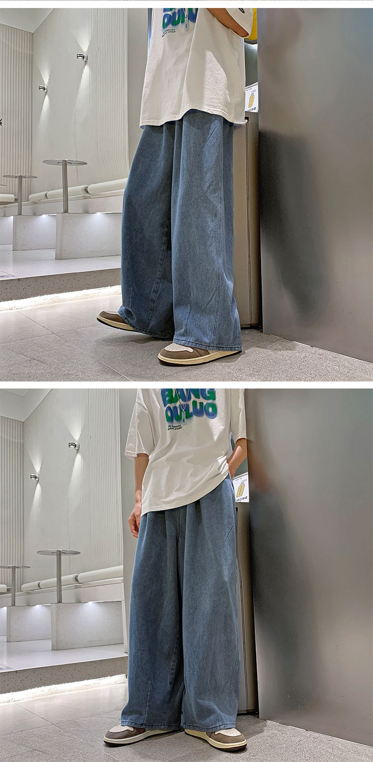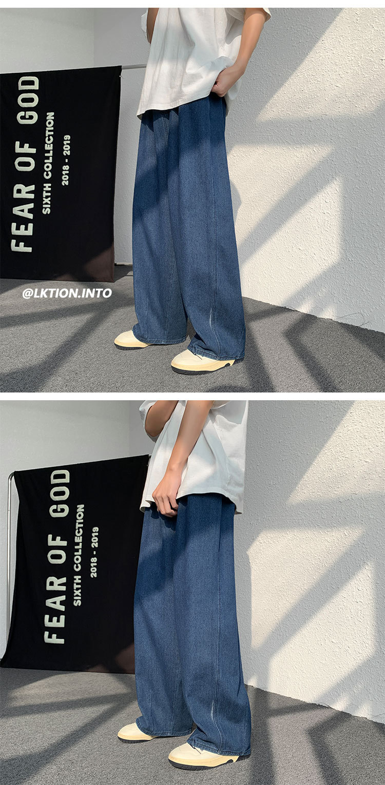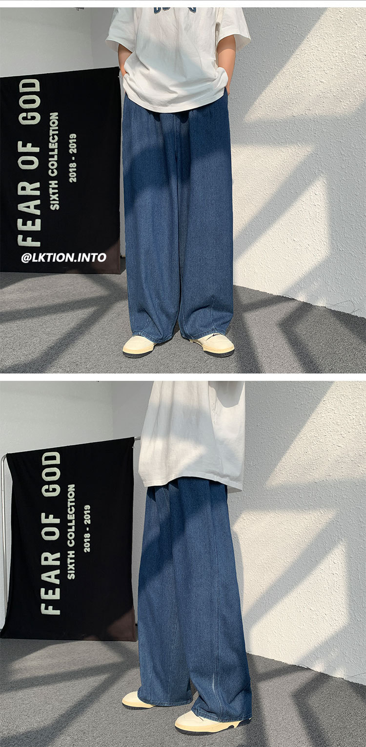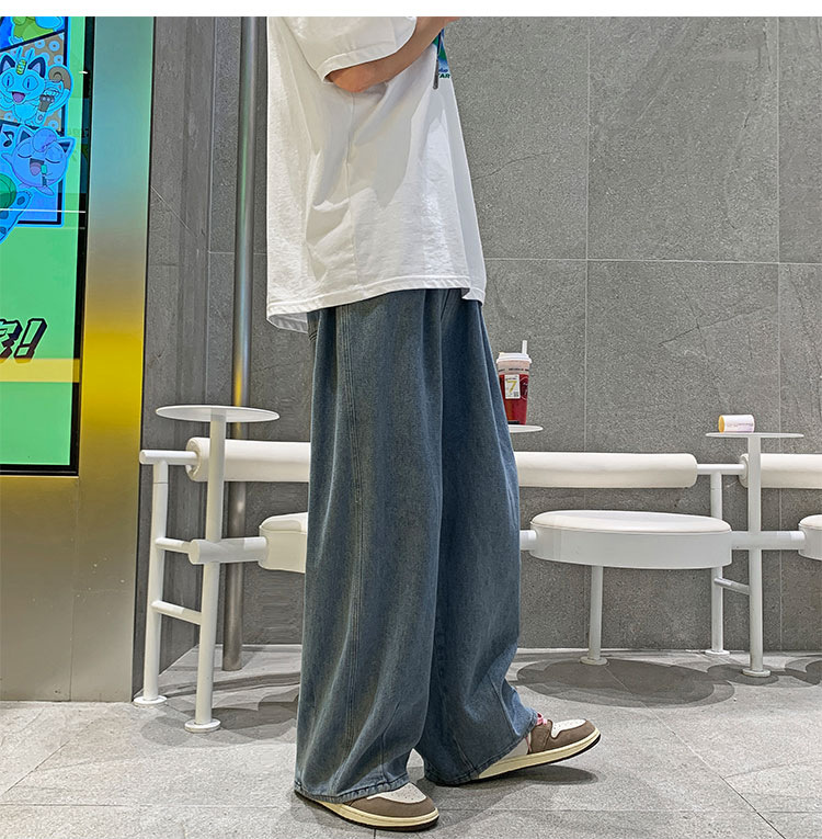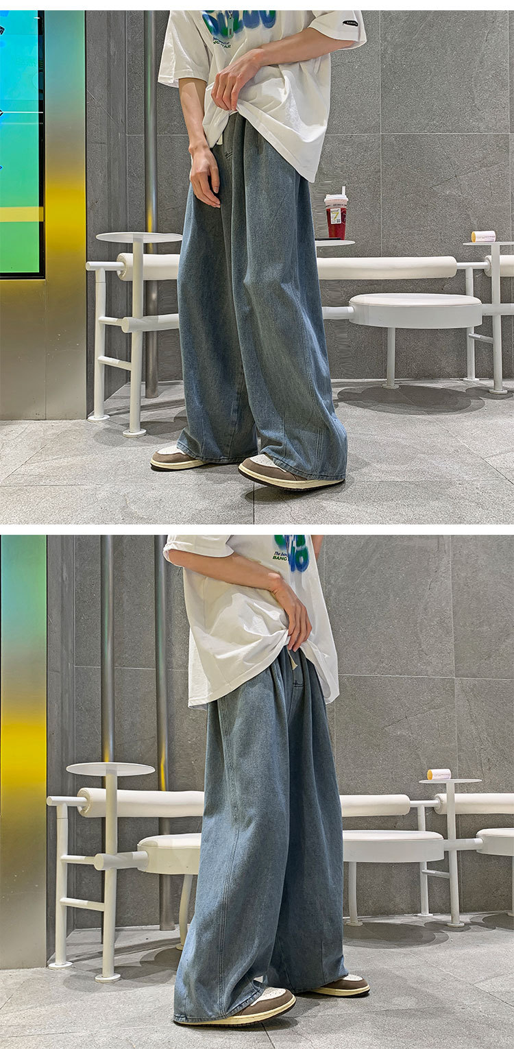 일본 스타일 Ruffian 잘 생긴 청바지 남자의 가을 유행 힙합 느슨한 토레 바지 유행 브랜드 인 커플 와이드 레그 블루머스토어 가기