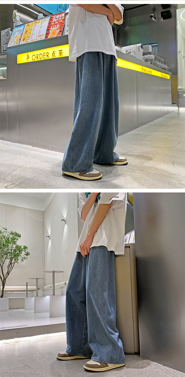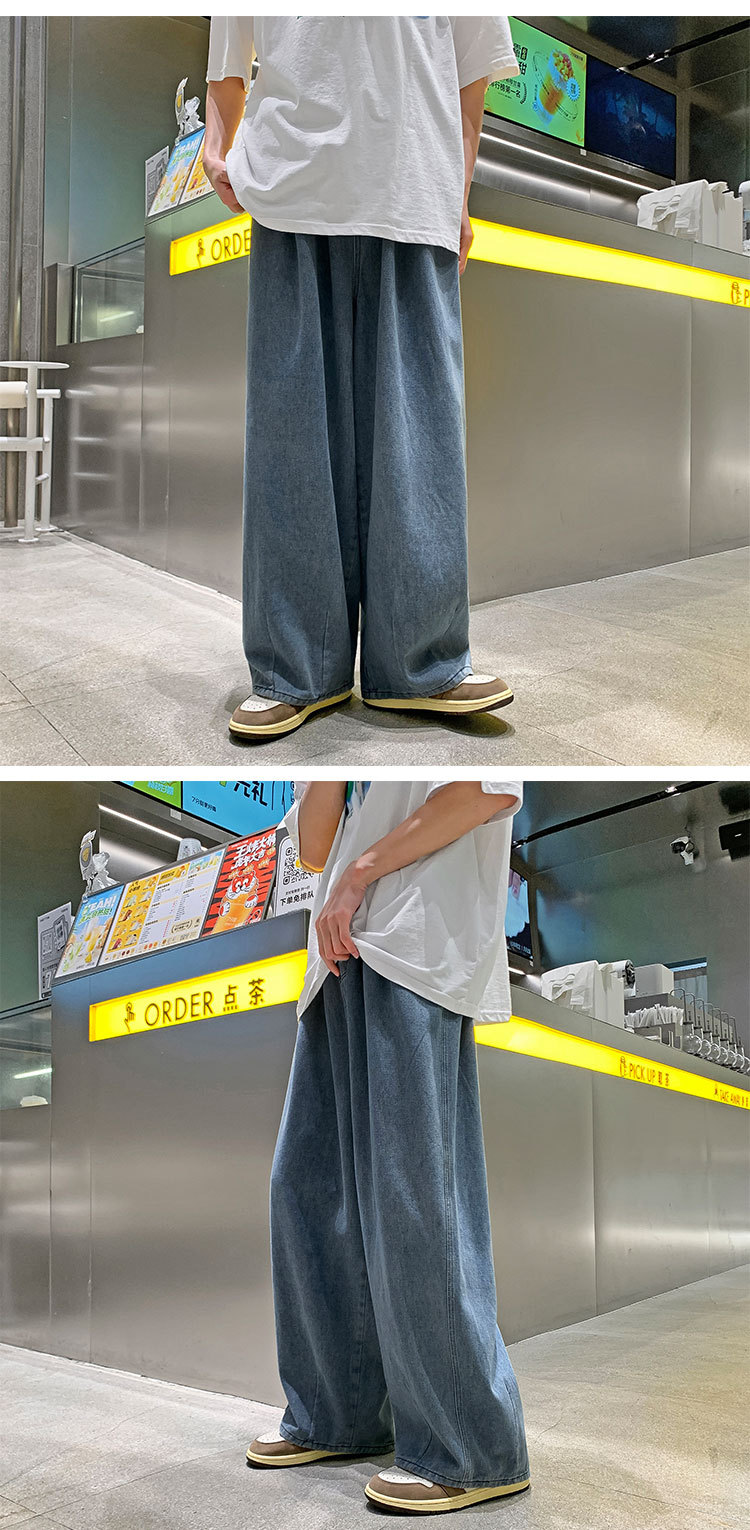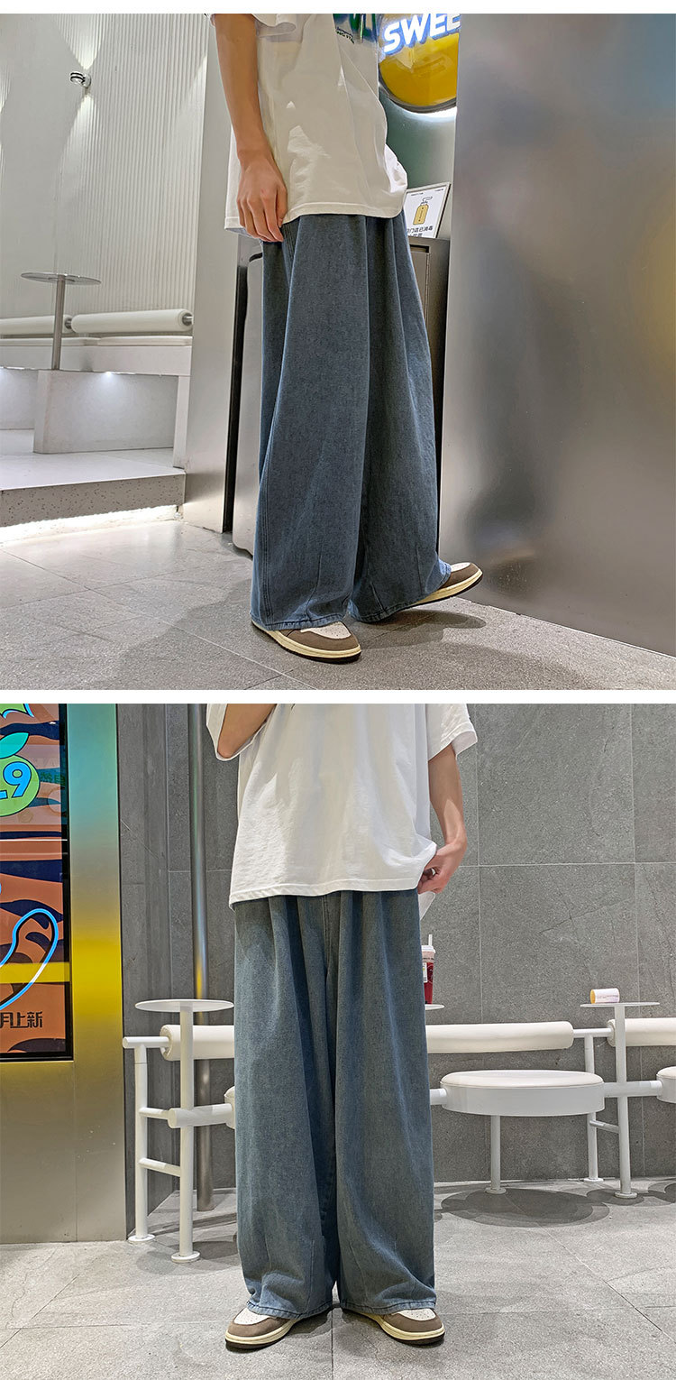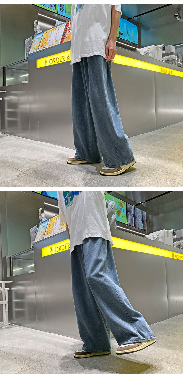일본 스타일 Ruffian 잘 생긴 청바지 남자의 가을 유행 힙합 느슨한 토레 바지 유행 브랜드 인 커플 와이드 레그 블루머스토어 가기