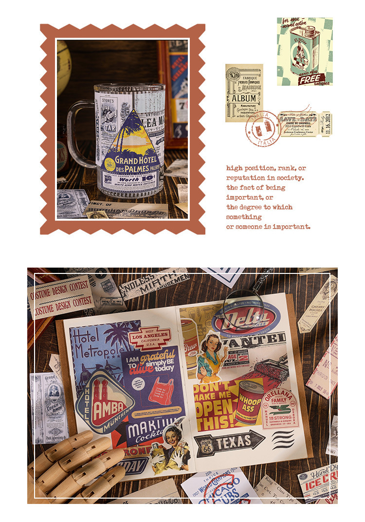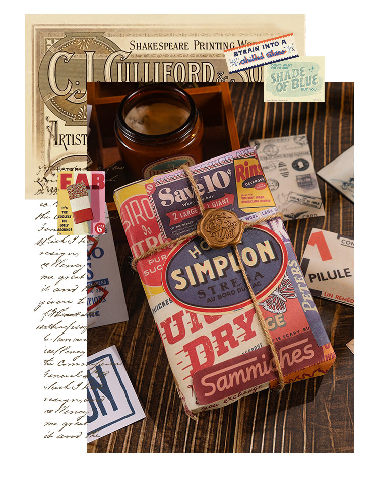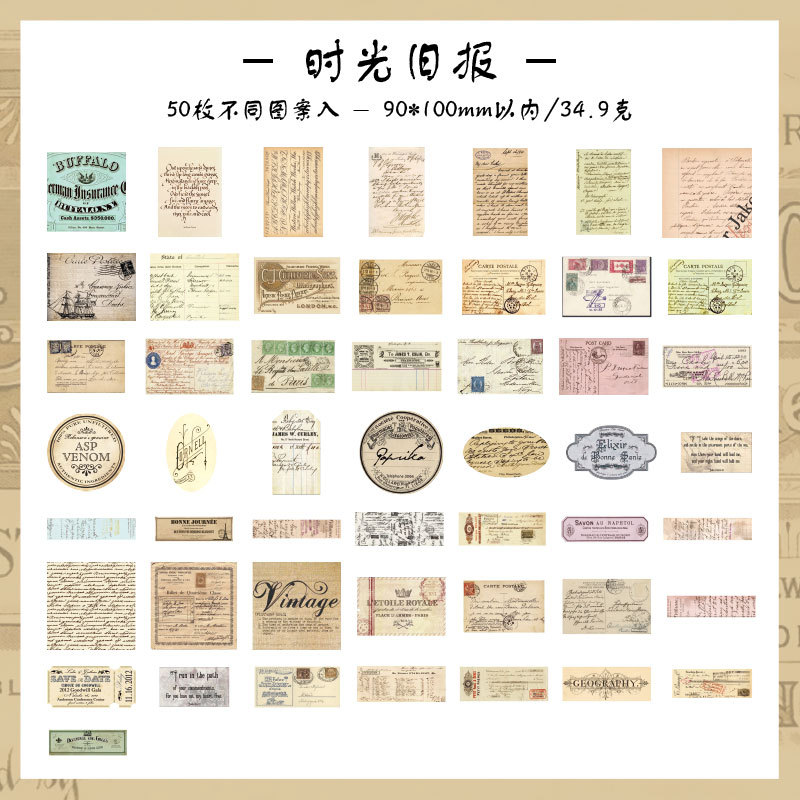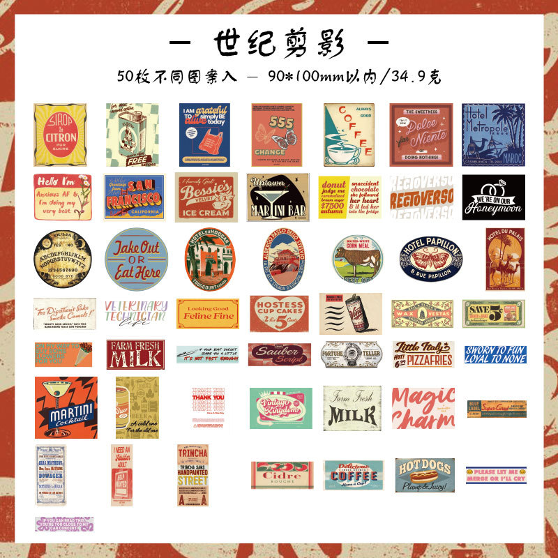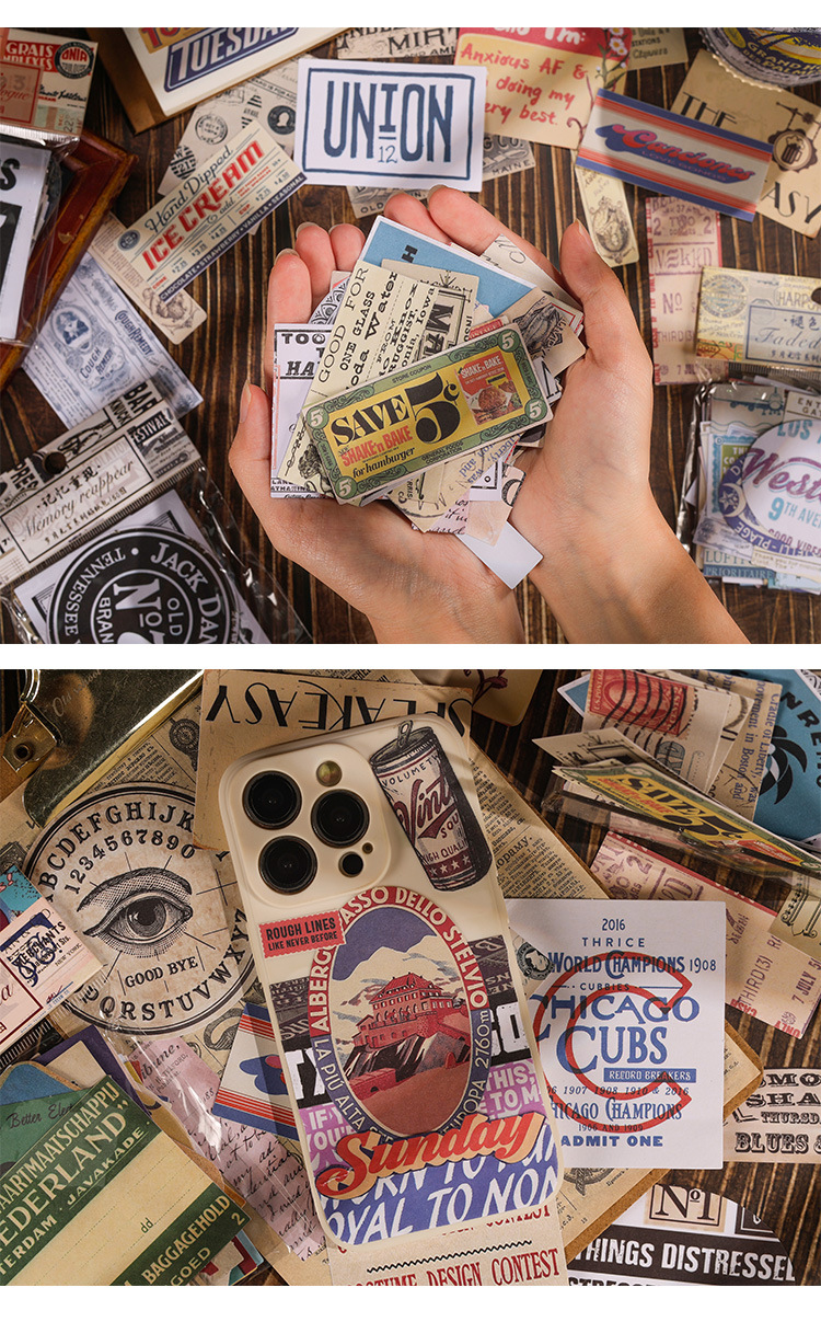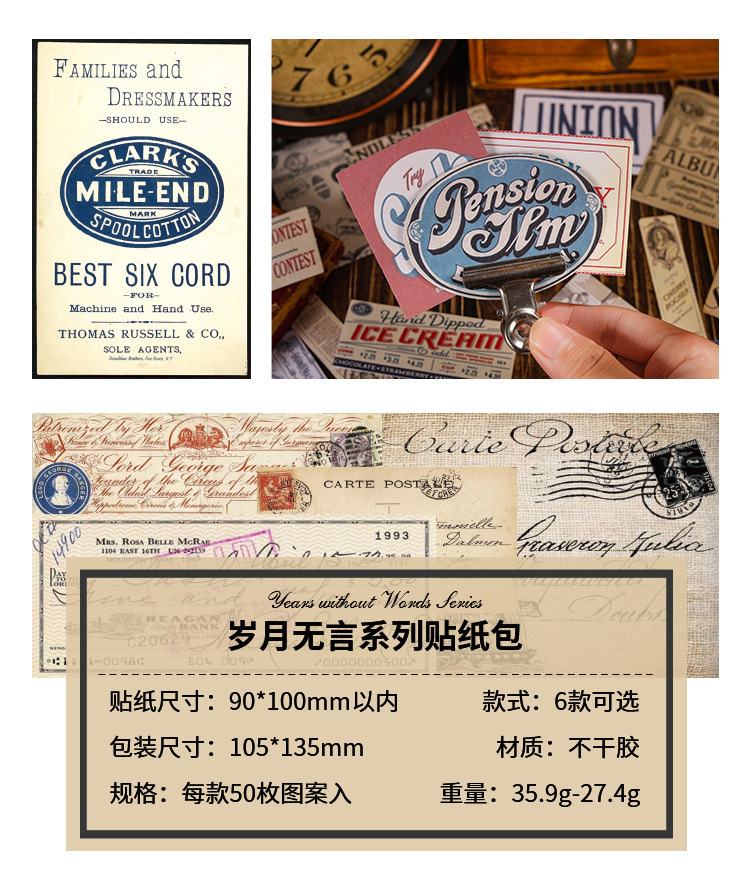 조용한 손 계정 스티커 패키지의 Yuezhen 년 예술적 복고풍 스타일 재료 장식 스티커 미국 어린이 손 계정 스티커